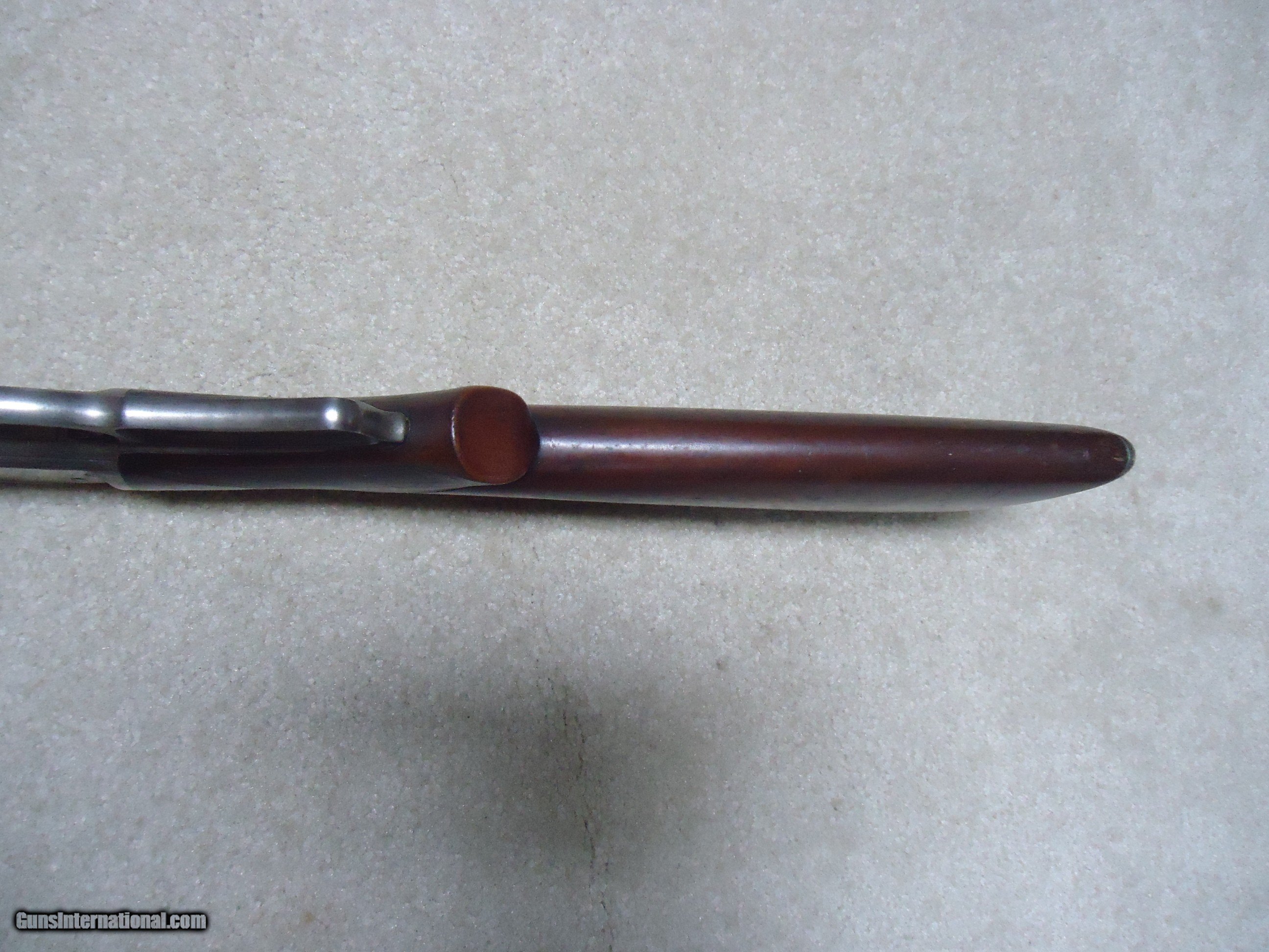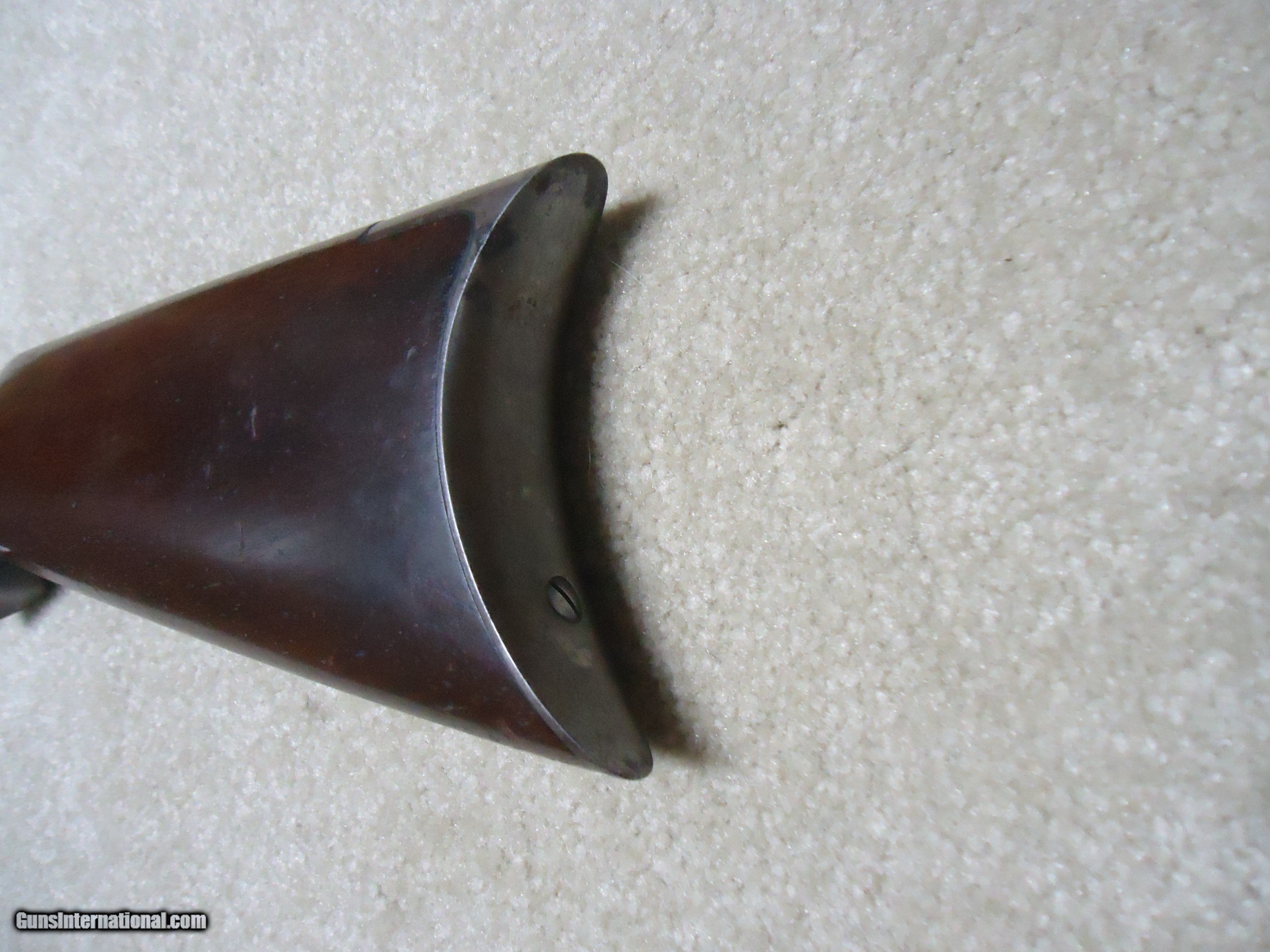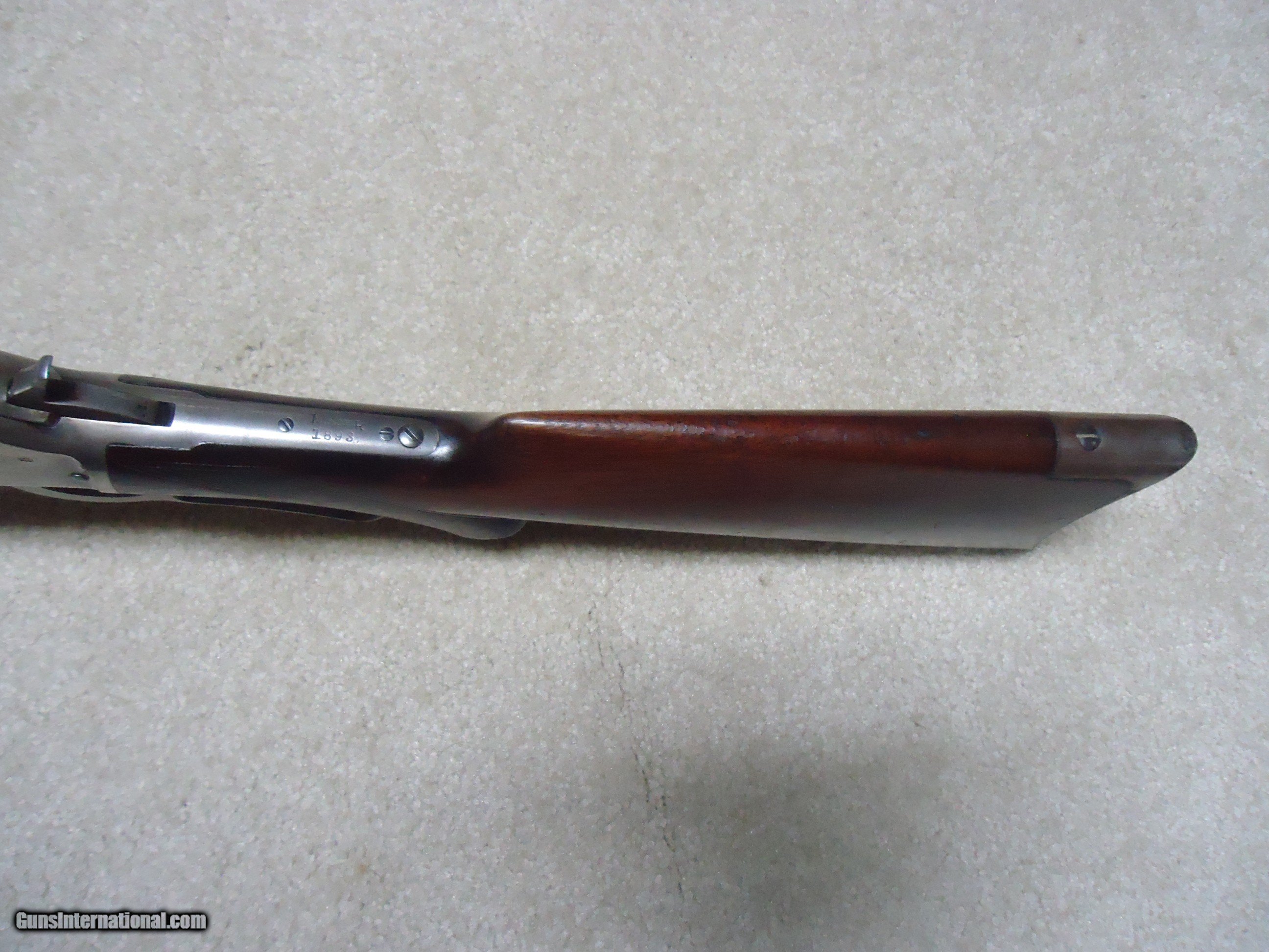 Description: A SUPER SCARCE MODEL 1893-B .32-40 CALIBER "FOR BLACK POWDER" MARKED BARREL WITH HALF-OCT. BARREL, HALF MAGAZINE, PISTOL GRIP AND CHECKERED WITH CASE COLORED RECEIVER, #250XXX, MADE 1902. There is a lot of misinformation out there about these Black Powder marked 1893s. Simply, Marlin had barrels made of high grade "soft" steel that was better suited to lead bullets instead of high velocity jacketed bullets. Barrels marked "Special Smokeless Steel" were made for jacketed bullets- similar to Winchester's "Nickel Steel" barrels made for the same purpose. The actions of "B" rifles and carbines were the same as the "Smokeless" rifles. It is certainly safe to fire jacketed bullets in the "B" rifles, but the barrels will wear faster than the smokeless barrels. "B" black powder rifles were only made in .32-40 and .38-55. Typically, they cost less than smokeless guns and were made in far fewer numbers. At the time, most .32-40 and .38-55 ammo was loaded with lead bullets with either black or smokeless powder. The "B" series were typically standard round or octagon barrel rifles with full magazines and BLUED receivers. Anything other than this is really rare and could be considered a true Marlin oddity. This example with checkering, pistol grip, half-oct. barrel and half-mag. with CASE HARDENED/CASE COLORED receiver is truly unusual. The receiver colors have mostly silvered with some color in the most protected areas around the edges of the receiver sides and around the hammer. The barrel and mag blue is stll deep and fine. The wood shows normal handling but is fine with tight wood to metal fit.The checkering on the pistol grip is all there, but a bit worn. The forearm checkering is mostly visible, but worn from handling. All markings are sharp and clear. The barrel is fitted with the original buckhorn rear sight with elevation bar intact and a Marble/Sheard marked long blade/bead front sight. The bore is bright and excellent. Screw heads are excellent, action is tight and the half-cock on the hammer is strong. You could look for years and never find another like this! SOLD Rifle Caliber: .32-40 Winchester Manufacturer: MARLIN Model: 1893-"B Serial Number: 250XXX Barrel Length: 26" HALF OCTAGON Condition: FINE Bore Condition: EXCELLENT |