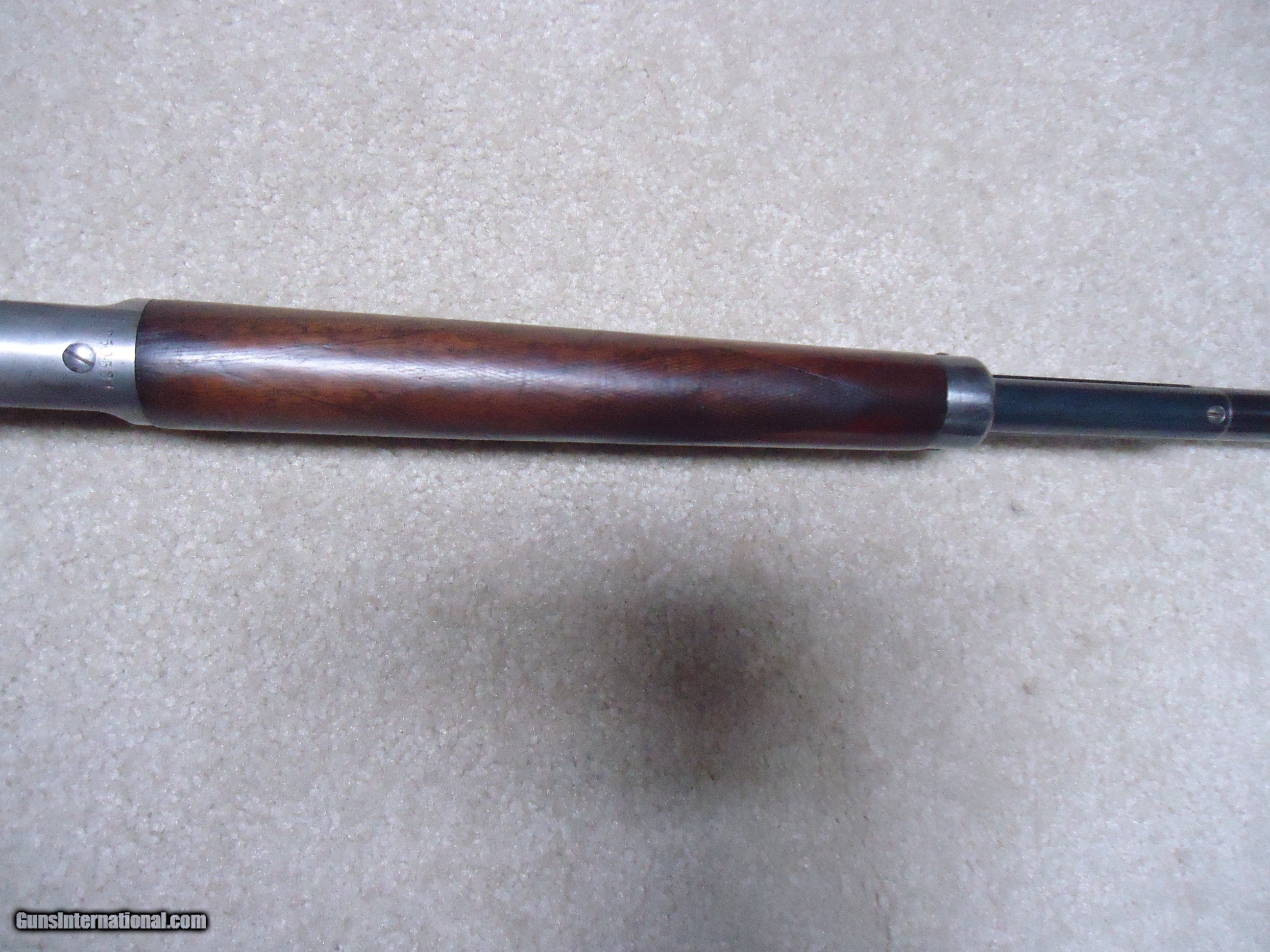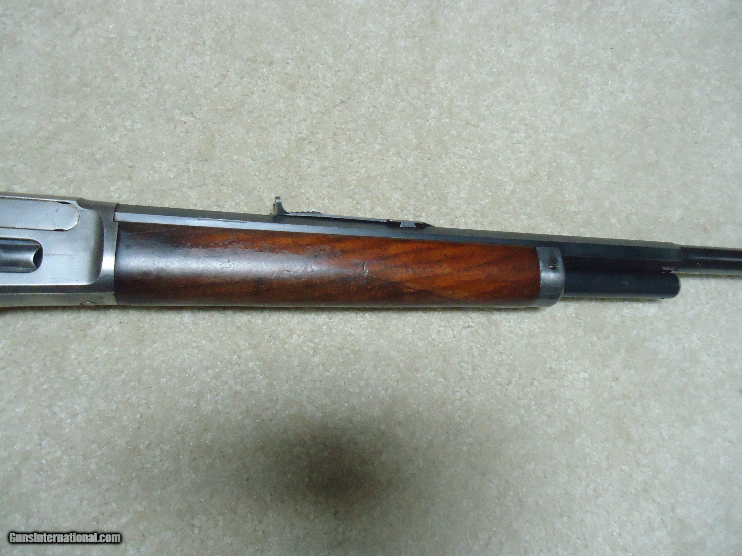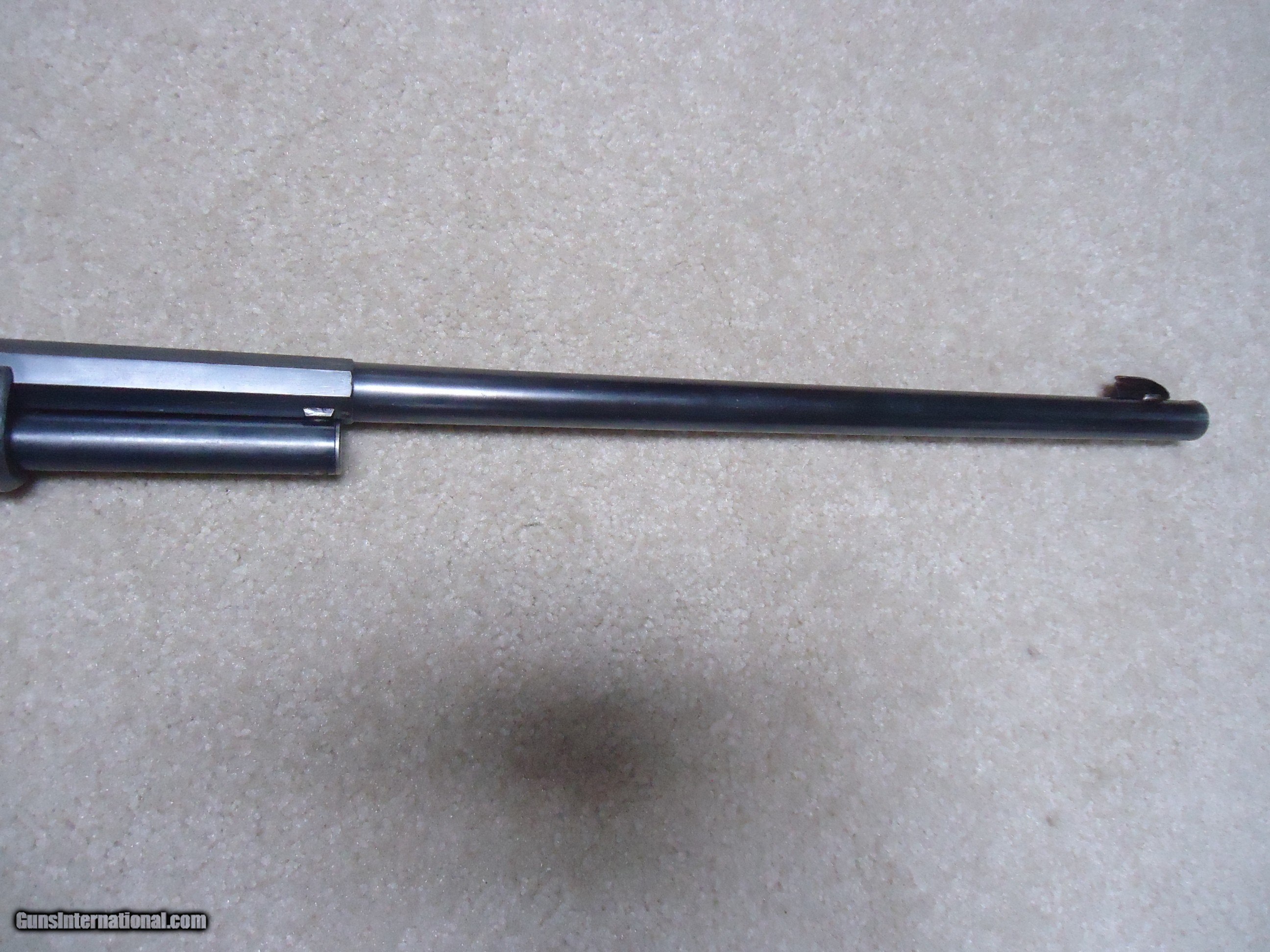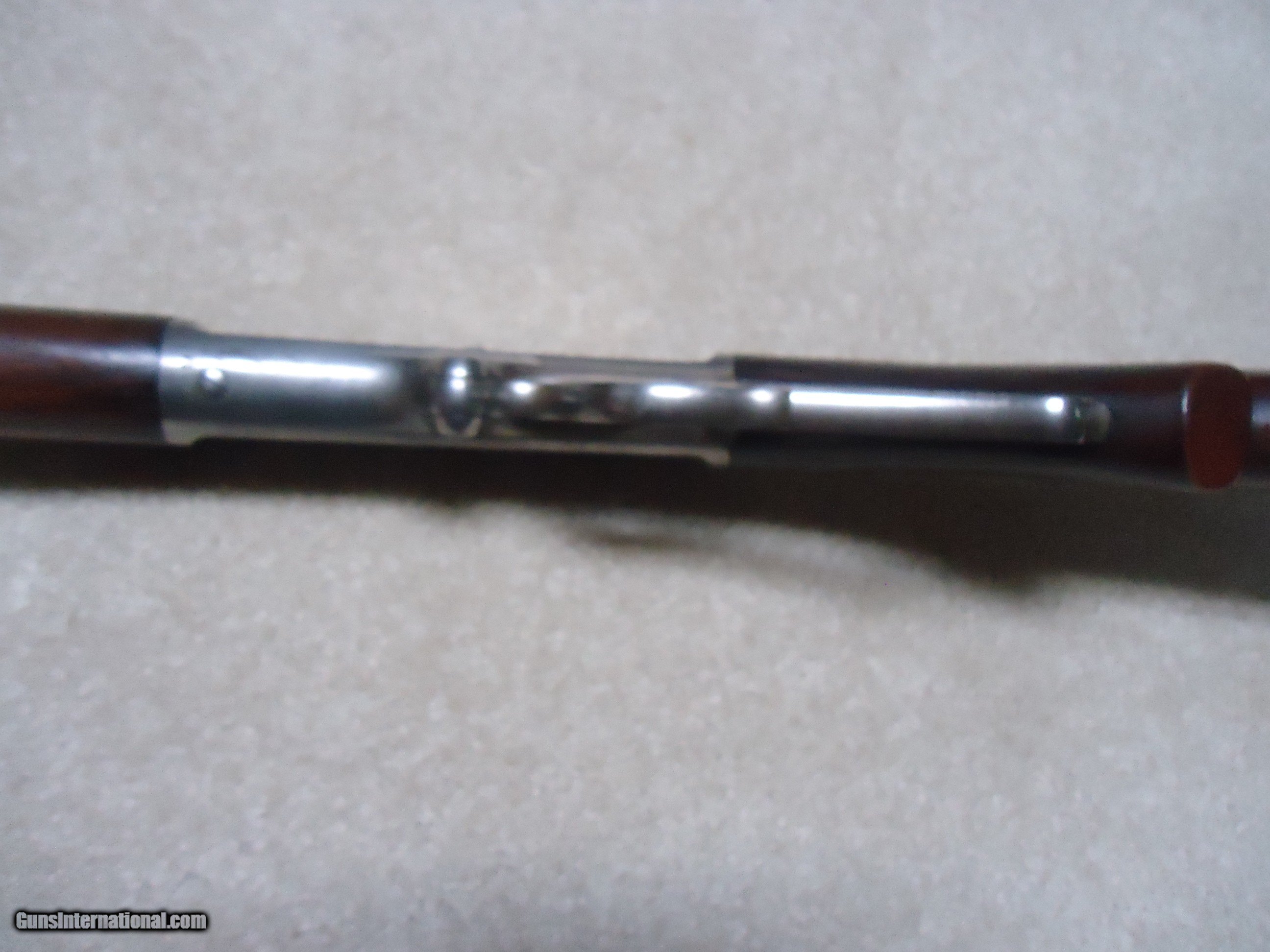 Description: A SUPER SCARCE MODEL 1893-B .32-40 CALIBER "FOR BLACK POWDER" MARKED BARREL WITH HALF-OCT. BARREL, HALF MAGAZINE, PISTOL GRIP AND CHECKERED WITH CASE COLORED RECEIVER, #250XXX, MADE 1902. There is a lot of misinformation out there about these Black Powder marked 1893s. Simply, Marlin had barrels made of high grade "soft" steel that was better suited to lead bullets instead of high velocity jacketed bullets. Barrels marked "Special Smokeless Steel" were made for jacketed bullets- similar to Winchester's "Nickel Steel" barrels made for the same purpose. The actions of "B" rifles and carbines were the same as the "Smokeless" rifles. It is certainly safe to fire jacketed bullets in the "B" rifles, but the barrels will wear faster than the smokeless barrels. "B" black powder rifles were only made in .32-40 and .38-55. Typically, they cost less than smokeless guns and were made in far fewer numbers. At the time, most .32-40 and .38-55 ammo was loaded with lead bullets with either black or smokeless powder. The "B" series were typically standard round or octagon barrel rifles with full magazines and BLUED receivers. Anything other than this is really rare and could be considered a true Marlin oddity. This example with checkering, pistol grip, half-oct. barrel and half-mag. with CASE HARDENED/CASE COLORED receiver is truly unusual. The receiver colors have mostly silvered with some color in the most protected areas around the edges of the receiver sides and around the hammer. The barrel and mag blue is stll deep and fine. The wood shows normal handling but is fine with tight wood to metal fit.The checkering on the pistol grip is all there, but a bit worn. The forearm checkering is mostly visible, but worn from handling. All markings are sharp and clear. The barrel is fitted with the original buckhorn rear sight with elevation bar intact and a Marble/Sheard marked long blade/bead front sight. The bore is bright and excellent. Screw heads are excellent, action is tight and the half-cock on the hammer is strong. You could look for years and never find another like this! SOLD Rifle Caliber: .32-40 Winchester Manufacturer: MARLIN Model: 1893-"B Serial Number: 250XXX Barrel Length: 26" HALF OCTAGON Condition: FINE Bore Condition: EXCELLENT |