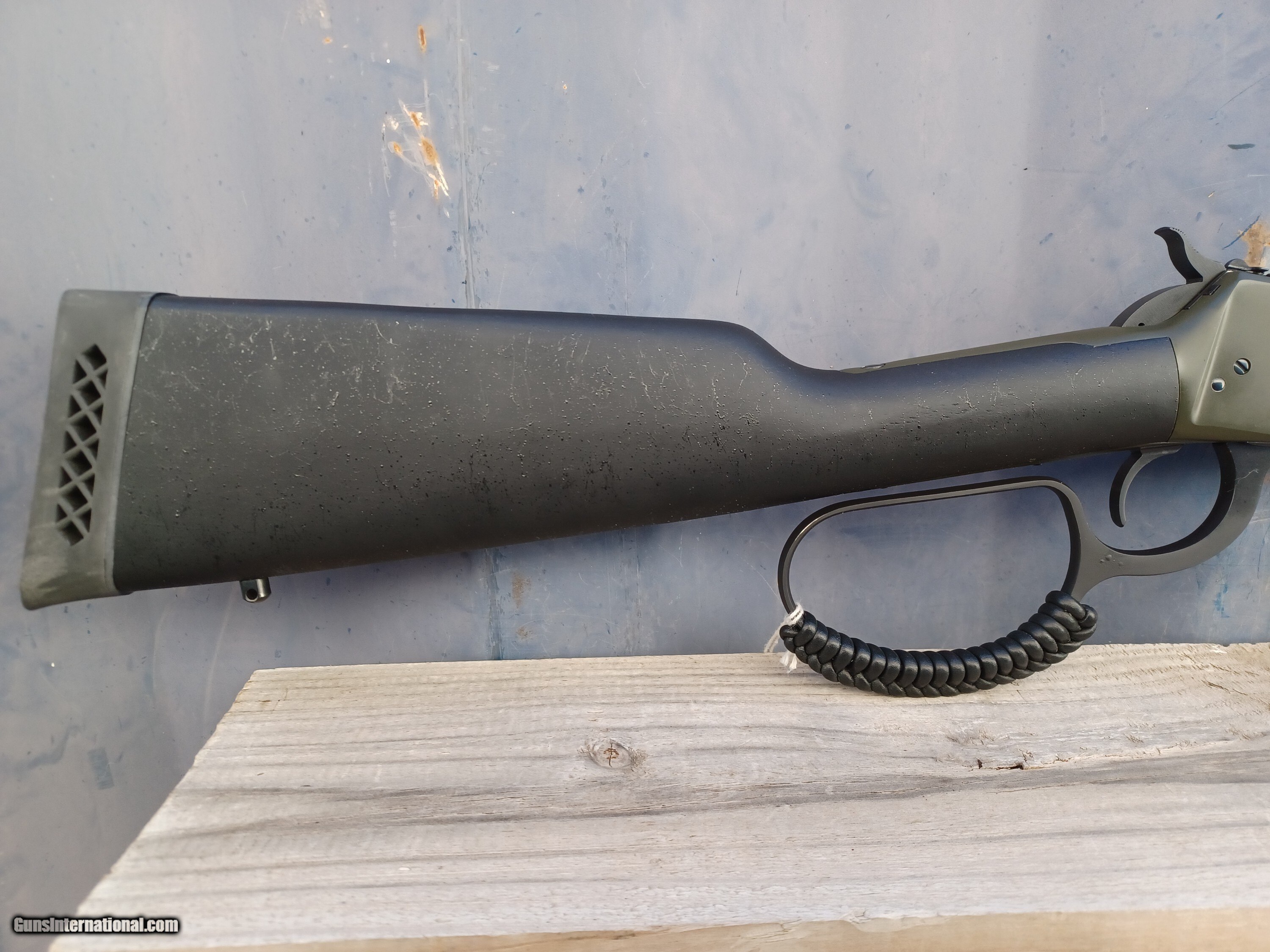 Description: Here is a very cool Rossi R92 chambered for 357 Magnum and 38 Special. This rifle has a dark green cerakote finish and black spiderspeckled stock and fore arm. The barrel is 16.5" and is threaded with a thread protector installed. The lever is a large loop style with a very nice leather wrapping on the bottle of the loop. Sweet rifle in a great caliber. Thanks for looking! $45 shipping, Alaska and Hawaii will be a little more for shipping. Please call with any questions. Please click the BUY NOW button to purchase this item. We are required to charge 8.25% for Texas residents. There is a 3.5% fee if paying by credit card. Rifle Caliber: .357 Magnum, .38 Special Manufacturer: Rossi Model: R92 Serial Number: 7CR172518T Barrel Length: 16.5 Condition: Very Good Metal Condition: Very Good Wood Condition: Very Good Bore Condition: Very Good Price: $699.00 Shipping: $45.00 Buy Now Contact Seller |