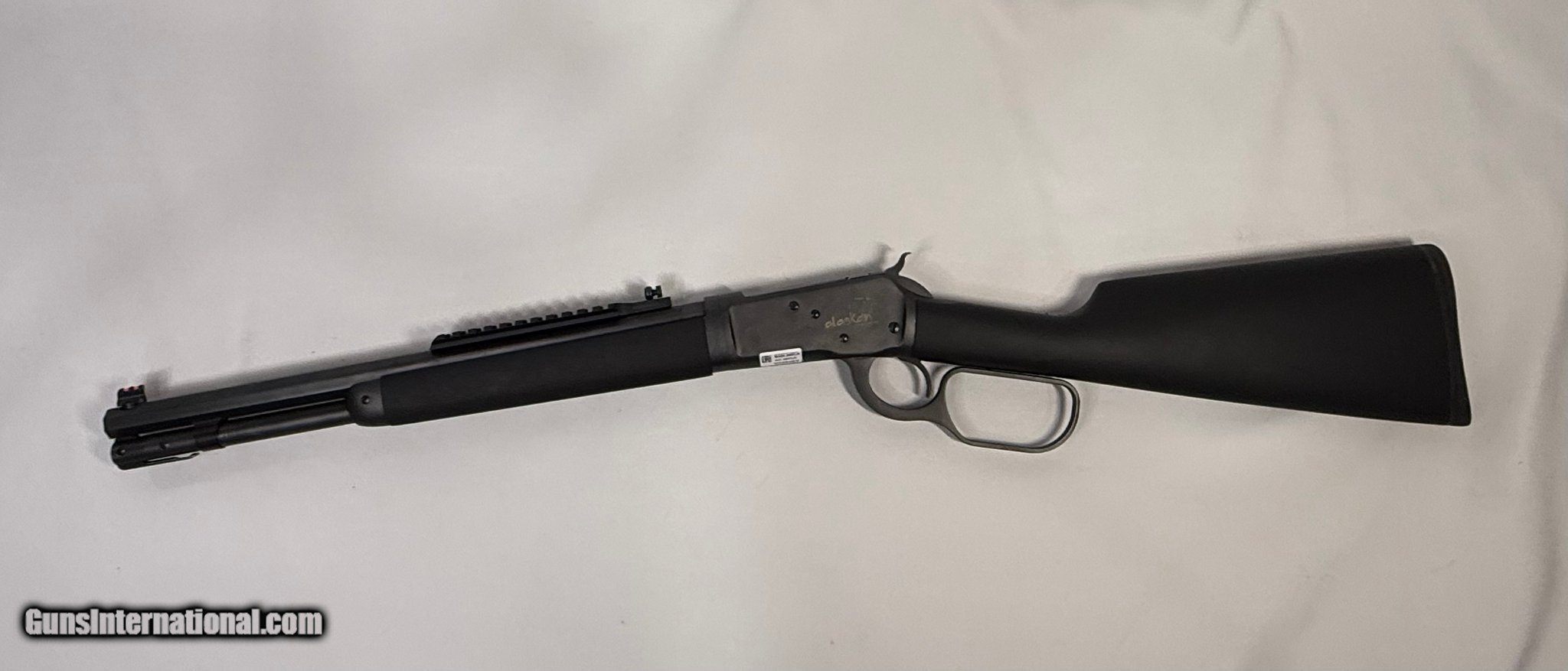 Description: Guns Listing ID: 577316 No box, Alaskan. Bore in great condition and comes with a piccatiny rail. Manufacturer: TAYLOR‚S & CO. Model: 1892 CARBINE Caliber Info: .357 MAG Condition: Used - Non-Certified Barrels: 16" BARREL Action: LEVER ACTION Finish: blued Price: $1,559.99 Contact Seller |