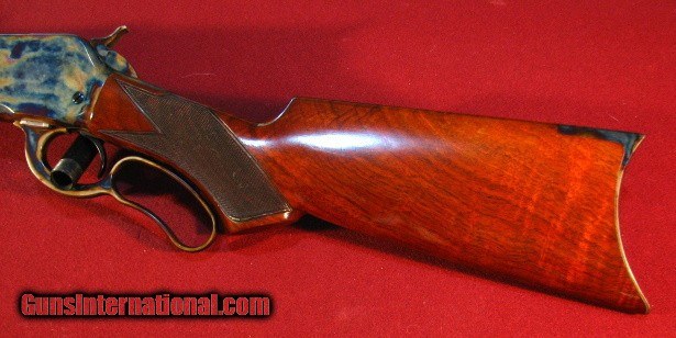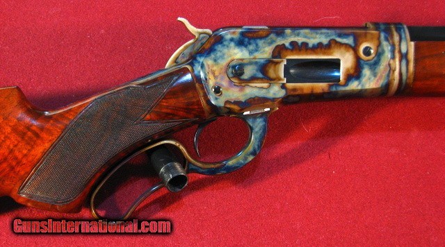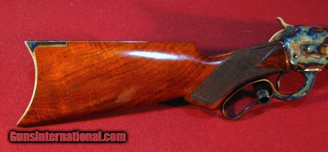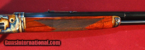 Description: Doug Turnbull Winchester 1886 Deluxe Limited Edition Takedown in 45-90 with 26" half round half octagon barrel. These modern 1886 Winchesters are special ordered in exclusive Turnbull configuration and recieve the special Turnbull treatment to include bone charcoal color case hardening, lustrous rust blue of barrel & magazine, and Winchester classic stock finish. The tang safety is converted back to the original half cock safety. -= The 1886 is John Moses Browning's finest lever action accomplisment. ACGG member Doug Turnbull is the uncontested finest restorer of Winchester firearms. This limited edition takedown version is no longer available. This superb gun remains new and unfired. Excellent value. SOLD |