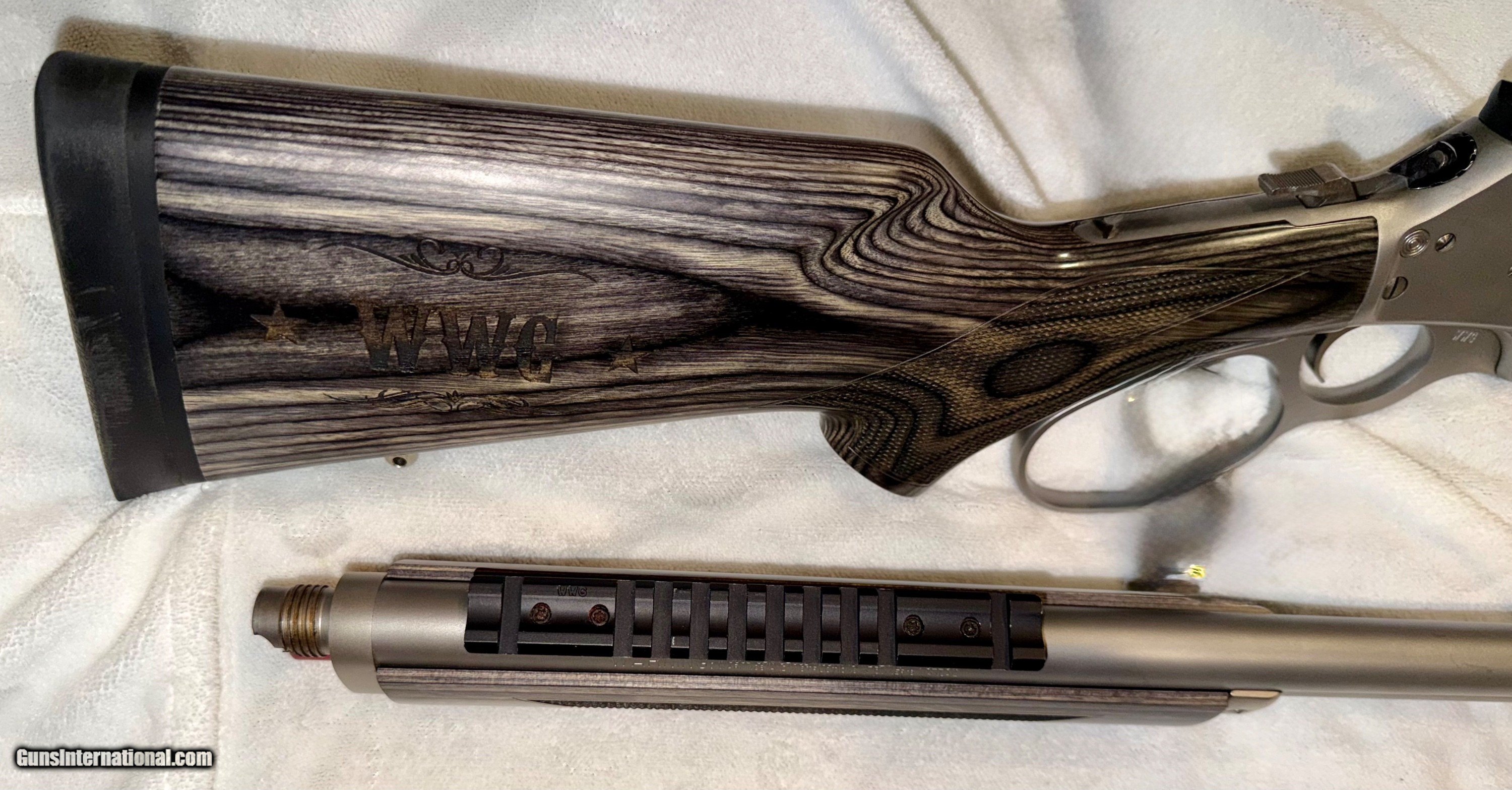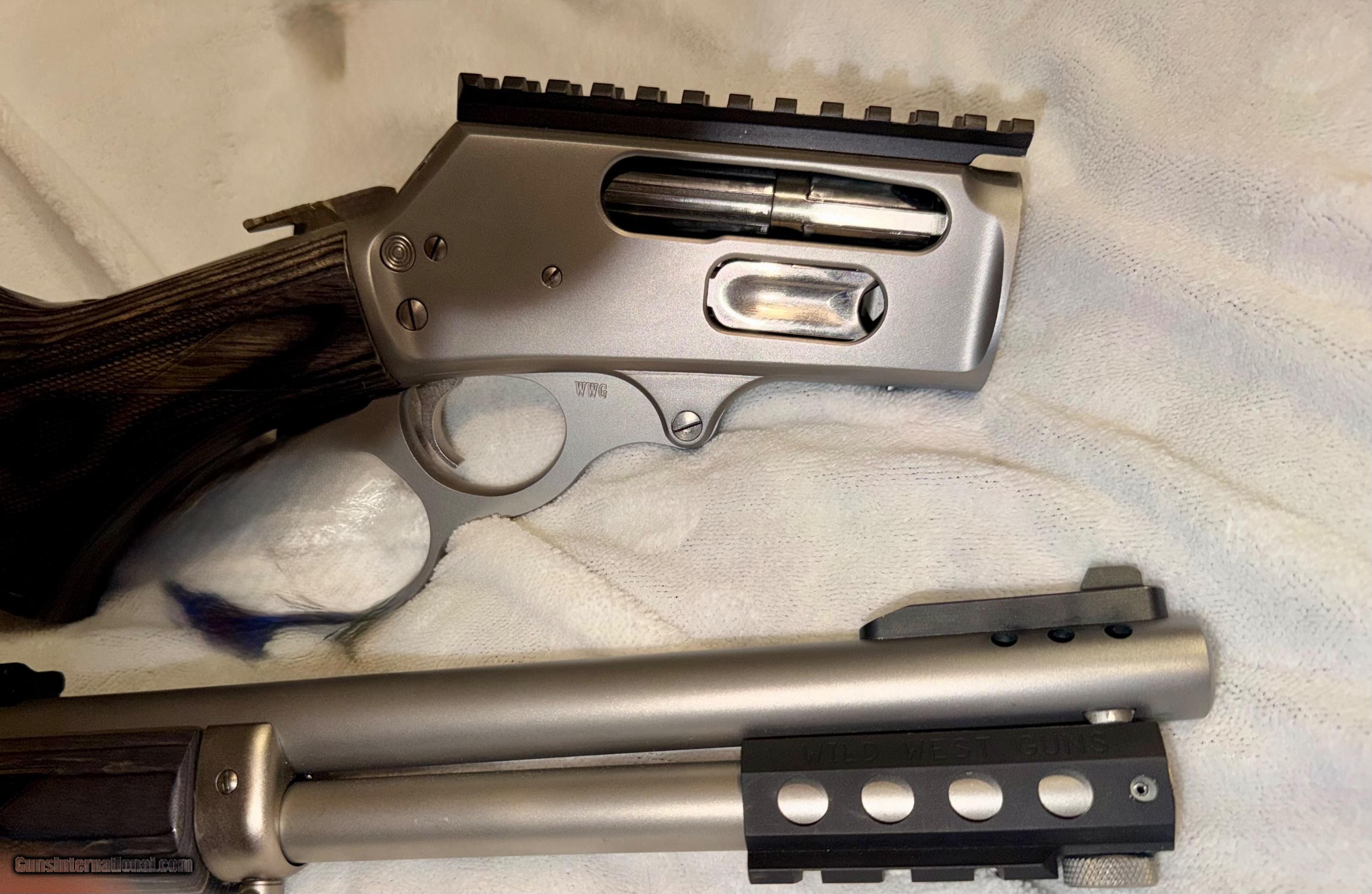 Description: Wild West Guns copilot in 45 70/457 WWG in immaculate condition as new condition barrel is ported to help tame recoil tuned action for enhanced reliability silky smooth operation and crisp custom triggered all sales final buyer pays actual shipping Rifle Caliber: .45-70 Government, .457 WWG Manufacturer: Marlin Model: 1895 Barrel Length: 18 inches Bore Info: As New Condition: 99% Metal Condition: 99% Wood Condition: 100% Bore Condition: As New Action: Lever Triggers: Custom WWG TRIGGER Stock: WWG stock Butt Pad: Rubber Finish: Cerakote Item Location: Florida Optic: Scope Rail Price: $3,500.00 Contact Seller |