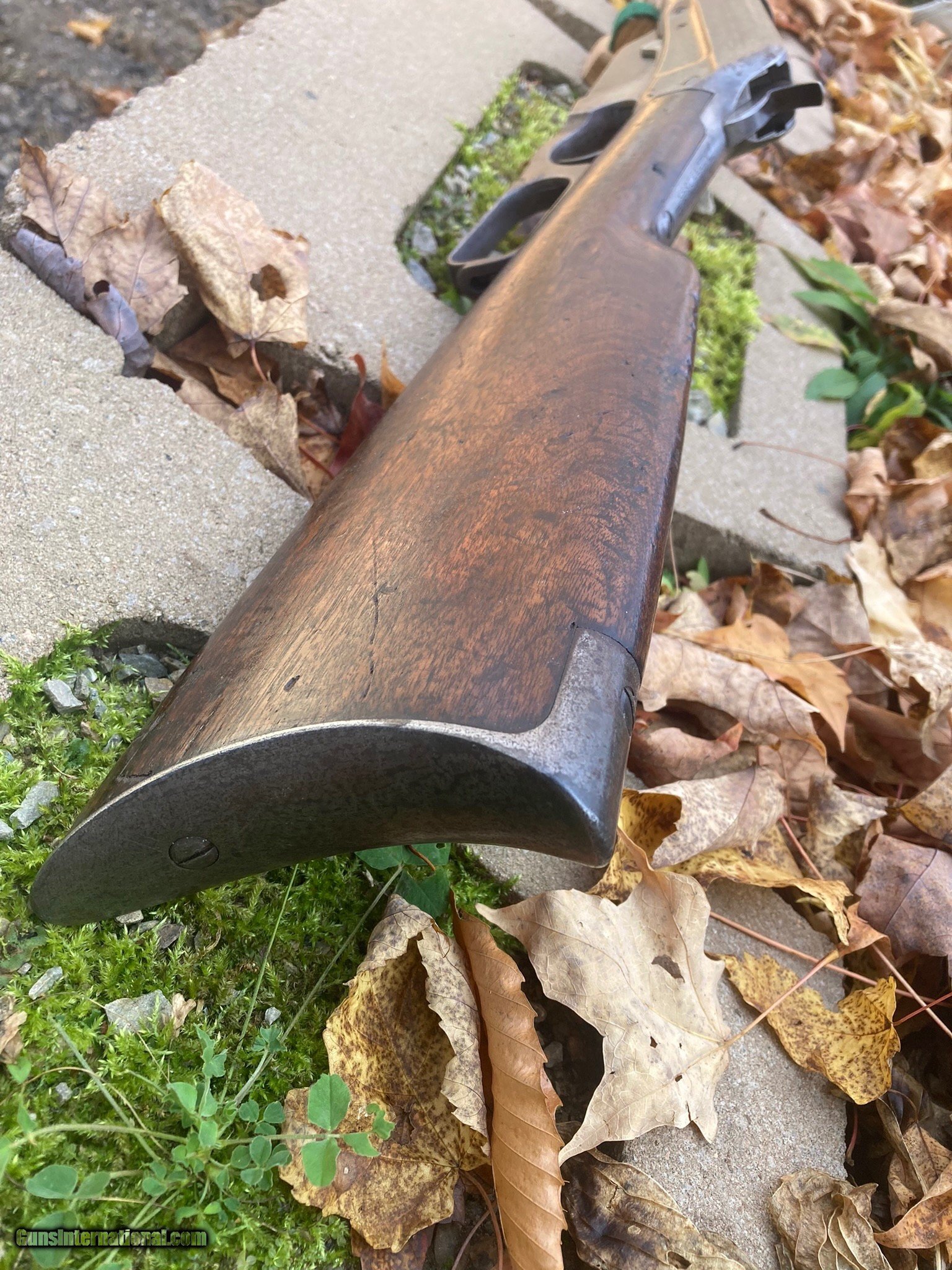 Description: SOLD Offering a unaltered Winchester model 1895 30 U.S., the old 30/40 Krag more commonly called. The standard 28" round rifle barrel with original sights front and rear. Crescent butt plate , has the black ebony tipped forearm , no extra holes , I bought this a few years back up in the mining country of western Montana.the brownish patina has taken over the blue that came on her. Nickel steel barrels as all were by 1904 which this ole gal dates to. sn. 43503, not an antique but getting there. She's got a good bore and lays them out there very respectable. This action is supposedly the strongest Mr Browning designed for the company , some say the ugliest as well, I've always liked them , very dependable. I'd like to ship to your C&R or a FFL, goes priority mail USPS , insured with tracking number, my listed price includes shipping and insurance to lower 48. call 920-590-3400 for info or pictures, I'm a long time collector reducing my herd SOLD shipped Greg Nickol , Great Falls MT, 11-16-22 shipped to Greg Nickol , Billings, MT, $1250. SOLD Curio/Relic: Yes Rifle Caliber: .30-40 Krag Manufacturer: Winchester Model: 1895 Serial Number: 43503 Bore: Fine Condition: Fair Metal Condition: Fair Wood Condition: Fair Bore Condition: Good Barrel Type: round Action: Lever Triggers: single Stock: crescent rifle style Butt Pad: Crescent Finish: Patina Weight: 8-9 lbs Sights: open rear Manufacture Date: 1904 |