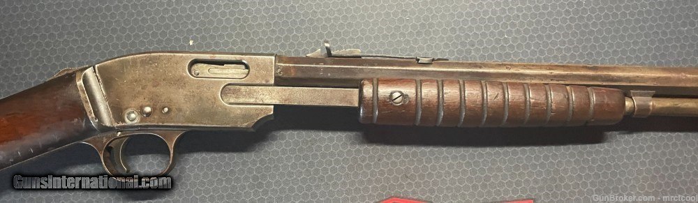 Description: Here's one for the pump action collectors out there. A hard to find Meriden Model 15 with an ultra low serial number of 18. This rifle that came out in 1912 C&R does show signs of usage and there is a little play between the two halves. Not enough to impede it's function as it pumps smooth, safety works and everything else seems to function as it should. I do not test fire these guns or work on them. This would be an excellent restoration project. If you collect old .22's or Pump Actions this is a must have. Please look at the detailed pictures of what you would be getting. The Model 15 was Meriden's only slide action repeating rifle. It first appeared in the Fall of 1912 Sears catalog and featured an octagonal barrel with dovetailed front sight and folding rear sight, a blued finish, thumb safety, walnut stock and crescent buttplate.The Model 15 design seems to have evolved even after Meriden closed. Mossberg seems to have used the Model 15 as the basis for the Mossberg models K, M, and S. With the Model K being the most similar to the Meriden Model 15. During this time, Mossberg began producing the "Premier" based on the Meriden as a store brand gun. $55 shipping and 3% Credit Card fees. Buy now pays no shipping or credit card fees. We will always consider offers but this one is priced right so delaying with an offer you might lose out. We have over 130 A+ ratings and have been known for great products, customer service and fast shipping. We are a licensed FFL out of Arizona and will only ship to licensed FFL's. No storefront so no in person sales. We look forward to earning your business. We are a veteran owned and operated business. We specialize in finding hard to find guns for many collectors. If you are looking for something let us know and we can probably find it. We generally purchase guns through private parties and estate sales, and we check to ensure the gun functions, we do not clean, test fire or do repairs to the gun. PLEASE DO NOT BUY UNLESS YOU ARE SURE YOU WILL FOLLOW THROUGH WITH THE PURCHASE. By purchasing, you are attesting to being of legal age to own this item in your state. It is the buyer’s responsibility to know local gun laws, prior to purchase, if it ships to your dealer and it's not legal in your state no refunds. California s must have the FFL say the guns legal in your state before you buy. All items have a 3-day inspection and inspections should take place while at the FFL’s location once it leaves the FFL I can’t help you. Arrangements of payments must be made within 3 days of purchase. It is your responsibility to know if you will pass the FFL background check, no refunds if you don't. If you back out of the sale a 15% restocking fee will be charged we encourage you to have the gun checked before firing to insure it's safety. SOLD Curio/Relic: Yes Rifle Caliber: .22 Long |