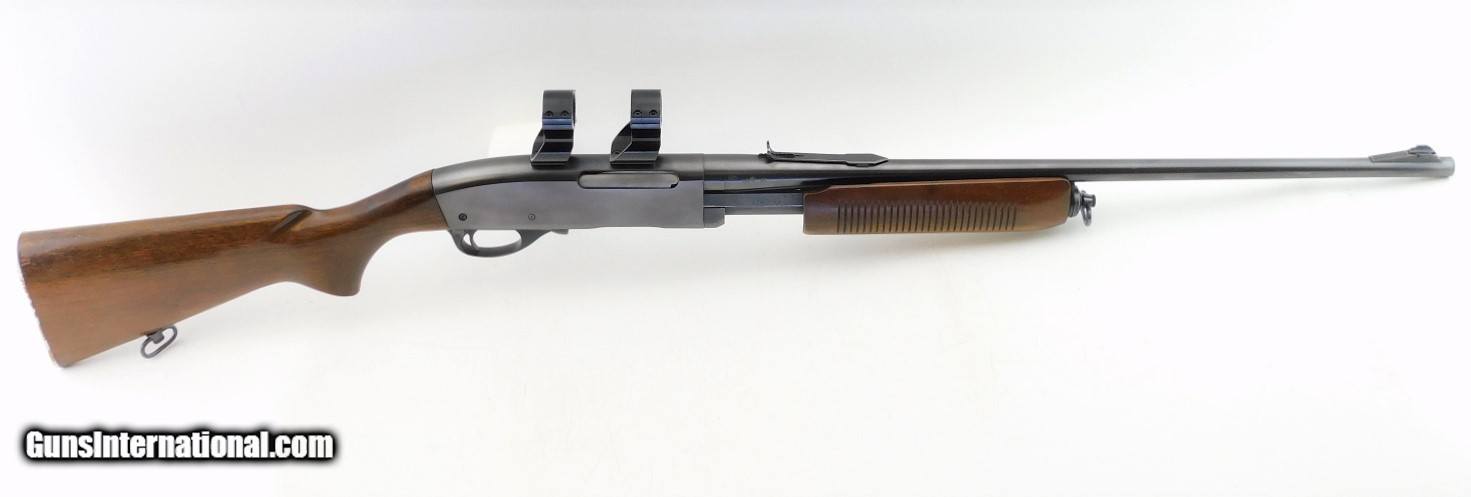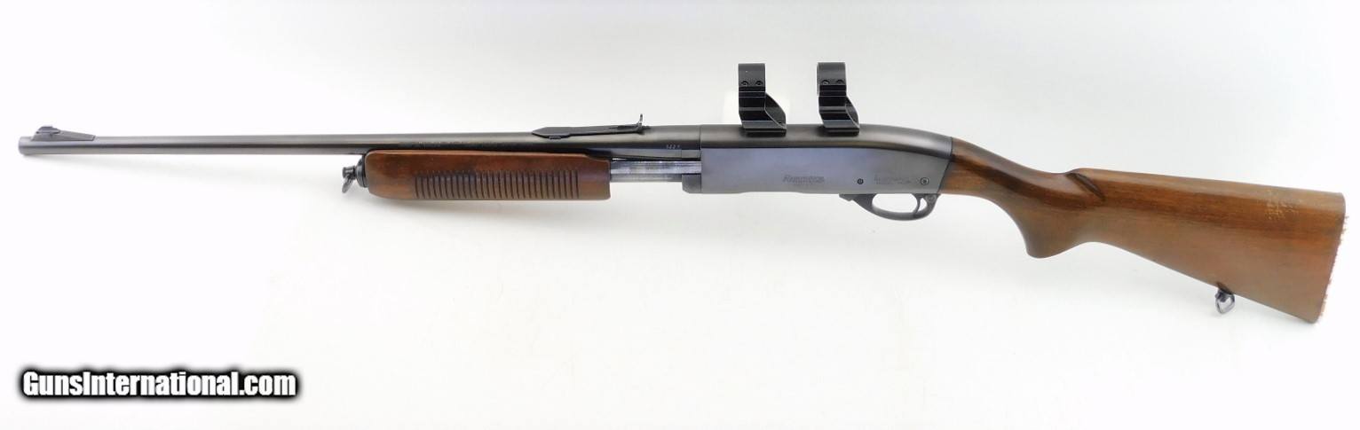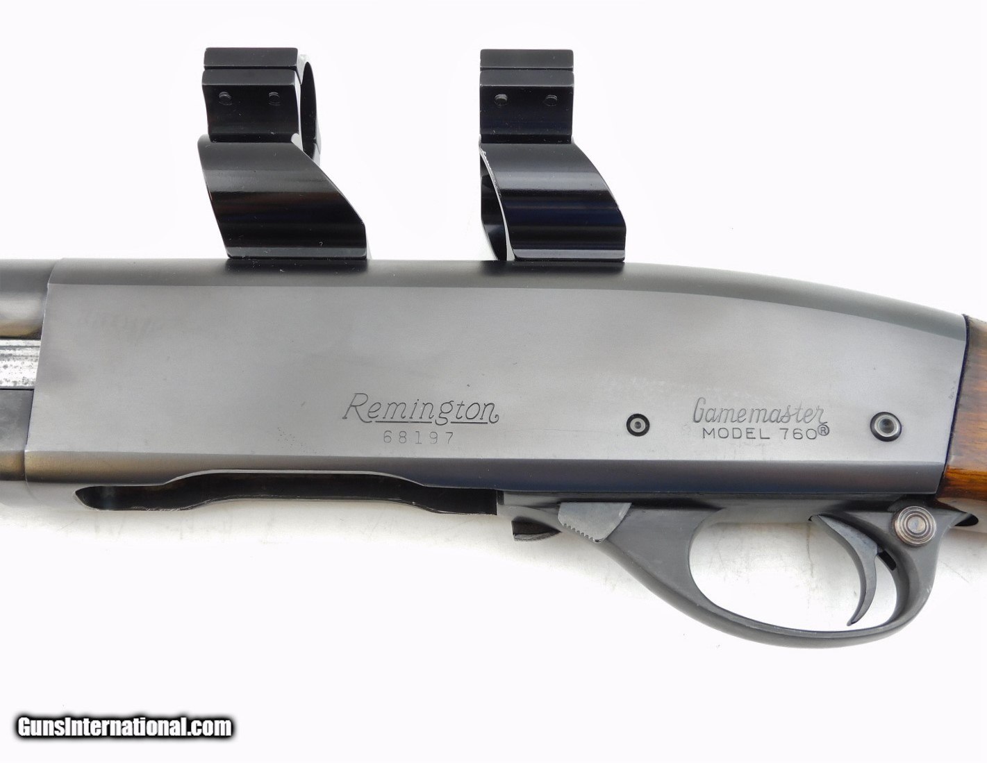 Description: Remington 760 GameMaster .30-06, 22" bbl, bright shiny bore, good rifling, blued finish, see through 1" scope rings, semi-buckhorn rear sight, silver bead front sight, nice smooth grip stock - forearm, 13 1/2" LOP, sling loops, one 4 round magazine, and metal butt plate. Add 3% for Credit Card Shipping $35.00 SOLD |