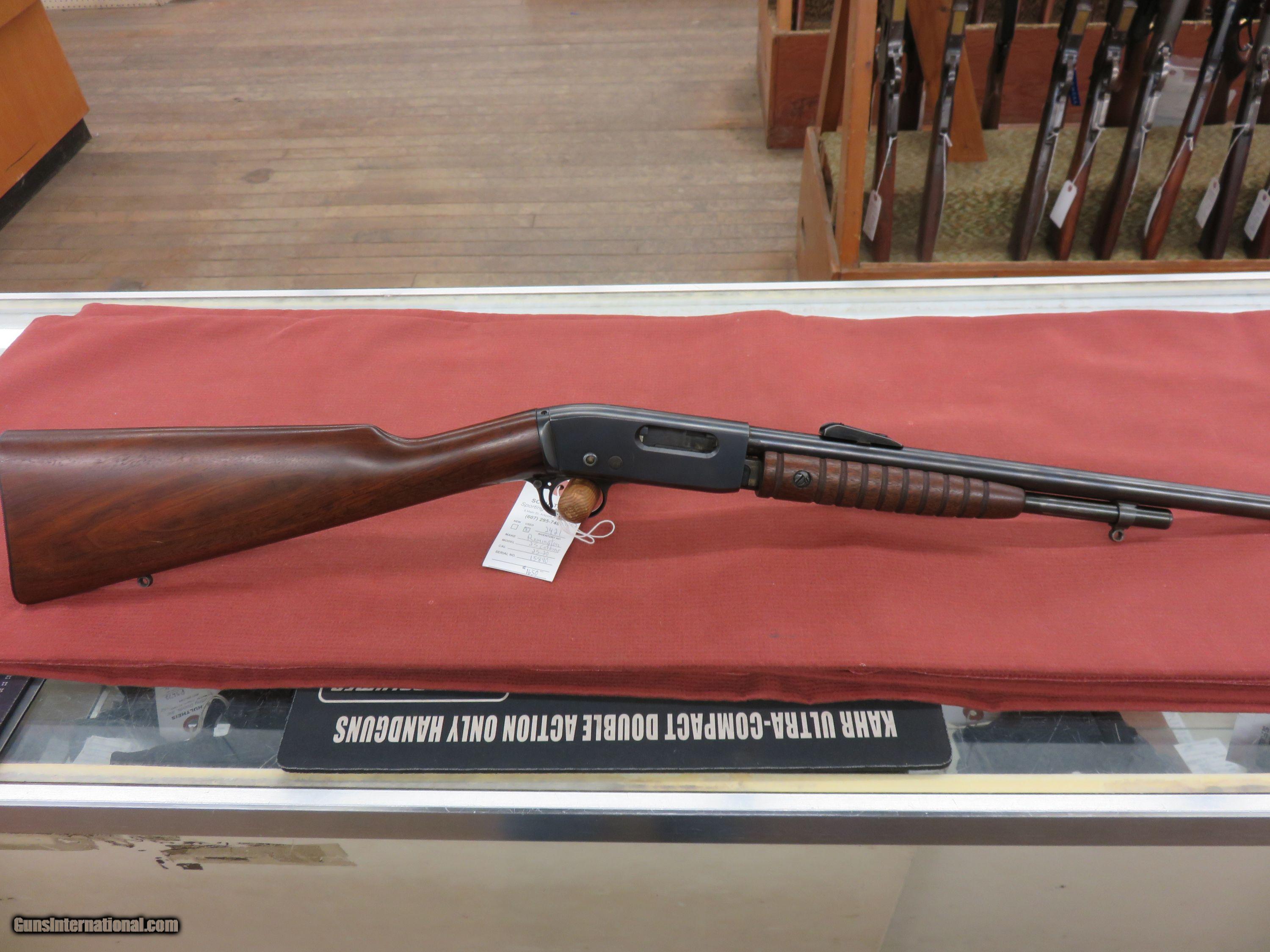Description: Remington Model 25 Carbine, 25-20, a beauty with 98% original blue & wood varnish, all original except for 3 scope mount holes on top & 1 hole filled in on the upper grip of the stock for a receiver peep sight that was once there. SOLD |