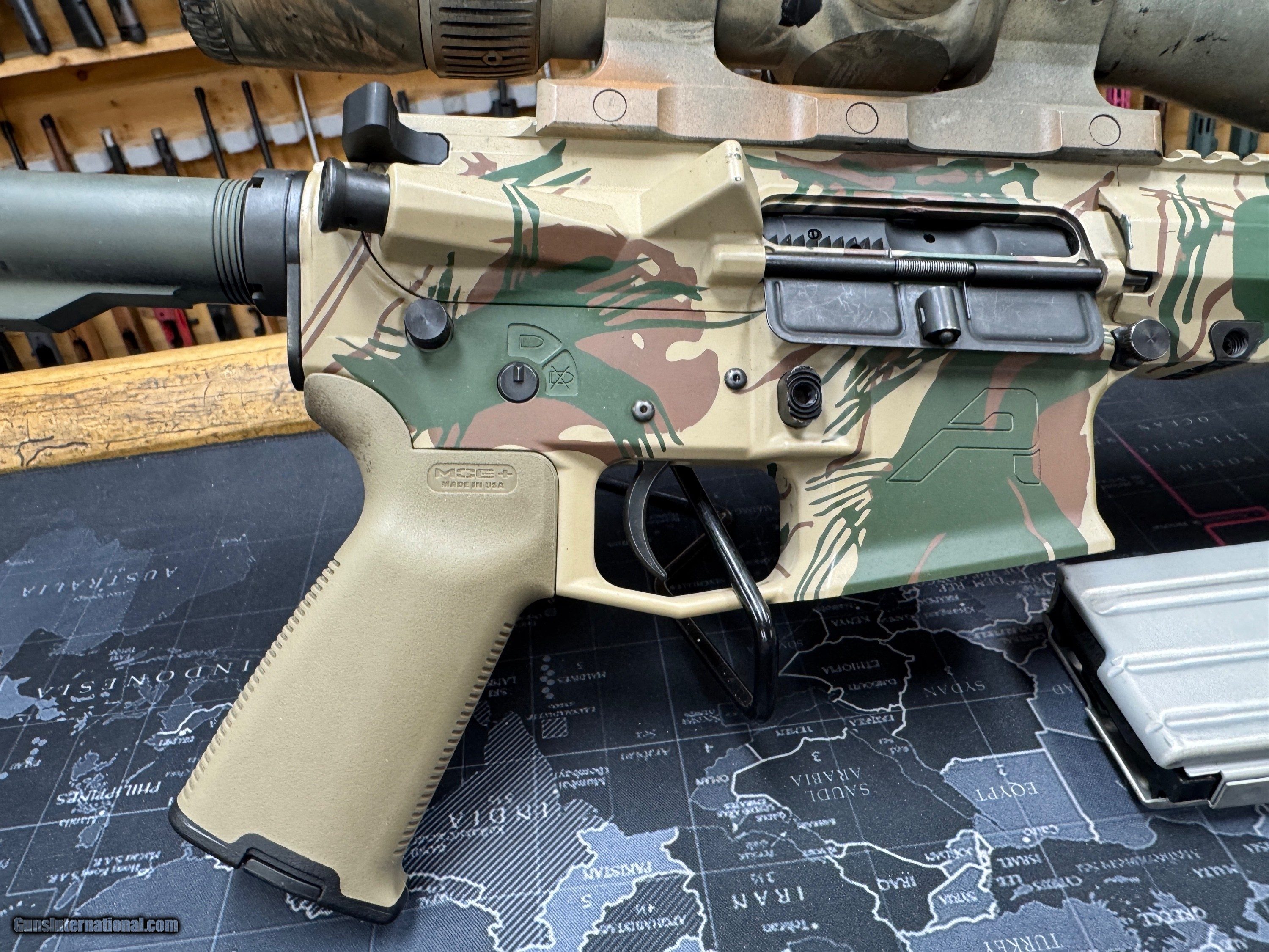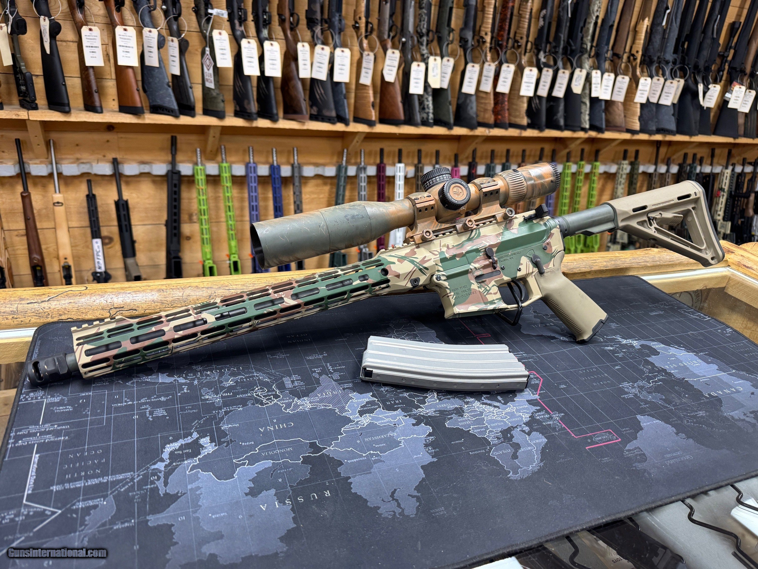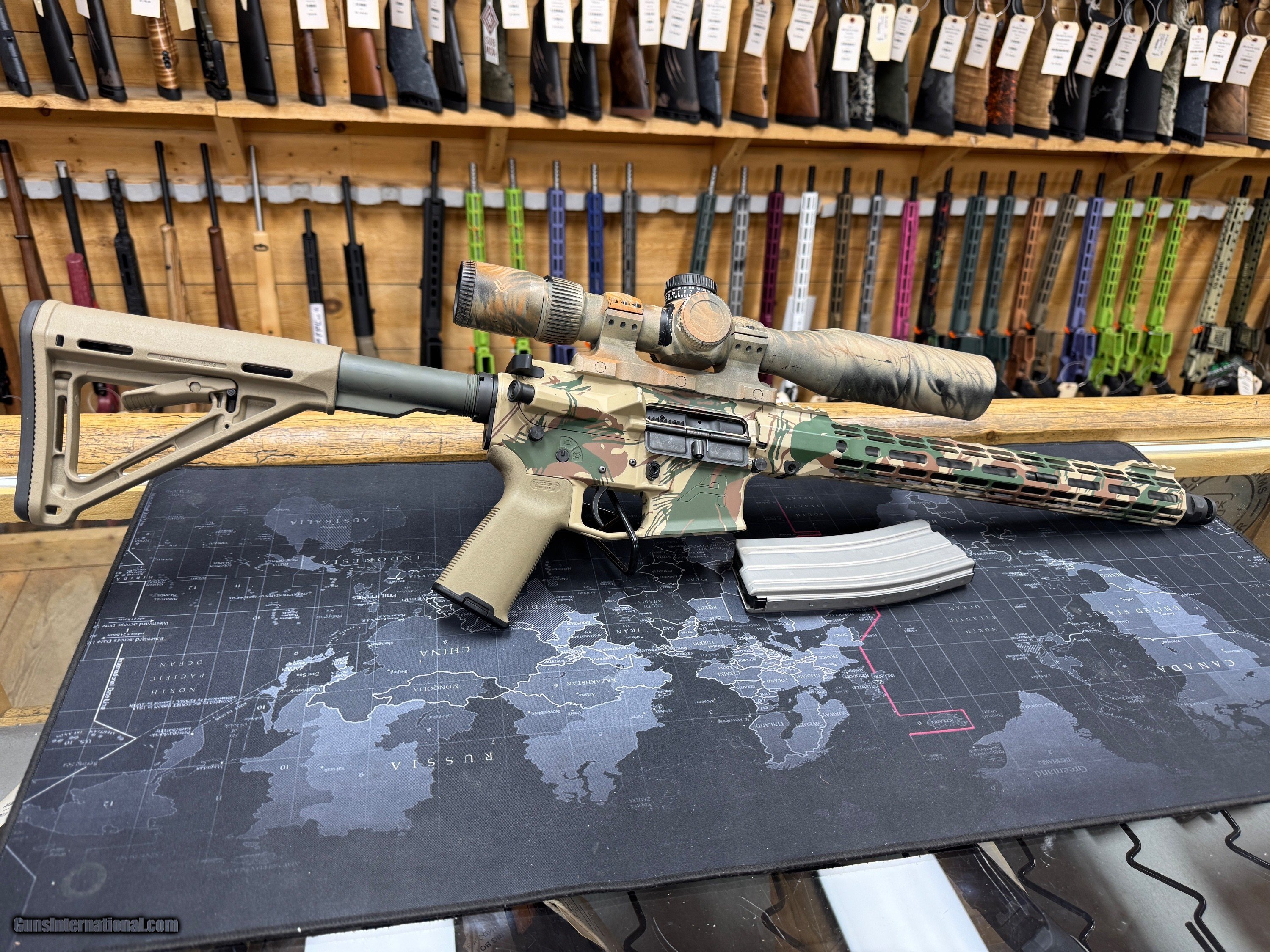 Description: This is a Good used rifle. The scope has been painted but is in excellent condition. It comes with one magazine. Rifle Caliber: 5.56x45mm NATO Manufacturer: Aero Precision Model: M4E1 Serial Number: M4-0156861 Barrel Length: 16” Condition: Good Stock: Magpul Fore End: M-alok Finish: Rodesian Brushstroke Camo Grips: M-Lok Optic: Vortex Venom 3-15x44 Price: $899.99 Shipping: $40.00 Contact Seller |