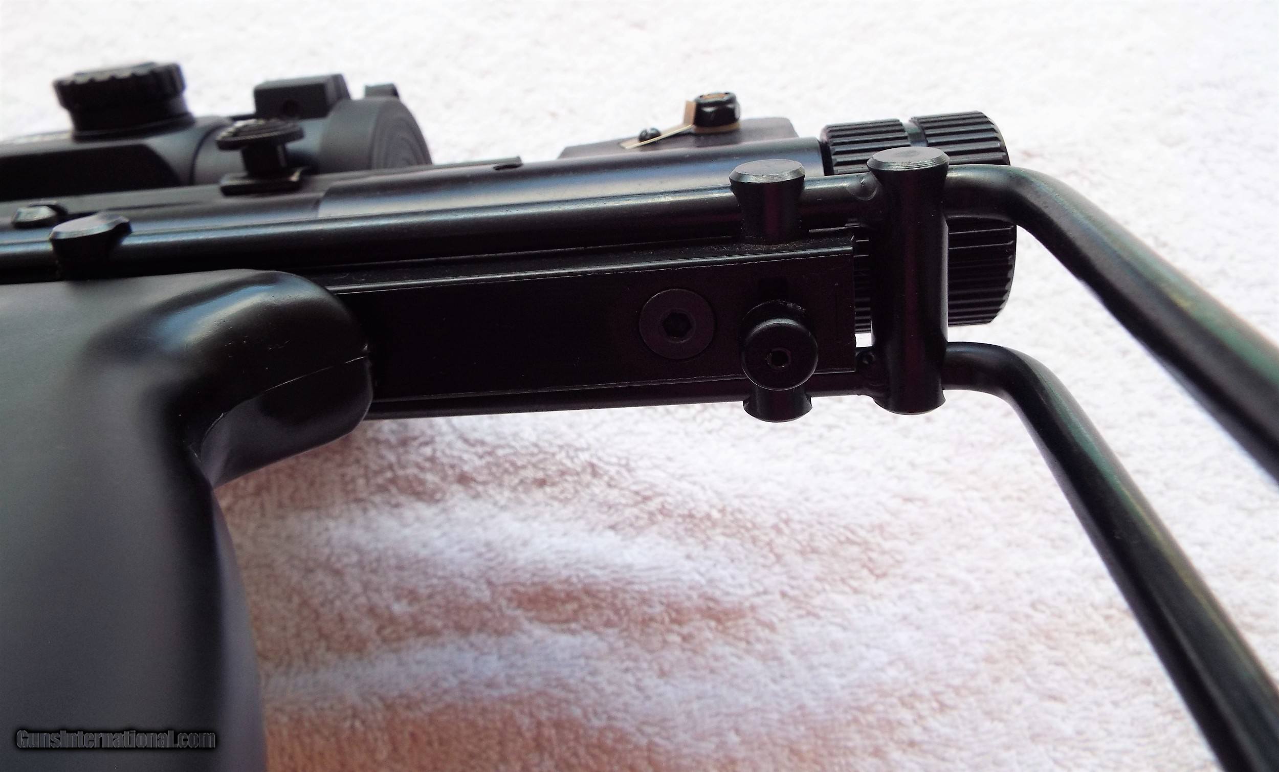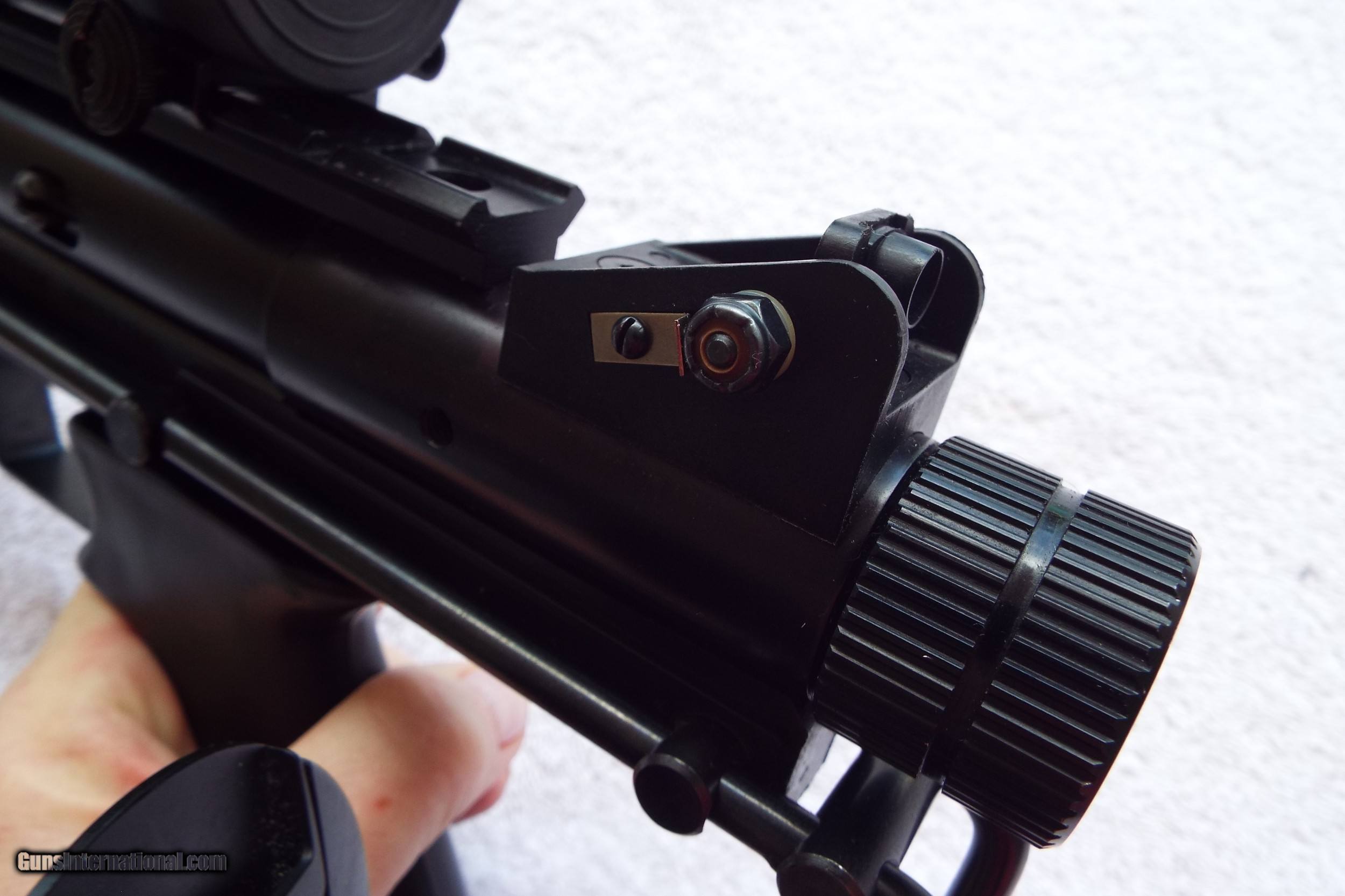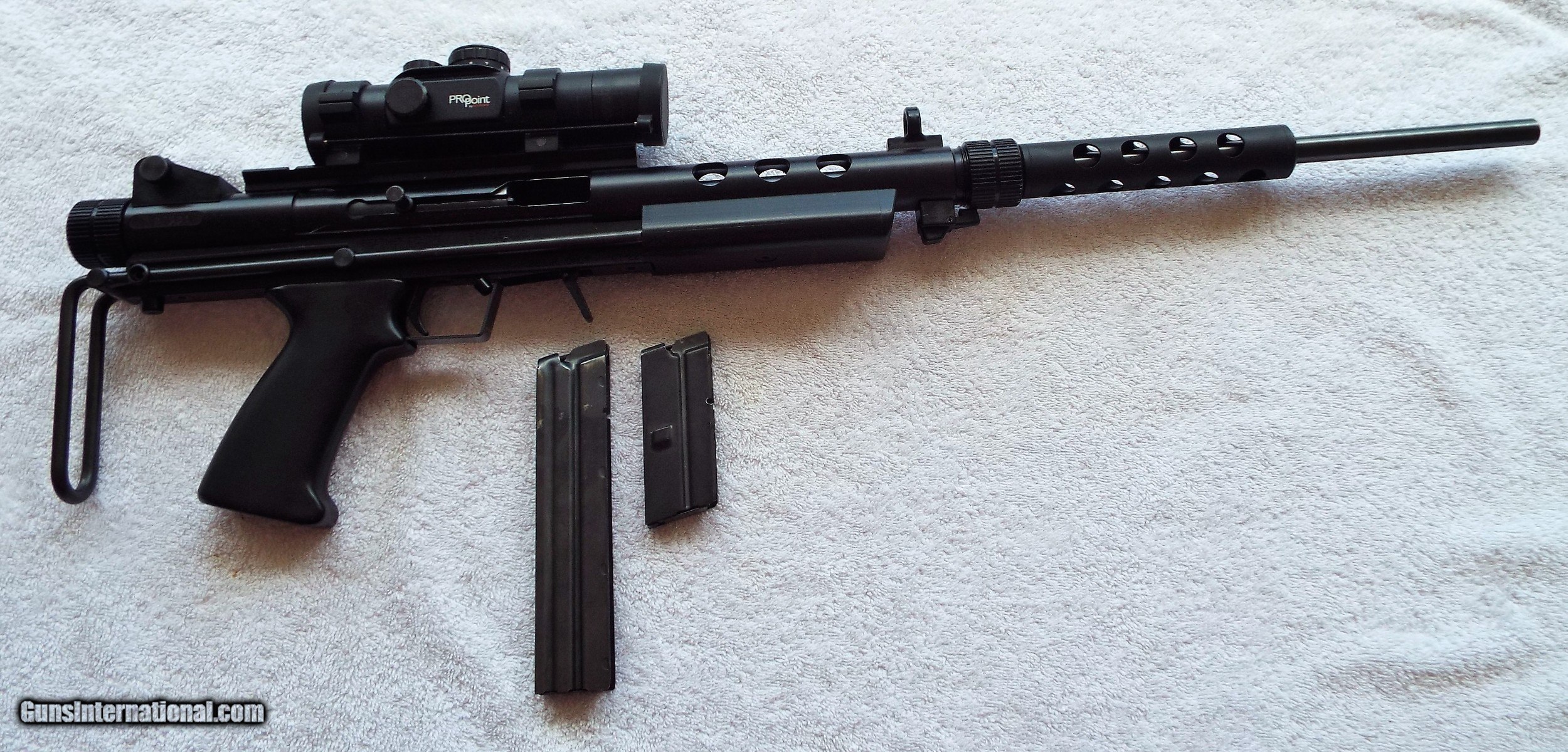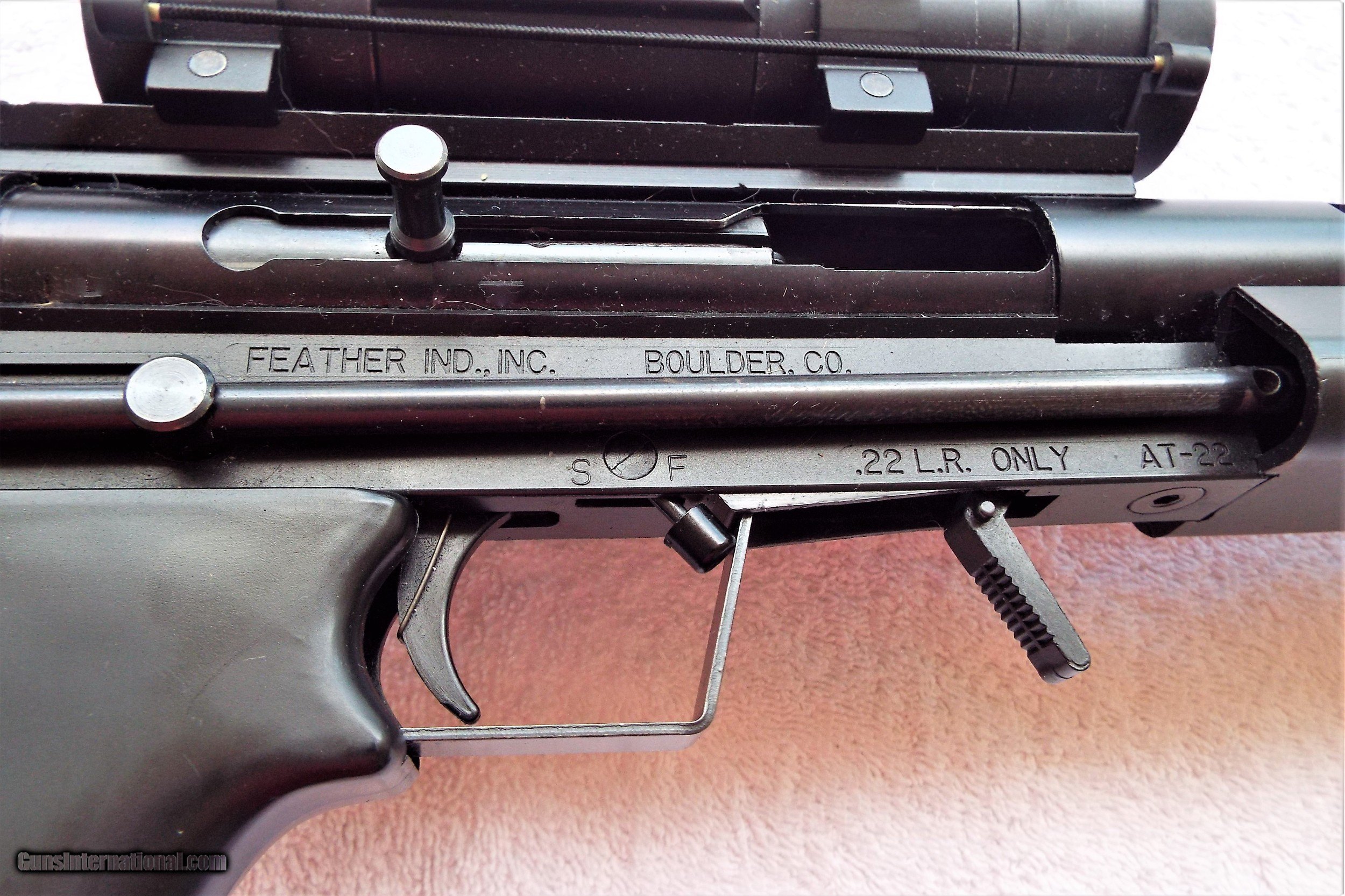 Description: FEATHER INDUSTRIES FACTORY MODEL AT-22 RIFLE PRE-BAN COLLAPSIBLE METAL STOCK - 22lr. Semi-Auto Blowback action, 17" detachable shrouded barrel, adjustable rear sight, (1) 10 round mag & (1) 20 round mag. Equiped with Pro Point red dot scope & mount.USED, BUT NOT ABUSED! Very Good Condition! Weighs 3.25 lbs. Ser. # B7531 Must be shipped to your Local FFL Shipping is $30 For Purchase please call Erica / Self Defense inc. 772-349-0334 (Florida) SOLD Rifle Caliber: .22 Long Rifle Manufacturer: FEATHER IND. Model: AT-22 Serial Number: B7531 Barrel Length: 17 Bore: CLEAN Condition: VERY GOOD Metal Condition: VERY GOOD Bore Condition: EXCELLENT Finish: BLUE Weight: 3.25 lbs Sights: ADJ. REAR Manufacture Date: 1986-95 Case: NONE Item Location: Florida |