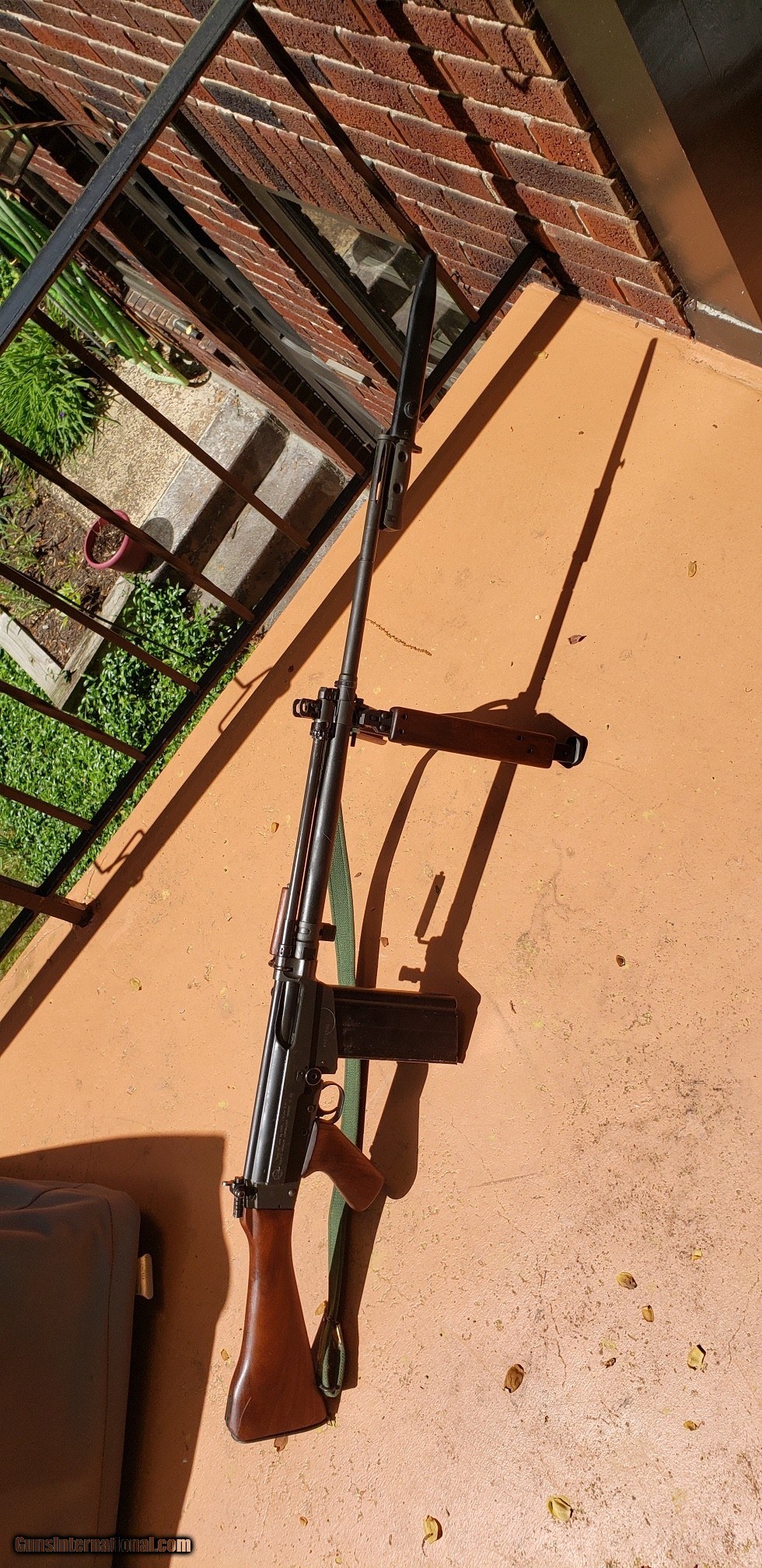 Description: Imbel receiver on canadian parts kit. Inch pattern receiver. Probable canadian bayonet. It has no markigs . L2a1 Heavy barrel in semi automatic. Wood is excelent condition as is the metal. Barrel is pristine. Bipod Bayonet SOLD Curio/Relic: Yes |