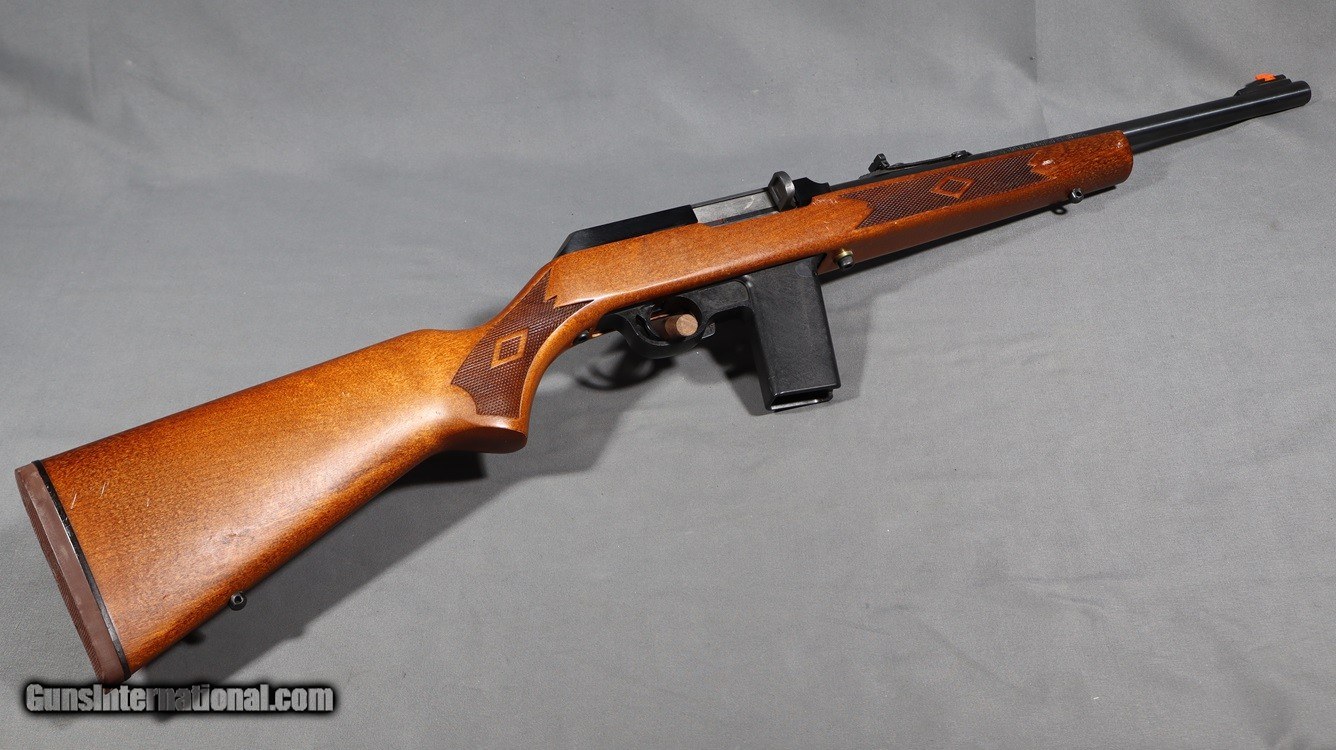 Description: For your consideration, we have a hard to find Marlin Model 45, .45 auto rifle to offer. This is a nice carbine rifle in a solid handgun caliber. You may purchase this used firearm on the Bass Pro Shops/Cabelas by adding it to your Cart, or you may contact the Wichita, Kansas Gun Library at (316) 854-0748. Your purchase will be shipped free of charge to the Bass Pro Shops/Cabelas store nearest to your location. Thank You for your interest and for shopping Bass Pro Shops. .45 Auto Chambers: .45 auto Metal Condition: "Good condition, minor wear on receiver Wood Condition: "Good condition, a few minor scratches and scuffs Bore Condition: Good condition Barrels: 16" barrel Stock Dimensions: 36" overall length and a 14" LOP Weight: 6LBS 6OZ Sights: Front blade sight and rear adjustable sight Item Location: Wichita, KS Price: $899.99 Contact Seller |