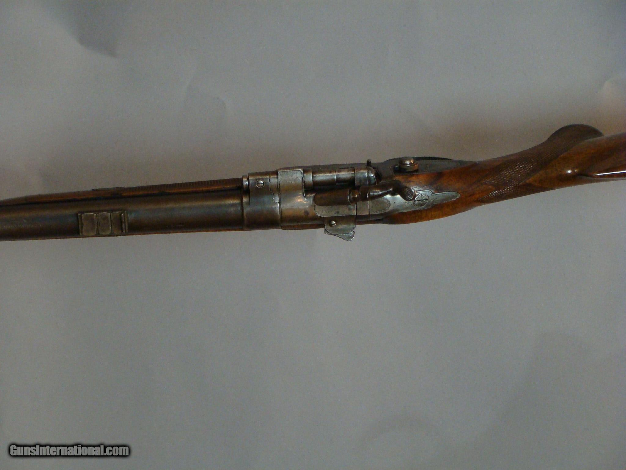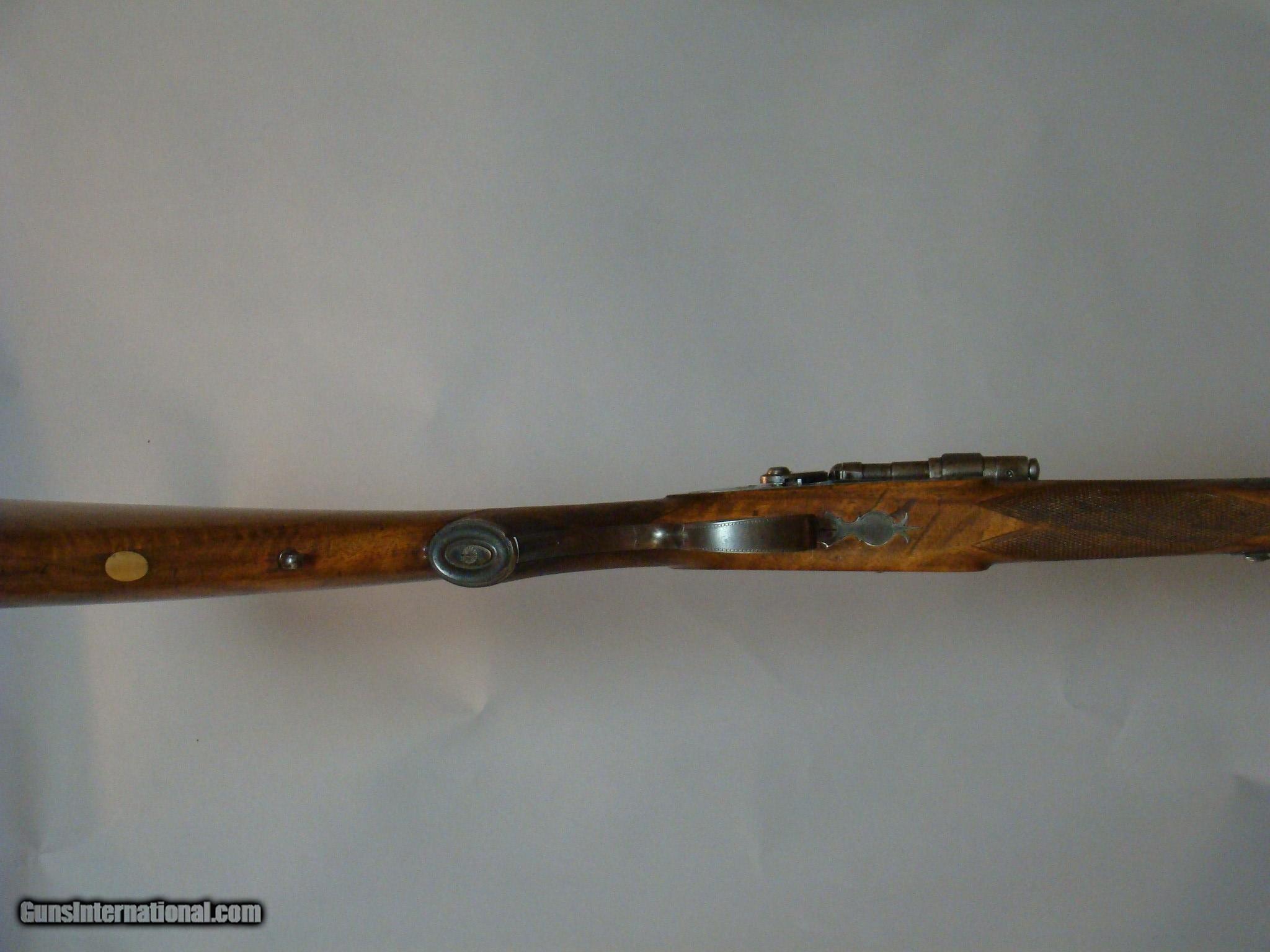Description: Very nice original sporting rifle, not a military conversion, very good bore with some light pitting in front of the chamber, light scroll engraving, bolted stalking safety, a very nice little gun in fine condition, some ammo, loads worked up. SOLD Antique: Yes |