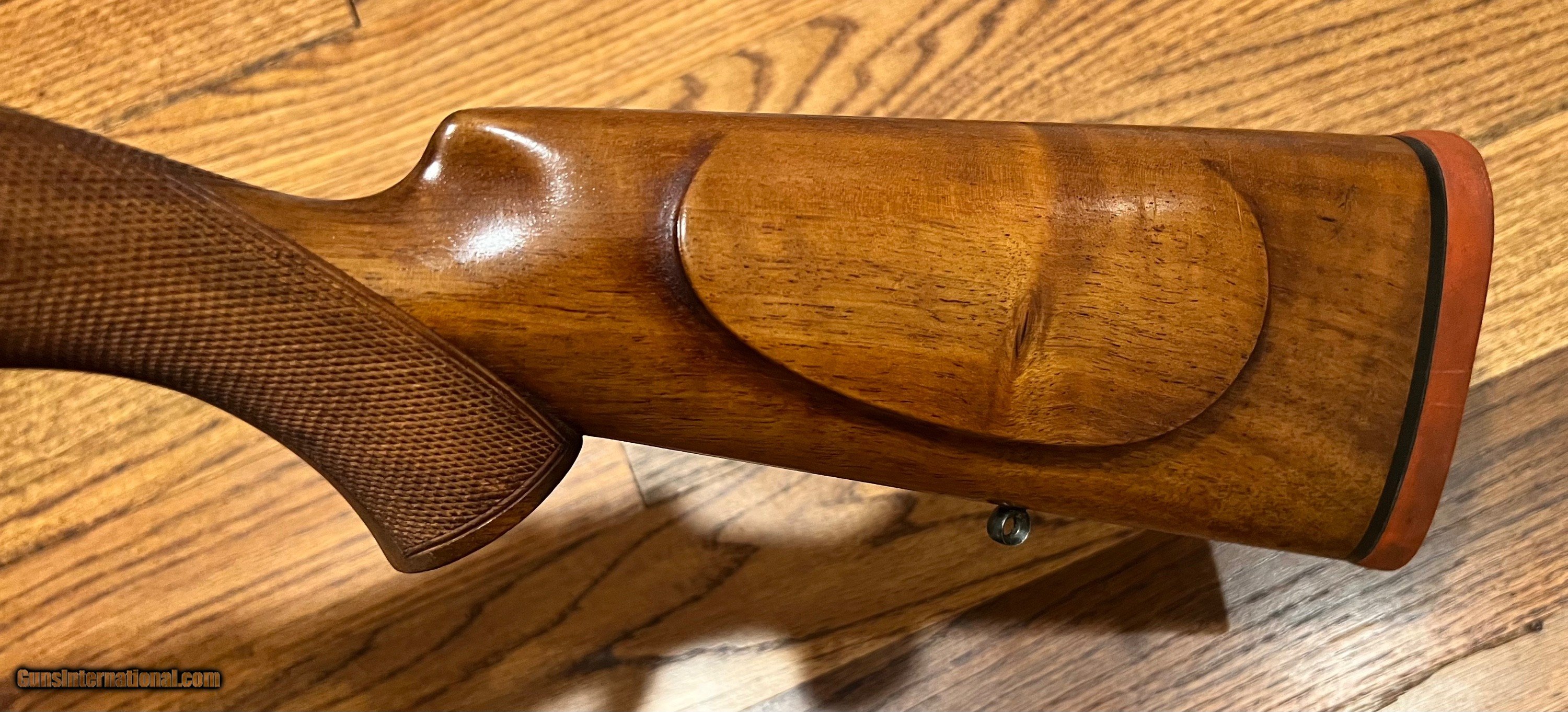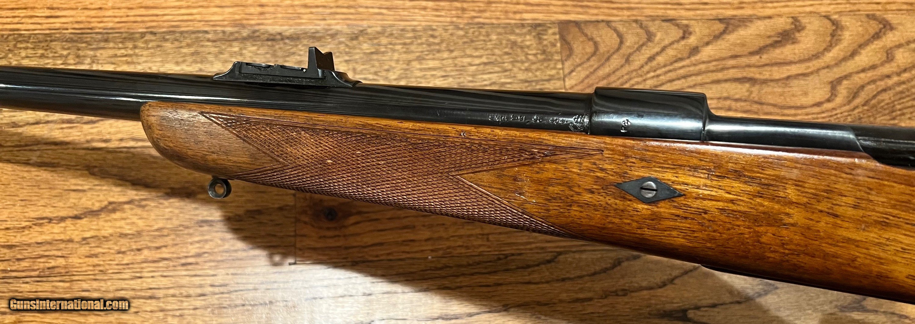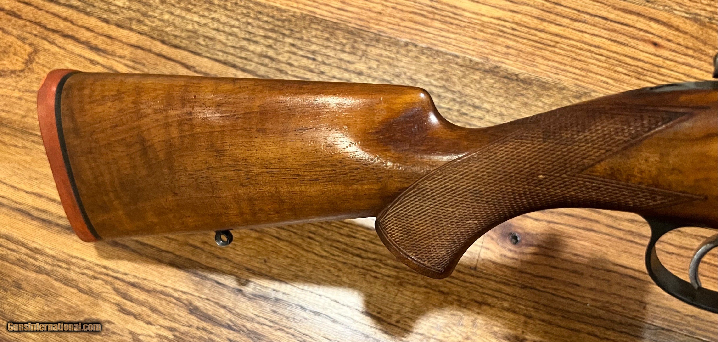 Description: Cogswell & Harrison 404 Jeffery Mauser action sporting rifle. 26" barrel with one folding and two standing express sights (100,200,300 yards) and ramp front sight with bead insert. Excellent as new bore Bolt face appears to be unfired Classic English express rifle stock with perfect checkering and minor storage marks. Original silvers pad in great condition Drop box magazine LOP 14 1/2 8lbs 3oz High quality London made English express rifle chambered in the classic 404 Jeffery, this rifle handles and points like a fine English shotgun. The rifle is in excellent condition and appears to be unfired with minor storage marks. SOLD Curio/Relic: Yes Rifle Caliber: .404 Jeffery |