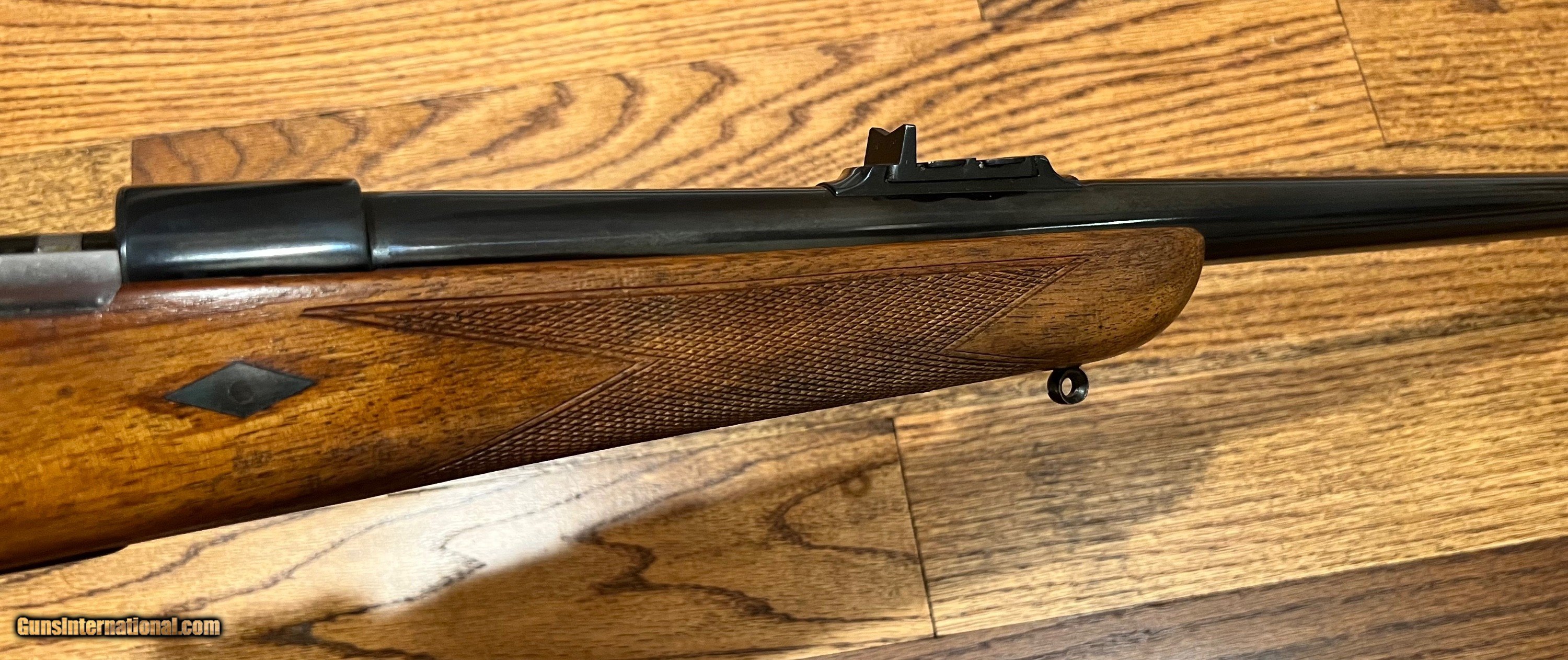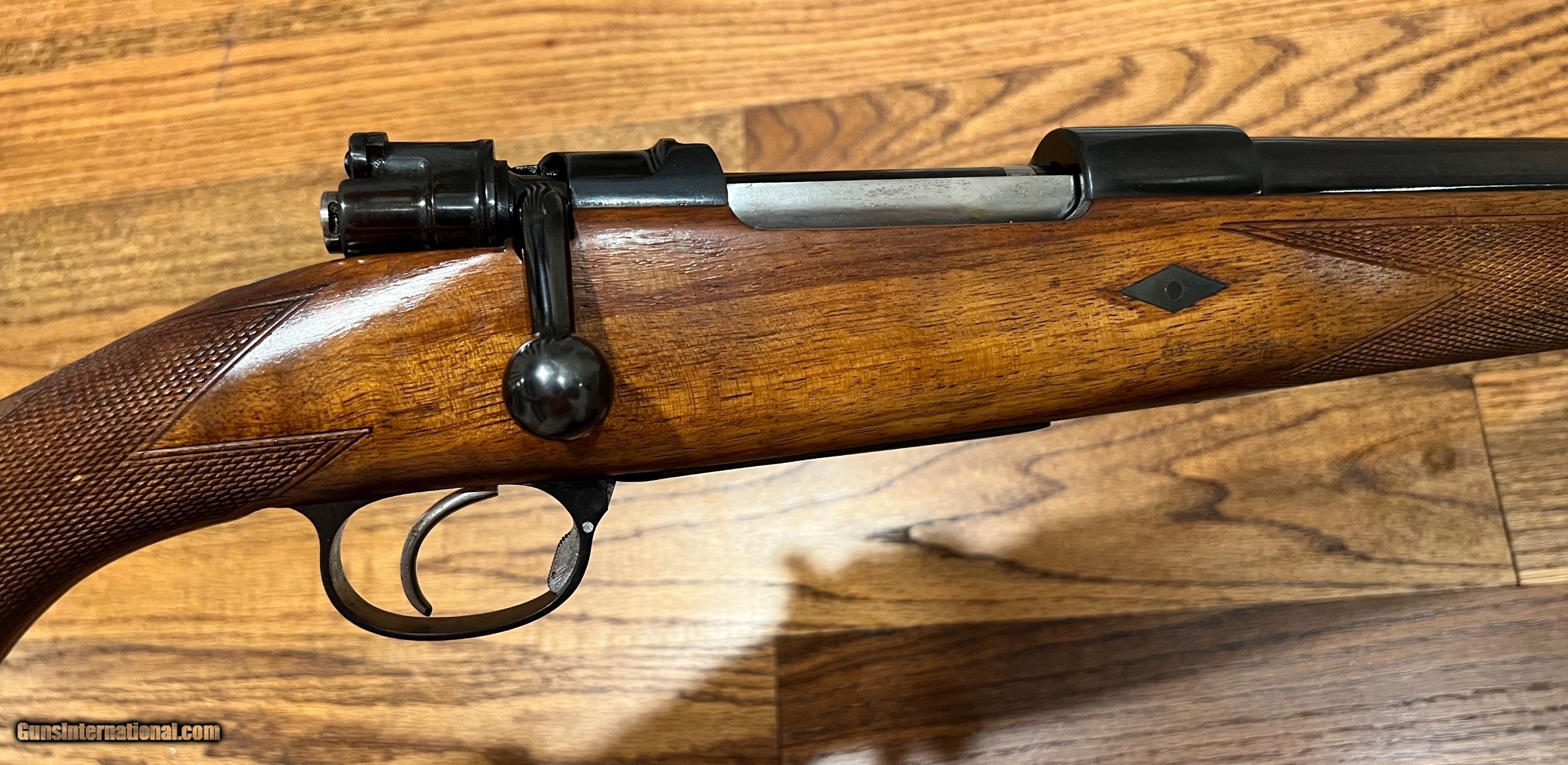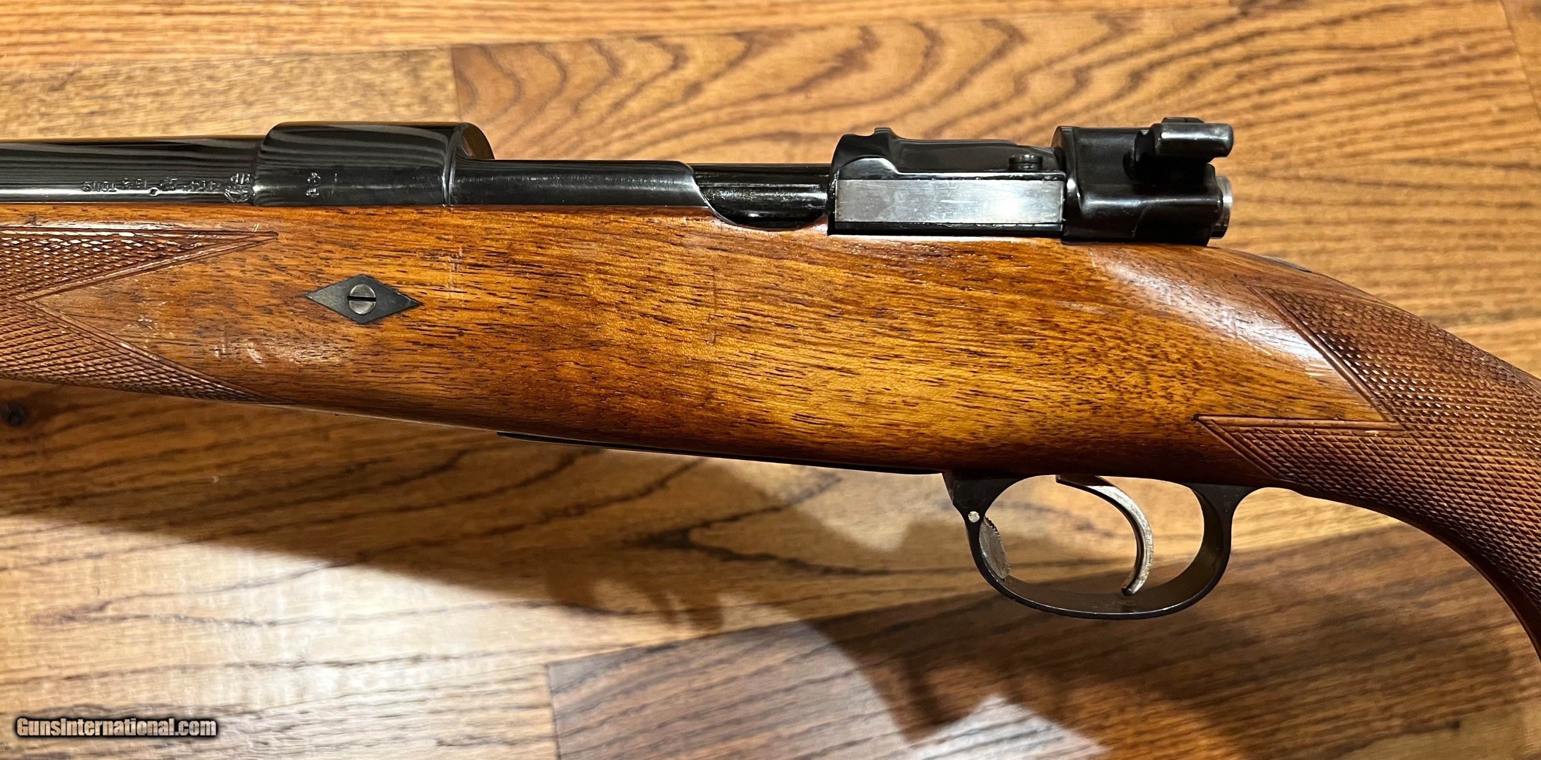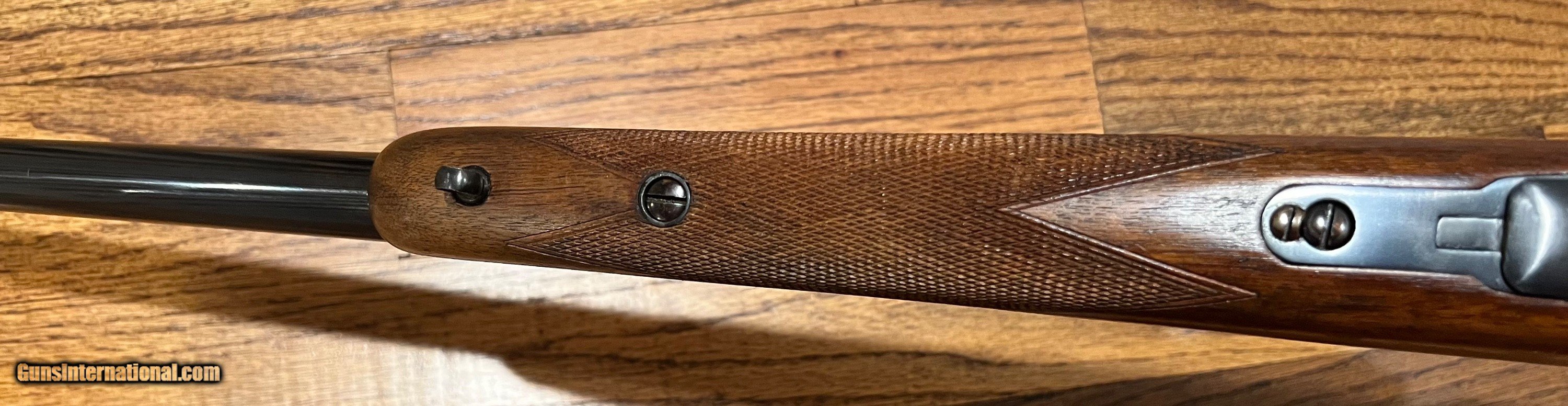 Description: Cogswell & Harrison 404 Jeffery Mauser action sporting rifle. 26" barrel with one folding and two standing express sights (100,200,300 yards) and ramp front sight with bead insert. Excellent as new bore Bolt face appears to be unfired Classic English express rifle stock with perfect checkering and minor storage marks. Original silvers pad in great condition Drop box magazine LOP 14 1/2 8lbs 3oz High quality London made English express rifle chambered in the classic 404 Jeffery, this rifle handles and points like a fine English shotgun. The rifle is in excellent condition and appears to be unfired with minor storage marks. SOLD Curio/Relic: Yes Rifle Caliber: .404 Jeffery |