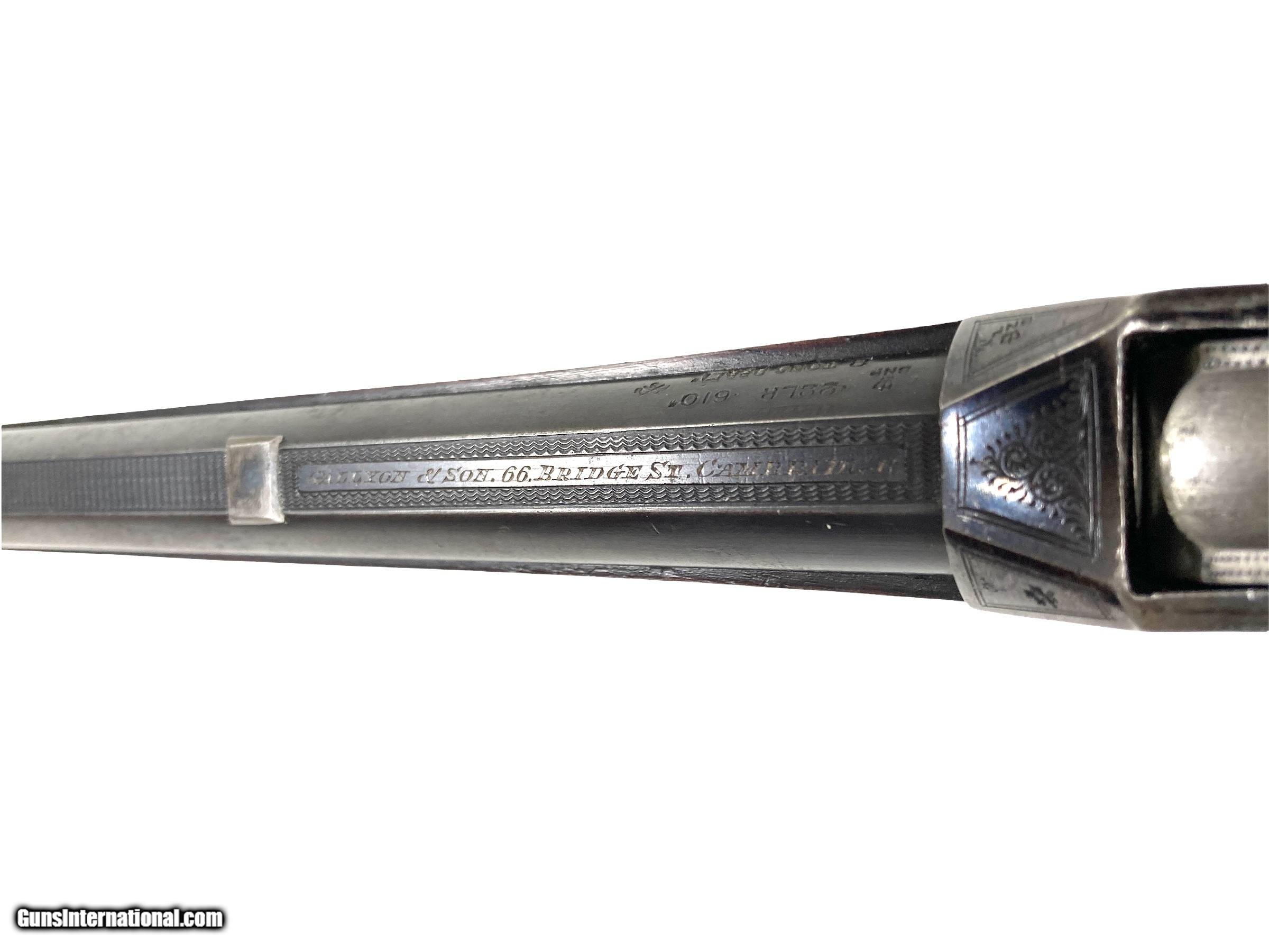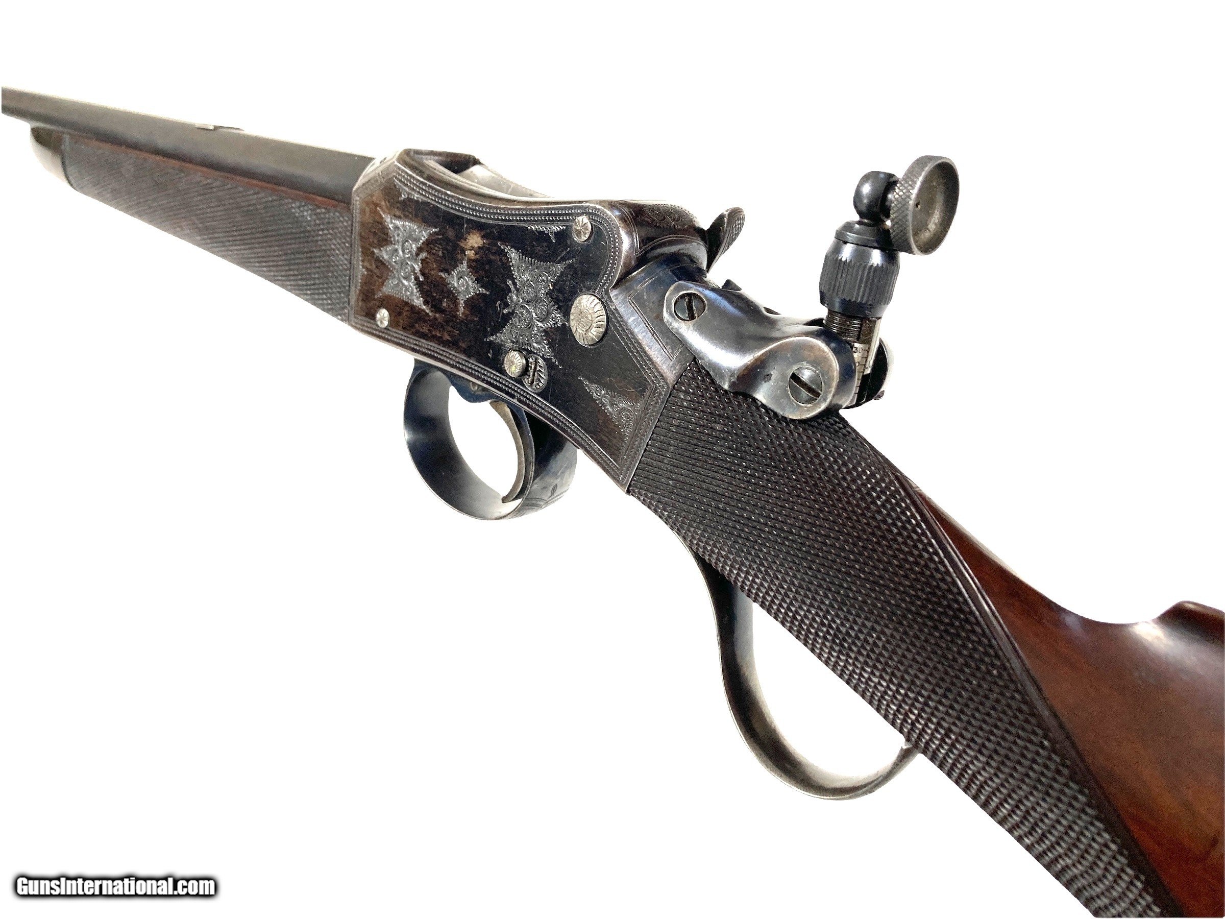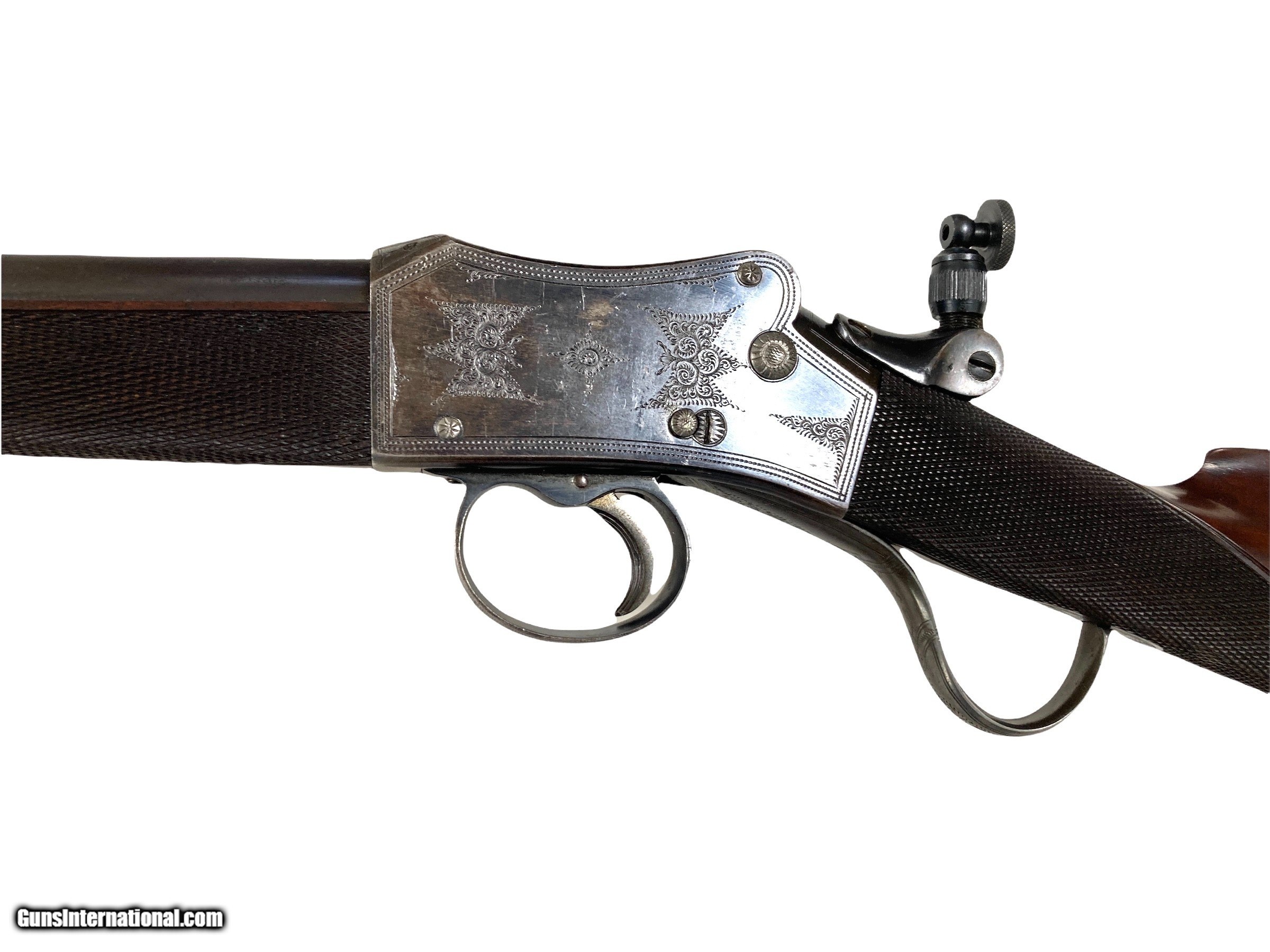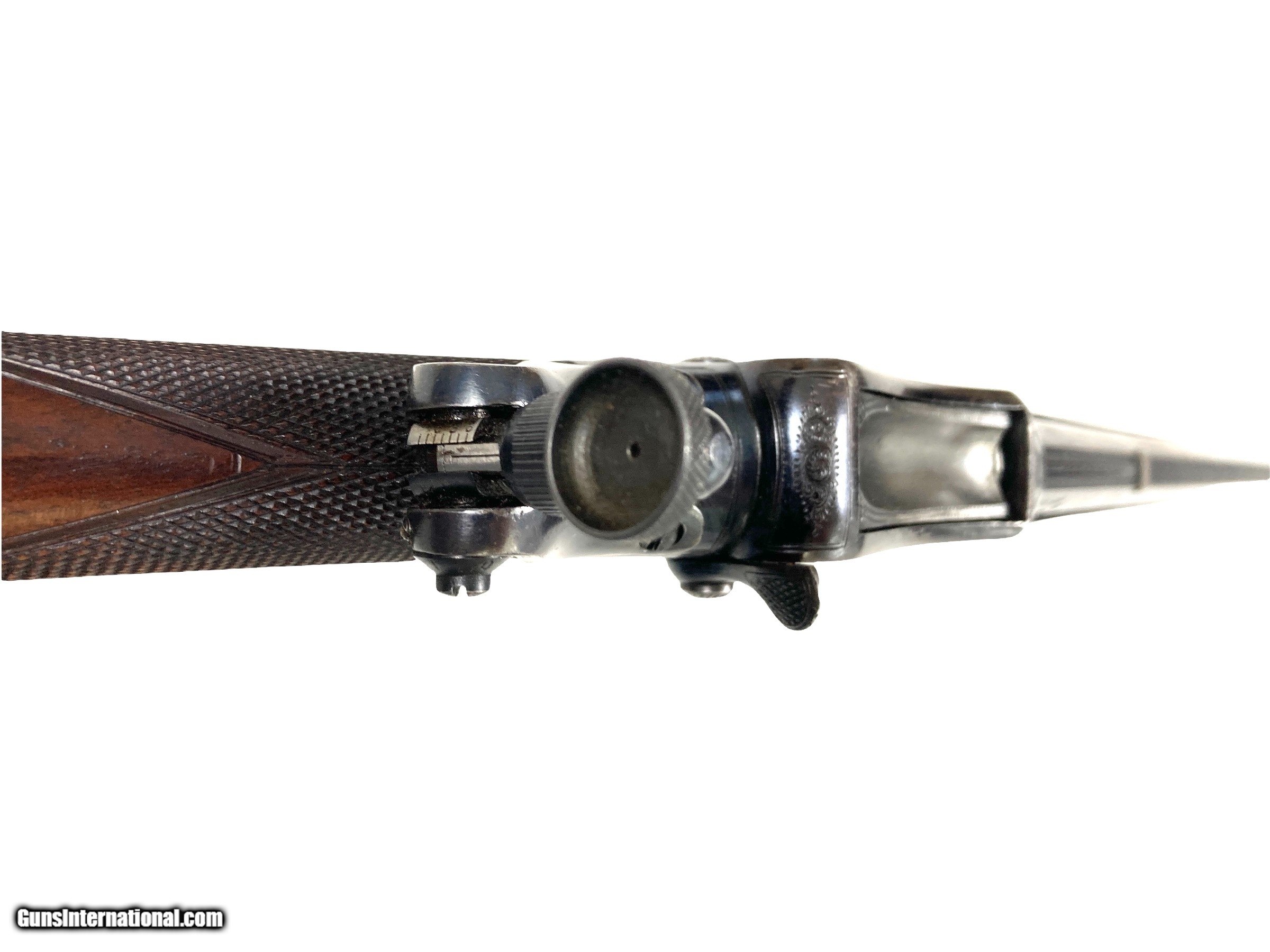 Description: Gallyon & Son .22lr martini sporting rifle 27" barrel with full length matted rib Adjustable rear peep with hooded front bead sight LOP 14 1/2 5lbs 11oz Rifle has beautiful border and scroll engraving Stunning accurate little martini .22 rifle SOLD Curio/Relic: Yes Rifle Caliber: .22 Long Rifle Condition: Very good/excellent Bore Condition: Excellent |