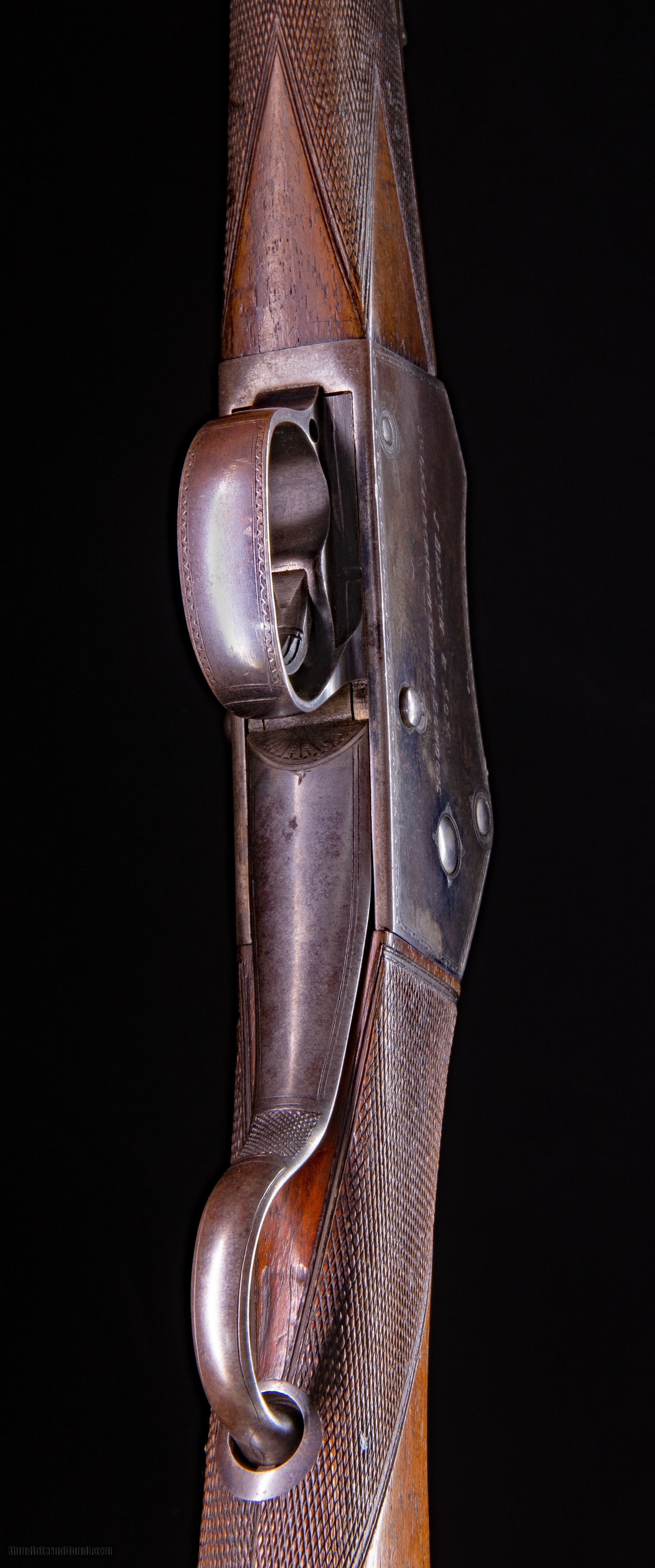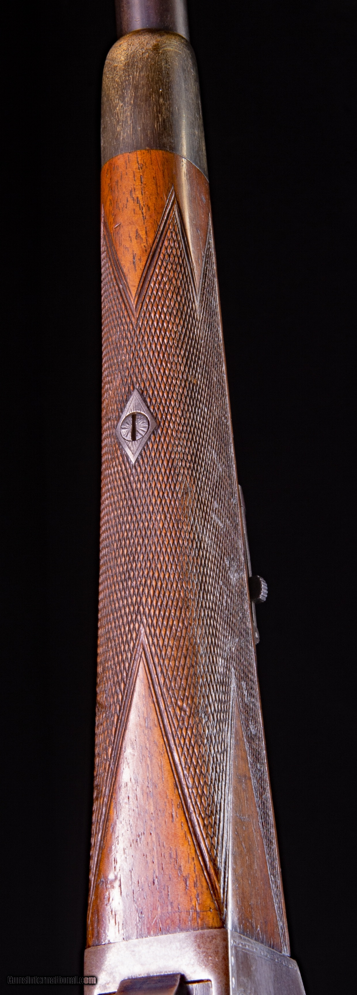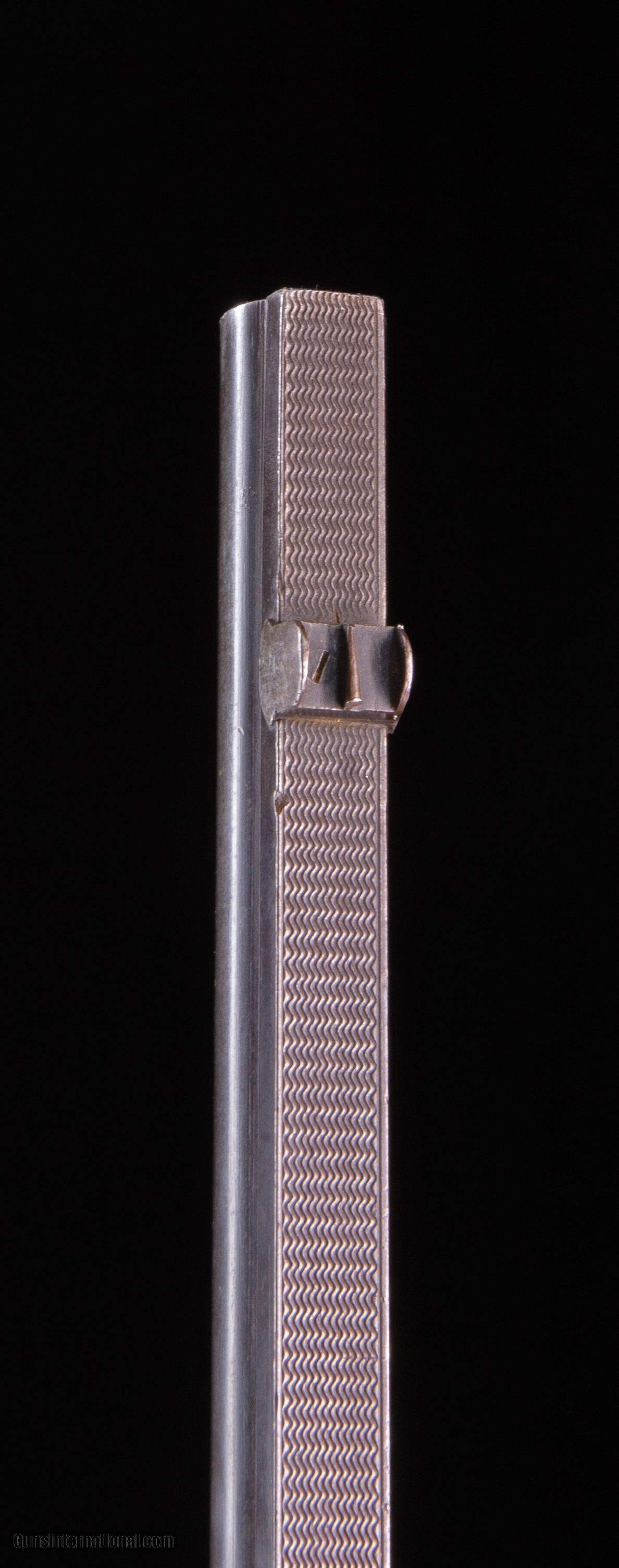 Description: Drillings, Double Rifles, and Rifles - A nice little British stalking rifle in a great caliber. The rifling is strong with some gray between the rifling. I shot this rifle, and it shot great! *** Note: To see this gun with high resolution photos and a zoom-in feature, go to the vintagedoubles main site and search for the gun ID: 5023 or browse the main site to see our full gun collection. SOLD Manufacturer: J Blanch & Son 303 single shot stalking rifle built before 1899 so can ship direct as it is antique Model: None Serial Number: 7418 Caliber Info: 303 British Ejectors: Yes Barrels: 23 1/2 Barrel Type: Steel Action: Martini style Gauge Info: Caliber LOP: 13 3/8 with steel bu Weight: 6lbs 13.5ozs Proof:Black: 303 Minimum Wall Thickness Left: NA Minimum Wall Thickness Right: NA |