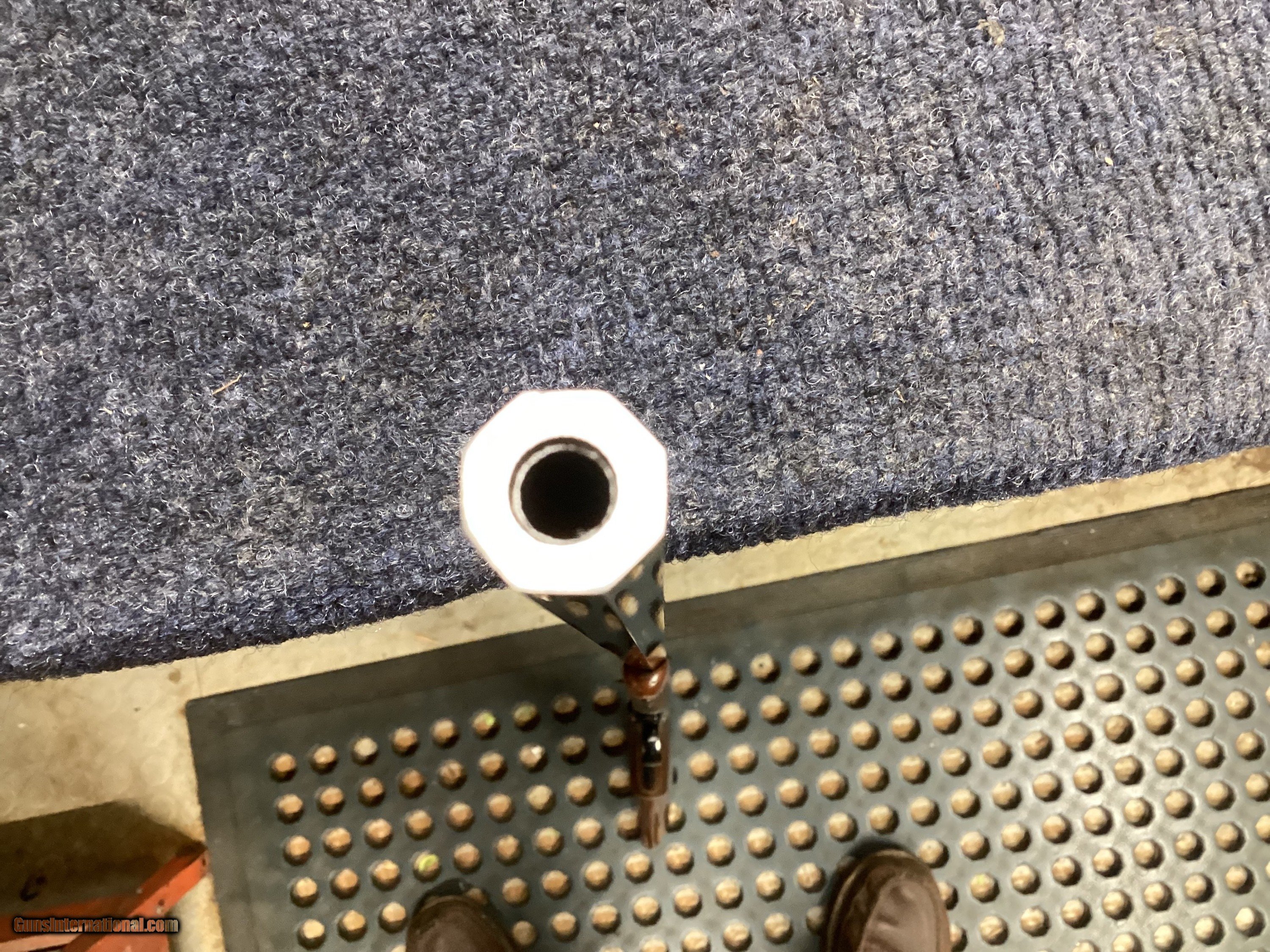 Description: James Burrow, 116 Fishergate, Preston, UK. Rook and Rabbit Rifle in .300 (.297) Rook. Rifle totally restored in the UK, and is externally perfect with only minor handling marks on the wood. I has a full octagonal, matted 26 inch barrel, with a standing rear sight and two elevation leafs. The bluing is near 100%, with case hardened pistol grip cap, and blued butt plate. Please note: shiney or white areas in the photos are reflections, not wear. It has a cartridge ejector, and tight crisp action. The bore is fair with corrosion foward the chamber, but good and shootable toward the muzzle. Please examine the photos to determine actual condition. Checks, or USPS money orders only accepted. Shipping will be $35.00. Please use email for contact. Antique: Yes Manufacturer: James Burrow Model: Rook Barrel Length: 26” Ejectors: yes Condition: Fine Metal Condition: Fine Wood Condition: Fine Bore Condition: good LOP: 14-1 Weight: 5lbs. 3oz. Manufacture Date: 1885-90 Price: $1,950.00 Shipping: $35.00 Contact Seller |