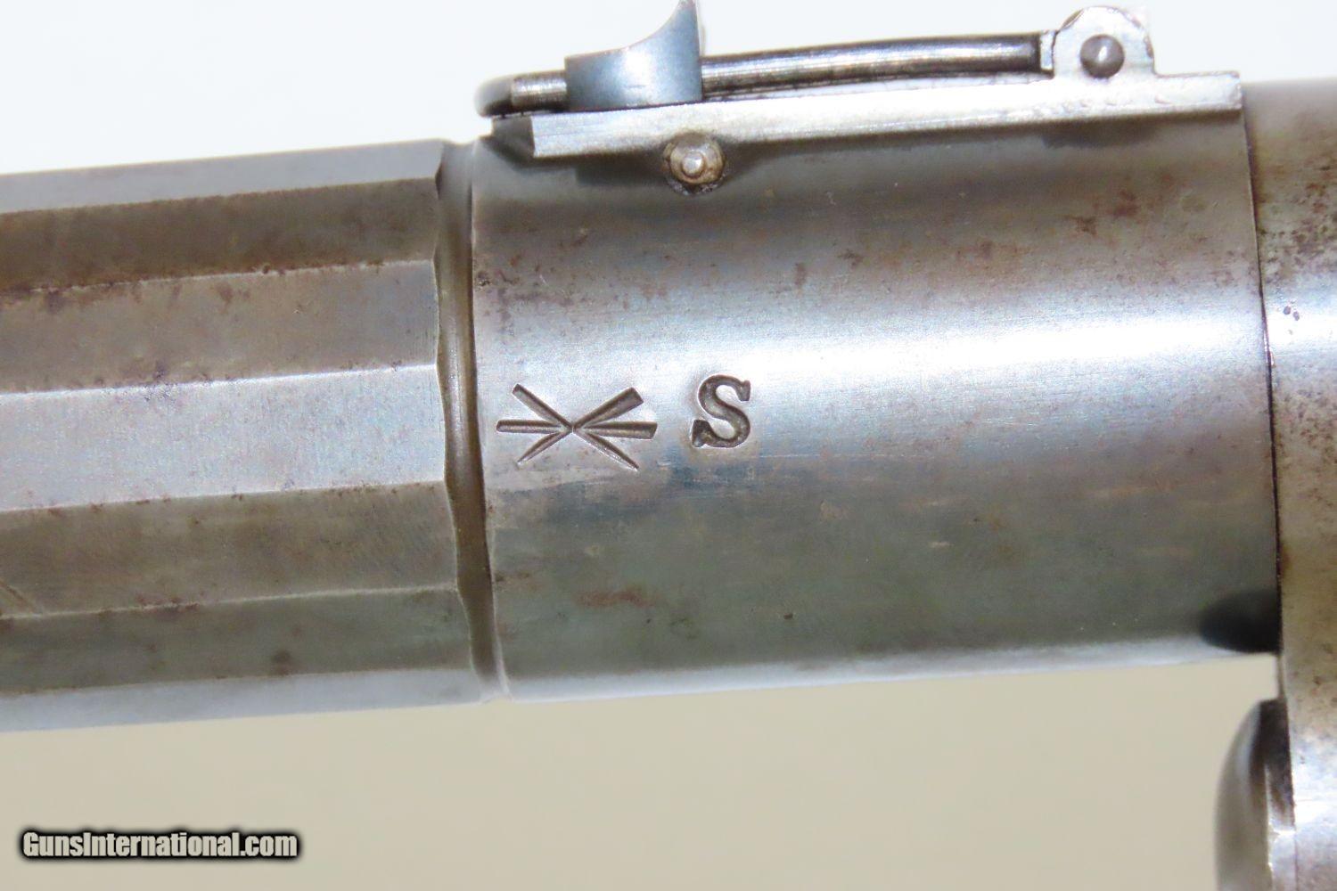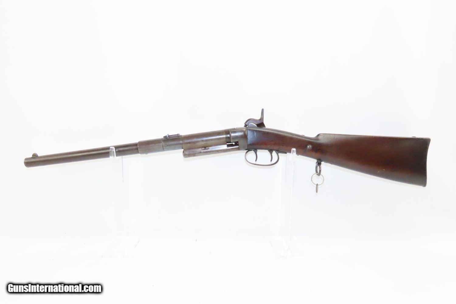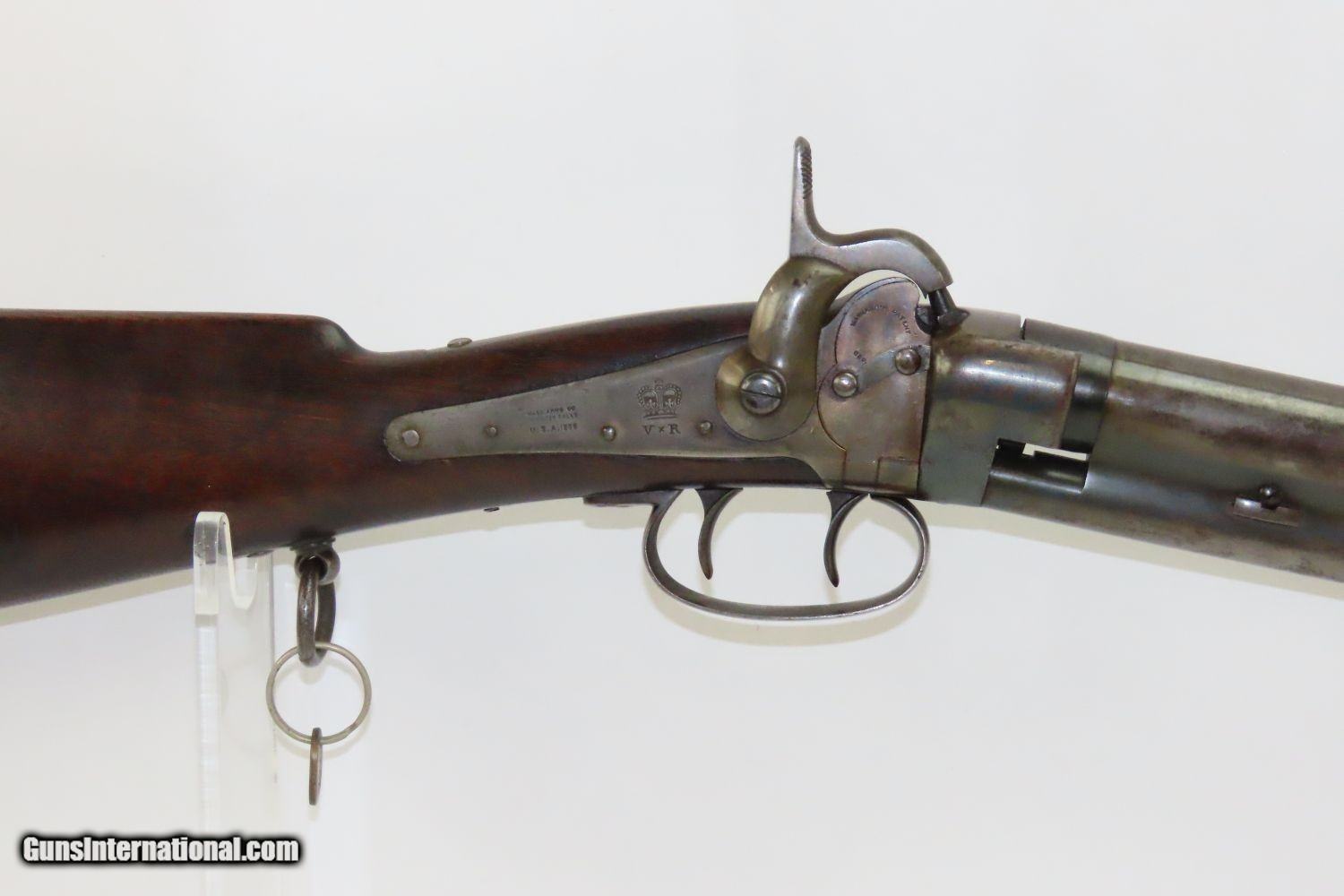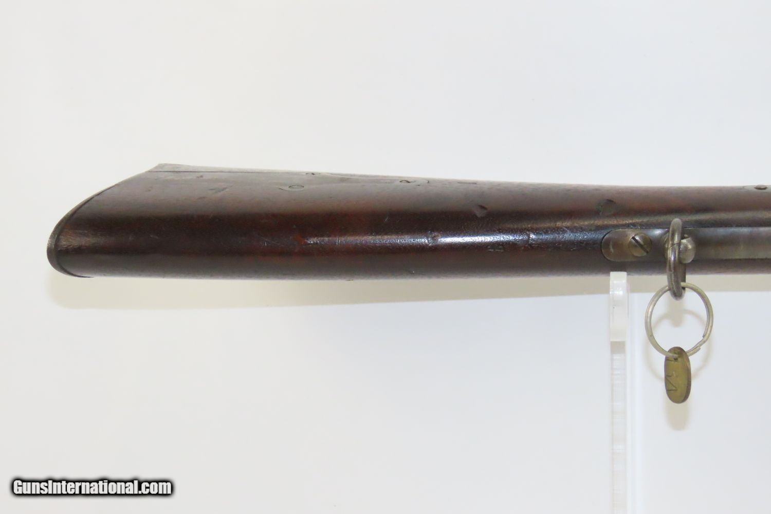 Description: Rare MASS. ARMS Co. British Contract GREENE PATENT Breech Loading CARBINE 1 of 2,000 Made for British Use in the CRIMEAN WAR! Here we present an antique Massachusetts Arms Co. British Contract Greene Patent Breech Loading Carbine manufactured circa the mid-1850s. The Greene Patent Carbine was produced in limited numbers for both the US and Britain. The U.S. purchased 200 rifles with 22-inch barrels for testing, but no further orders were made. Right around 2,000, and most of them were made to fill the British contract. These were not adopted and after the Crimean War, Britain appears to have surplussed these, and it is believed that many were sold back to the states during the American Civil War. These remain very scarce and hard to find. What makes this carbine so unique is the method of accessing the breech. There are 4 steps to open: 1) pull the front trigger, which unlocks the lugs so you can 2) rotate the lugs (using the 16-sided portion), 3) pull the barrel away from the breech, and 4) pivot the barrel assembly clockwise for easy access to load. This system is gorgeously machined and operates like glass. It is really a wonder of 1850s manufacturing. Combine this with the Maynard tape primer, which used a roll of paper percussion caps, and fed a new cap with each time the hammer is cocked, and you have a very technologically advanced piece of machinery. For the time, this would have been an excellent breech loading option. One can imagine that it may have been on the expensive end of a long list of various cavalry carbines of the period. The over condition is fine. Original blue finish. The action is excellent. The bore is bright with sharp rifling. All markings are clear. This is one of those rarities that always makes an impression. This is a solid carbine with a distinctive action! Own the original! This is a legitimate antique and not a reproduction. Barrel is 18 inches in length. Caliber: .577 Overall condition as seen in photos. Very Fast. Very Safe. FREE SHIPPING WORLDWIDE. Delivered directly to your door by express mail! Guaranteed AUTHENTIC & Includes CERTIFICATE OF AUTHENTICITY. ancestryguns $4250 #200880 SOLD Antique: Yes |