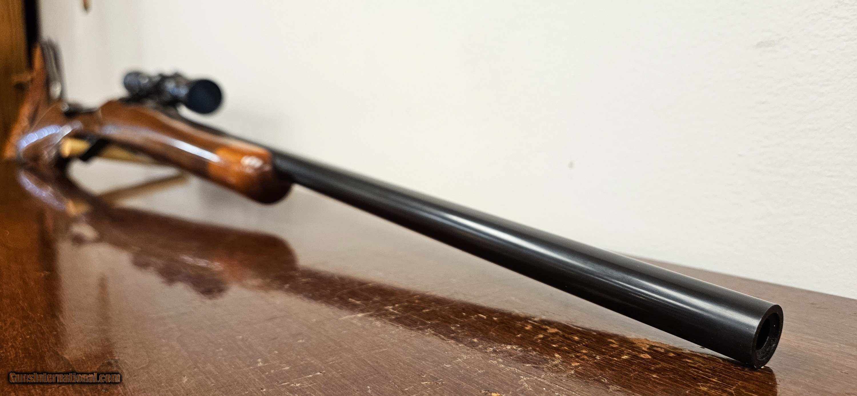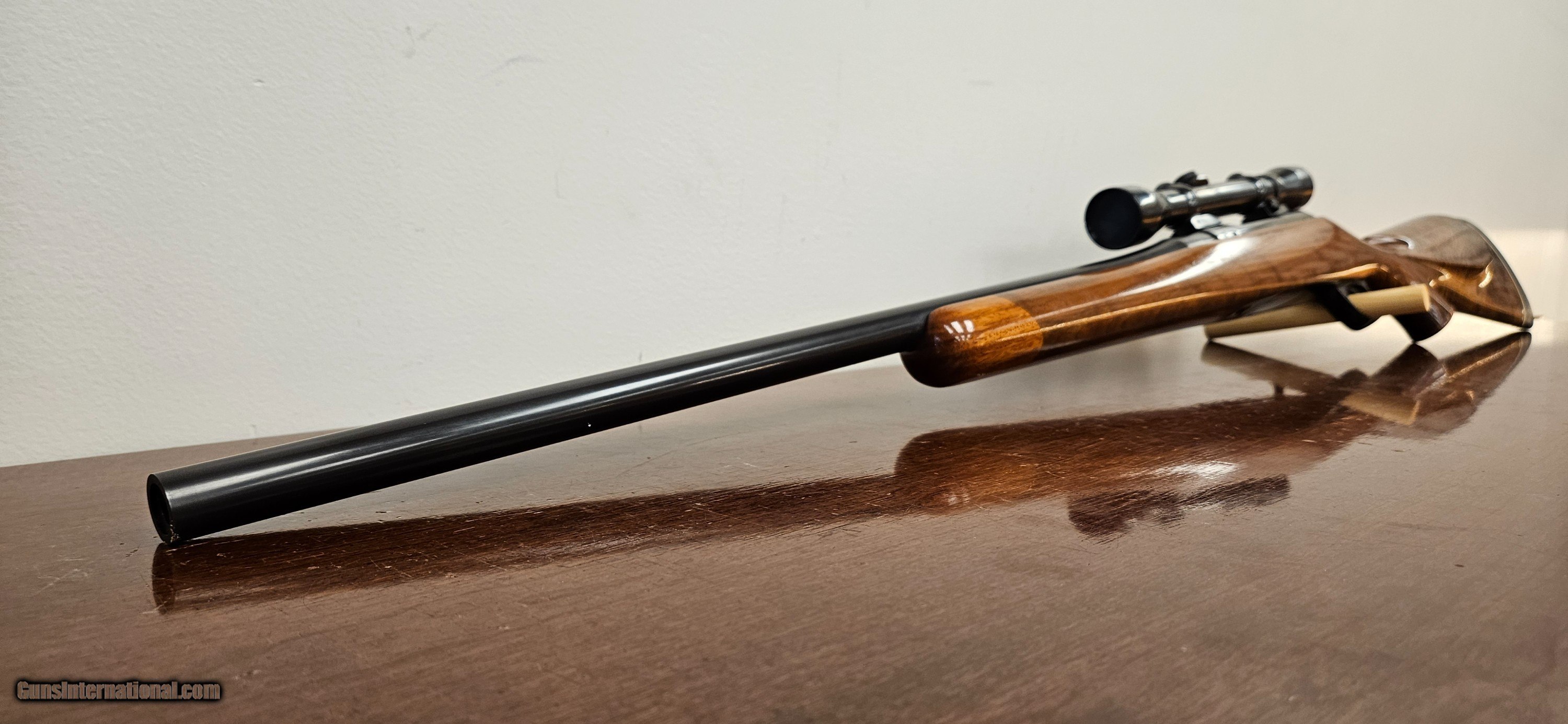 Description: Up for sale is an unknown manufacture English bolt action rifle chambered in .35 Whelen. Photographs #8 and #18 are the only markings on the entire rifle. 25" Barrel, very good bore. SOLD Rifle Caliber: .35 Whelen Manufacturer: England Barrel Length: 25 Bore Condition: Very Good Item Location: Lakewood, CO |