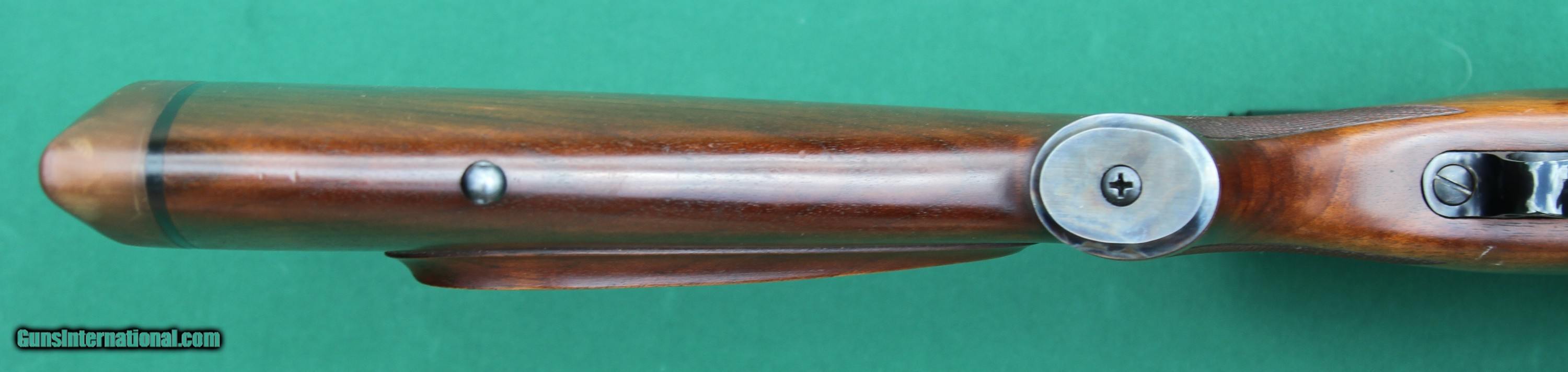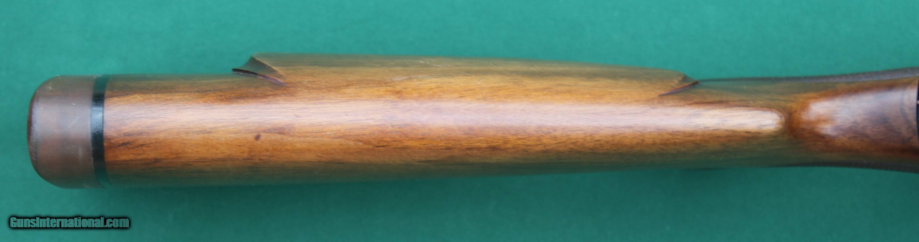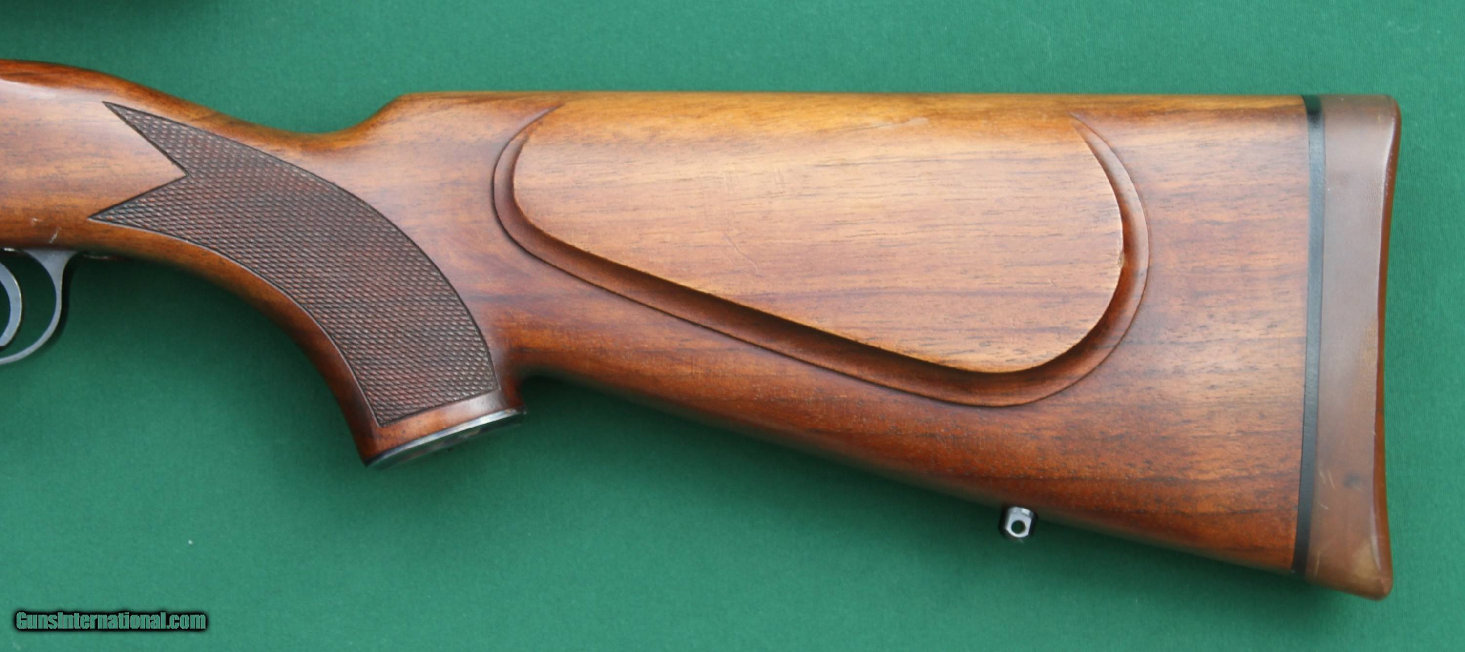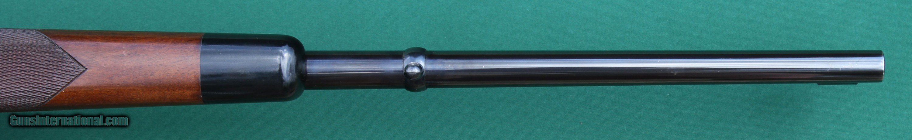 Description: Manufactured in Manchester, England, this Whitworth Safari grade, .375 H&H Magnum, bolt-action rifle with a 24-inch barrel, a European low-gloss walnut stock with shadow line cheek piece and an ebony forend, factory express rear sights (1-standing & 2-folding leaves) set for 100, 200 & 300 yards, a hooded front sight, a barrel band sling mount, case-colored grip cap, hinged floor plate, a rubber recoil pad, and a Leopold VX-3 4.5-14x40 mm scope. The overall weight of the gun is 9 pounds and 14.6 ounces. The length of pull is slightly under 14 inches. The year of manufacture of this gun is July 1985. There are no box, papers, or accessories with this rifle. The overall condition of this gun is 98+ percent, with a couple exceptions – the barrel bluing all around the front sight ramp appears have been subjected to heat (see last two photos). I believe the front sight ramp was replaced and the new one silver soldered onto the barrel. The heat required to solder the ramp in place was not enough to affect the metal of the barrel, though it would have affected the bluing. All affected areas are smooth to the touch. There are a few small scratches on the bottom of the barrel directly below the front sight and a small couple scratches on the hood of the front sight. The gun is on consignment with me. The owner inherited it some years ago, along with a couple other .375 magnums and a .416 magnum, from an old gunsmith who was probably the one who did the work on the front sight. The current owner has never even fired any of the rifles. He is also is not a gun guy and has no idea of this gun’s its history. Aside from the foregoing, the finishes on the rest of the metal and wood are very excellent. The bluing is near perfect, with no scratches, mars, blemishes, or other signs of wear. The receiver also is in very excellent condition with no scratches, mars, blemishes, or other signs of wear – 100 percent. The walnut stock and forearm also are in very excellent condition with a few very small line dents. Nowhere is the finish penetrated. The checkering on the stock and forearm are deep and crisp with no sign of wear – 100 percent. The butt plate is in excellent condition; it is supple and has no drying or cracking. The photos are high resolution, so zoom to see details. Contact me for additional photos of any area you would like to see or see better. The buyer pays $65 for USPS Priority mail and $34.35 for insurance. Virginia buyers must pay 5.3% sales tax. The fastest way to get this gun is to pay with USPS (U.S. Postal Service) money orders, as they are like cash. I will ship the revolver immediately upon receipt of a USPS money order and an FFL. I will also accept a personal check or other type money, as well as bank checks and cashier's checks, but I will hold the gun until it clears my bank; this includes bank checks and cashier’s checks. I do not accept credit cards, debit cards, or PayPal. Check or money order must be made out to Jerry Pownall or Barboursville Arms. If you wish to contact me, please "Email Seller". I will answer your questions, explain the purchase / transfer process, and provide my mailing address. I am available any time, except Friday evenings and Saturdays. I will return emails Saturday evening. SOLD Curio/Relic: Yes |