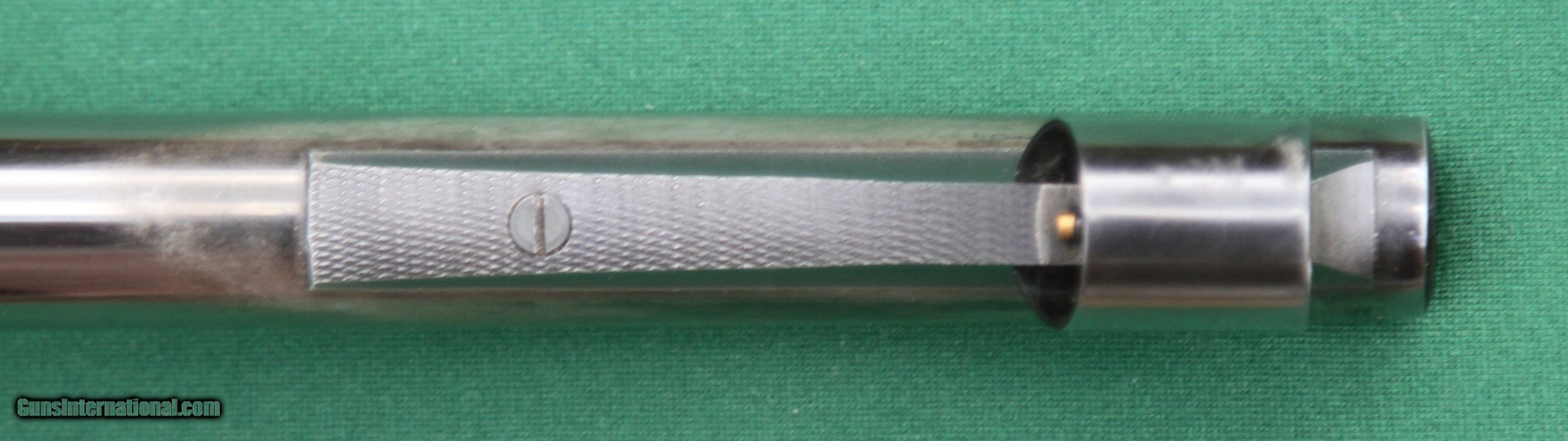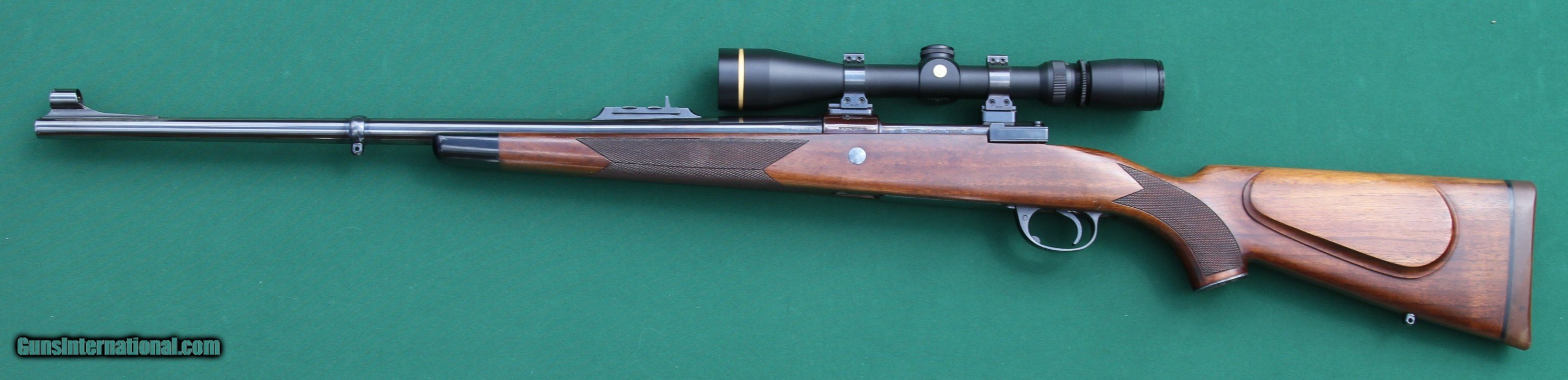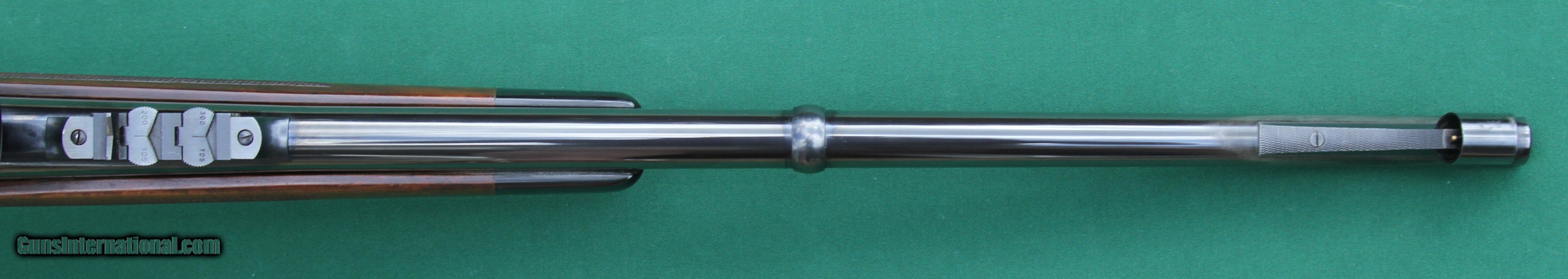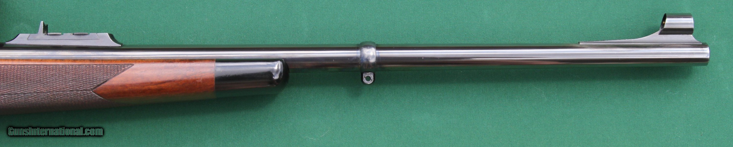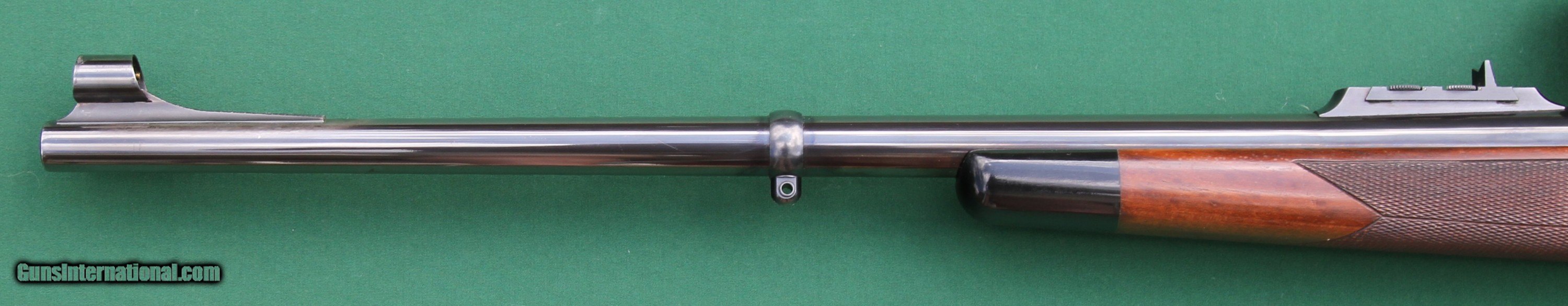 Description: Manufactured in Manchester, England, this Whitworth Safari grade, .375 H&H Magnum, bolt-action rifle with a 24-inch barrel, a European low-gloss walnut stock with shadow line cheek piece and an ebony forend, factory express rear sights (1-standing & 2-folding leaves) set for 100, 200 & 300 yards, a hooded front sight, a barrel band sling mount, case-colored grip cap, hinged floor plate, a rubber recoil pad, and a Leopold VX-3 4.5-14x40 mm scope. The overall weight of the gun is 9 pounds and 14.6 ounces. The length of pull is slightly under 14 inches. The year of manufacture of this gun is July 1985. There are no box, papers, or accessories with this rifle. The overall condition of this gun is 98+ percent, with a couple exceptions – the barrel bluing all around the front sight ramp appears have been subjected to heat (see last two photos). I believe the front sight ramp was replaced and the new one silver soldered onto the barrel. The heat required to solder the ramp in place was not enough to affect the metal of the barrel, though it would have affected the bluing. All affected areas are smooth to the touch. There are a few small scratches on the bottom of the barrel directly below the front sight and a small couple scratches on the hood of the front sight. The gun is on consignment with me. The owner inherited it some years ago, along with a couple other .375 magnums and a .416 magnum, from an old gunsmith who was probably the one who did the work on the front sight. The current owner has never even fired any of the rifles. He is also is not a gun guy and has no idea of this gun’s its history. Aside from the foregoing, the finishes on the rest of the metal and wood are very excellent. The bluing is near perfect, with no scratches, mars, blemishes, or other signs of wear. The receiver also is in very excellent condition with no scratches, mars, blemishes, or other signs of wear – 100 percent. The walnut stock and forearm also are in very excellent condition with a few very small line dents. Nowhere is the finish penetrated. The checkering on the stock and forearm are deep and crisp with no sign of wear – 100 percent. The butt plate is in excellent condition; it is supple and has no drying or cracking. The photos are high resolution, so zoom to see details. Contact me for additional photos of any area you would like to see or see better. The buyer pays $65 for USPS Priority mail and $34.35 for insurance. Virginia buyers must pay 5.3% sales tax. The fastest way to get this gun is to pay with USPS (U.S. Postal Service) money orders, as they are like cash. I will ship the revolver immediately upon receipt of a USPS money order and an FFL. I will also accept a personal check or other type money, as well as bank checks and cashier's checks, but I will hold the gun until it clears my bank; this includes bank checks and cashier’s checks. I do not accept credit cards, debit cards, or PayPal. Check or money order must be made out to Jerry Pownall or Barboursville Arms. If you wish to contact me, please "Email Seller". I will answer your questions, explain the purchase / transfer process, and provide my mailing address. I am available any time, except Friday evenings and Saturdays. I will return emails Saturday evening. SOLD Curio/Relic: Yes |