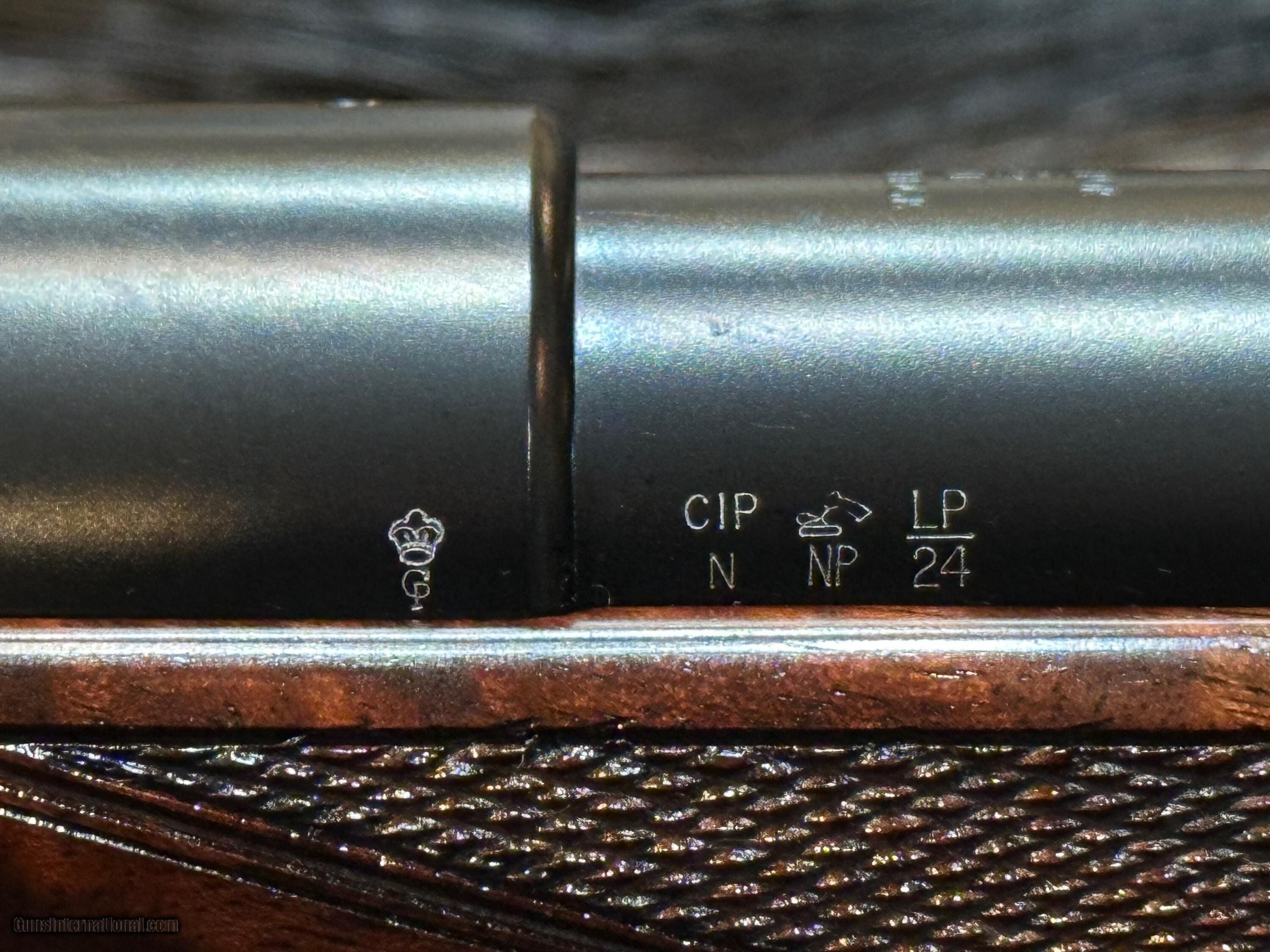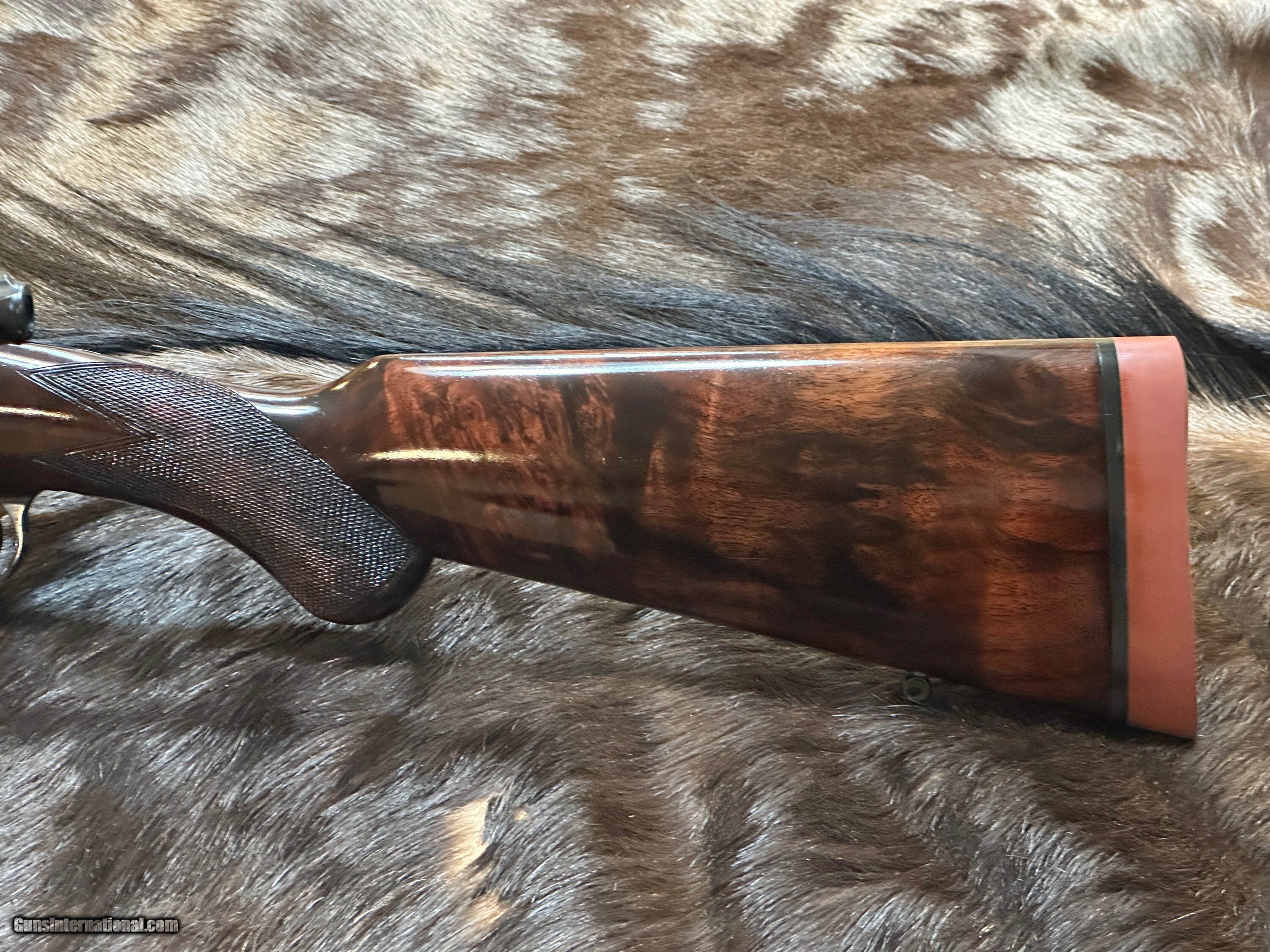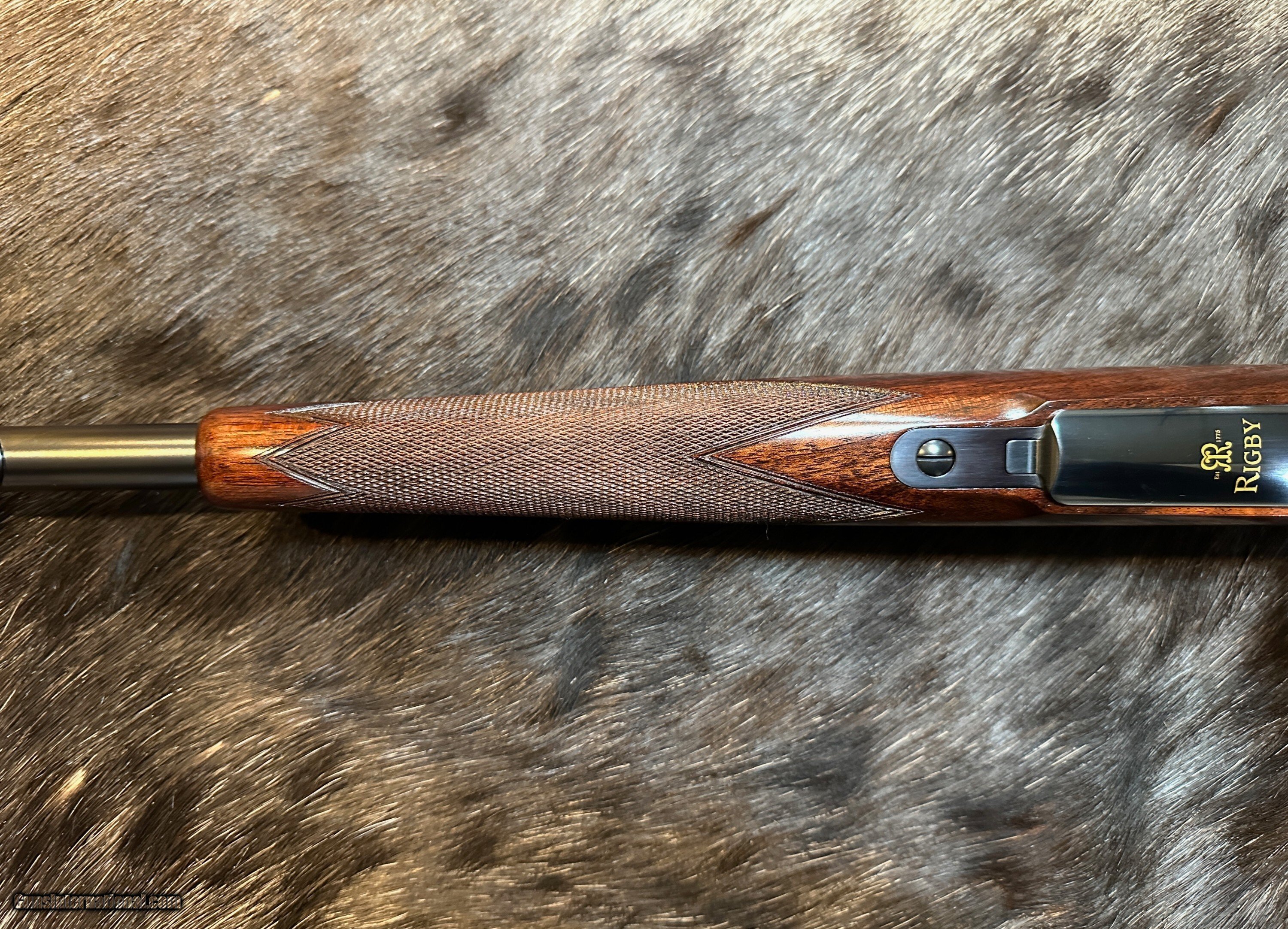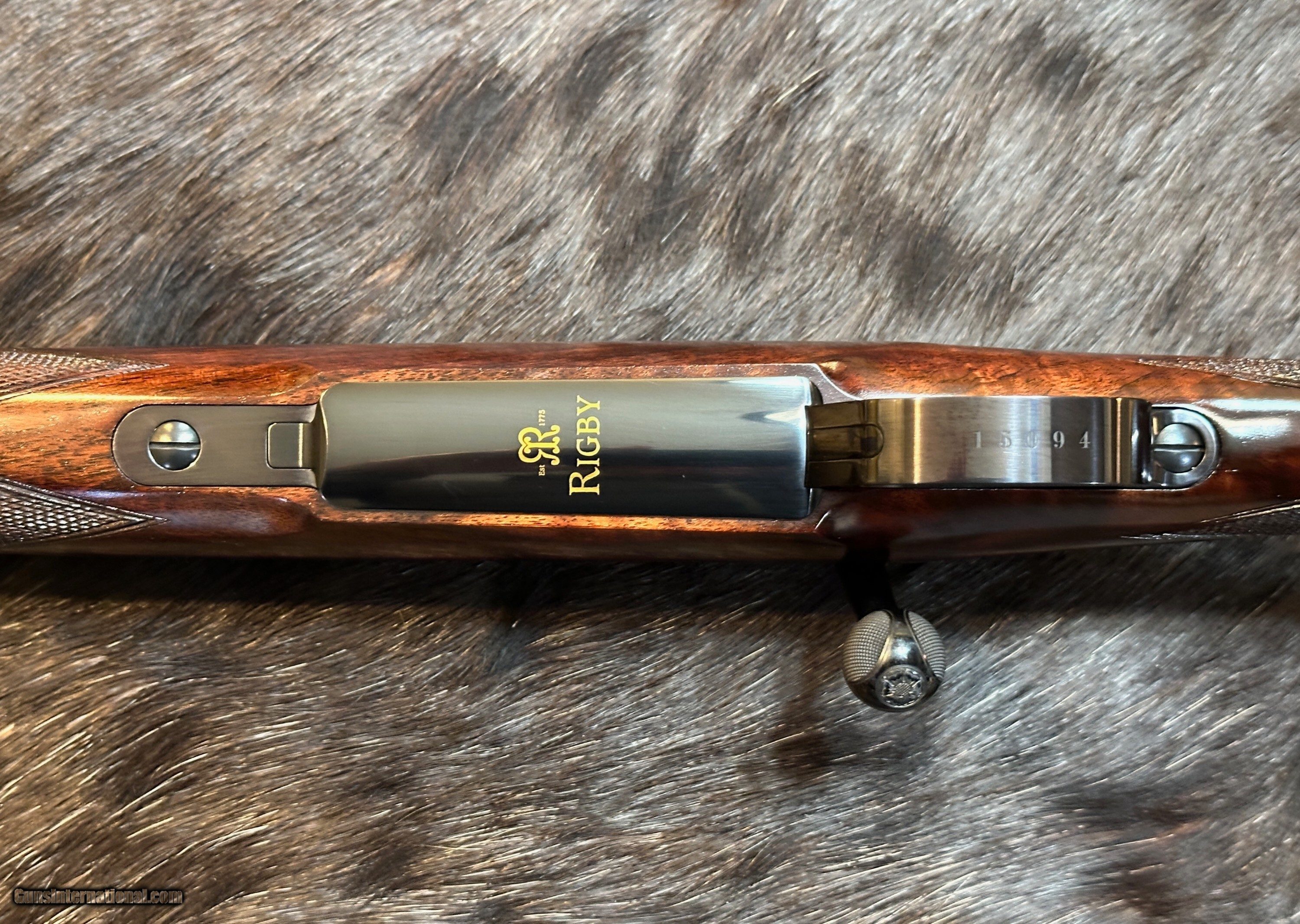 NEW JOHN RIGBY OF LONDON, HIGHLAND STALKER 275 RIGBY, MAUSER 98 BARRELED ACTION GRADE 9 WOOD, CHECKERED BOLT, GOLD DOUBLE R, RIGBY - LAYAWAY AVAILABLE