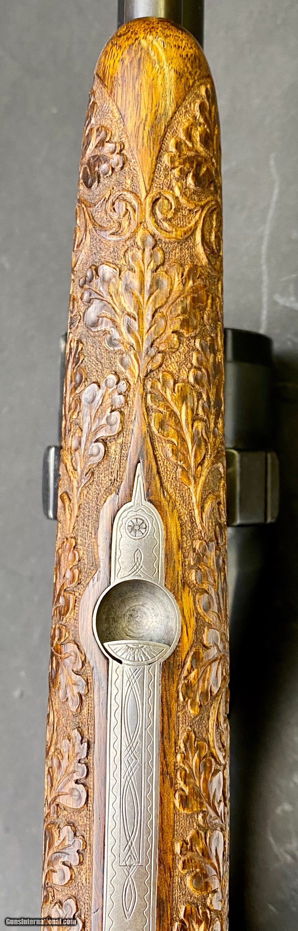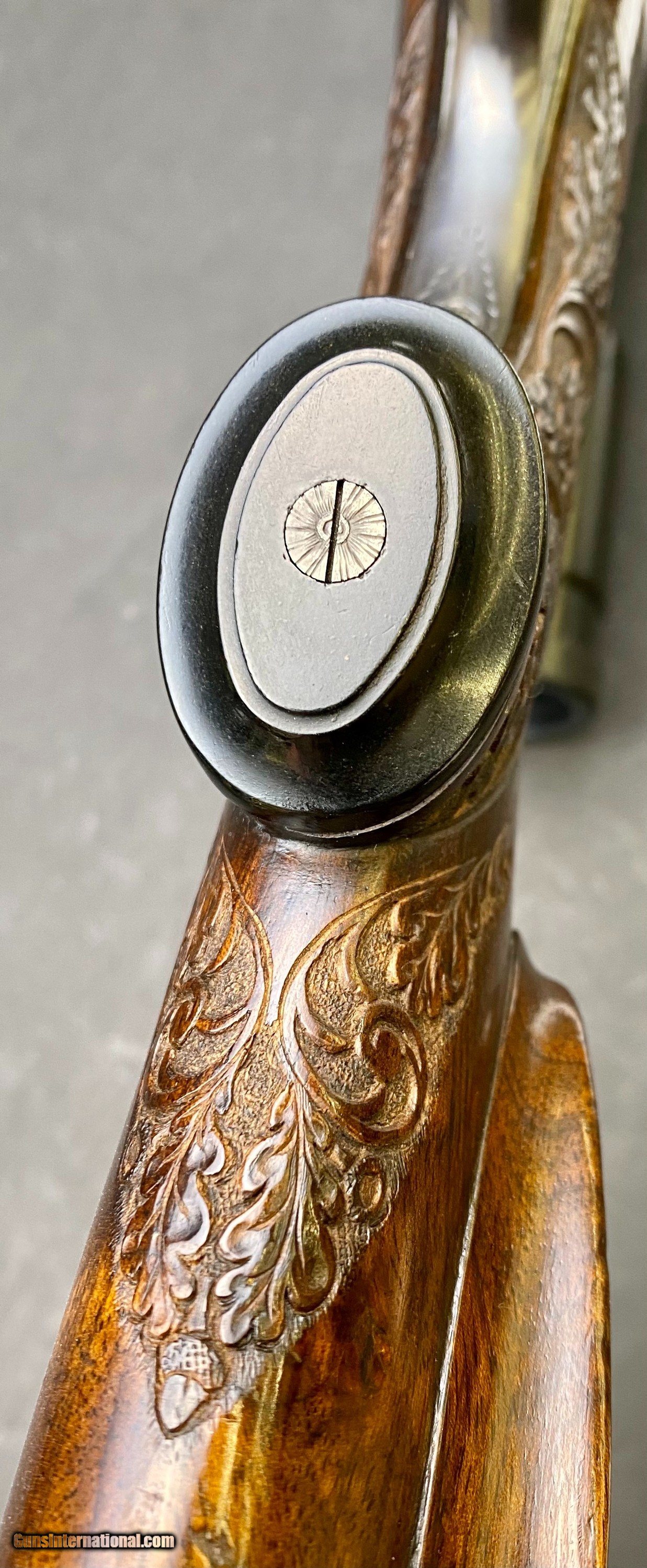 BEAUTIFUL JOHANN MICHELITSCH COMBINATION GUN - STUNNING CARVED STOCK - 12GA X 8X57 W/ KAHLES SCOPE