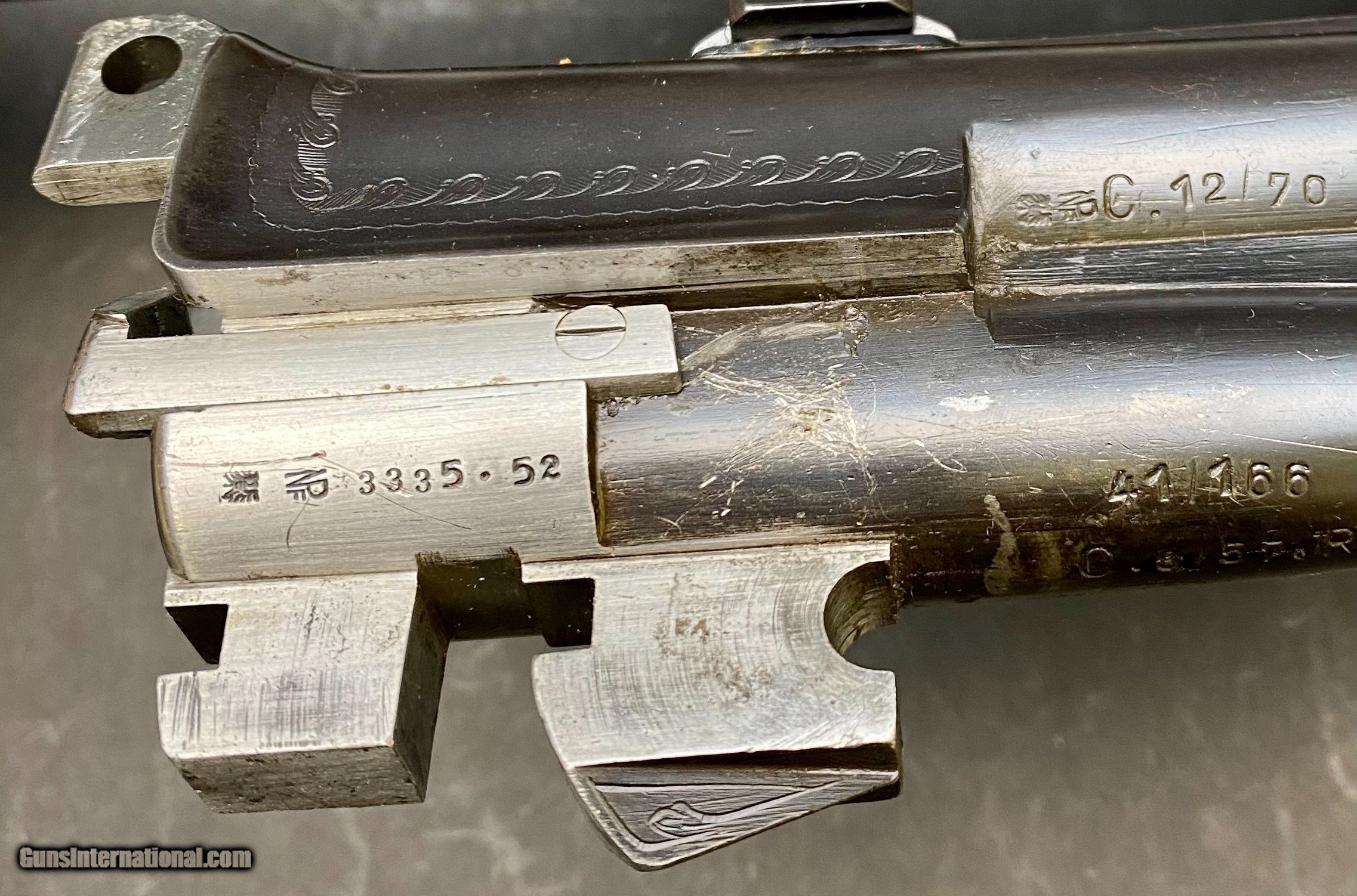Description: JOHANN MICHELITSCH - AUSTRIA MADE 1952 COMBINATION GUN - 12GA/70MM X 8X57 JRS 23 1/2" BBL W/ MANUAL POP-UP REAR SIGHT - EXTRACTORS KAHLES 6X56 SCOPE W/ POST & CROSSHAIR ON DETACHABLE SWING MOUNTS STUNNING DEEP CARVED EUROPEAN WALNUT CHEEKPIECE STOCK W. PAD 14 1/2" LOP GAME SCENE ENGRAVED BOXLOCK DOUBLE CROSSBOLT ACTION W/ ADJUSTABLE TRIGGERS WEIGHT: 6.6# / 8.2# W/ SCOPE CONDITION: GUN IS IN EXCELLENT OVERALL CONDITION. BORES CLEAR. MECHANICALLY FINE. WOOD SHOWS LIGHT MISCELLANEOUS HANDLING MARKS. OPTICS CRYSTAL CLEAR. GENTLEMEN, THIS IS A BEAUTIFUL COMBINATION GUN IN GREAT NORTH AMERICAN CALIBERS. PLEASE CALL NOW! BUYER TO PAY $50 S/H/I - SHIPS FEDEX GROUND. 4% CREDIT CARDF FEE SOLD Rifle Caliber: 8x57mm JS Shotgun Gauge: 12 Gauge Manufacturer: MICHELITSCH Model: COMBO Serial Number: 41/166 Condition: EXCELLENT Metal Condition: EXCELLENT Wood Condition: EXCELLENT Bore Condition: EXCELLENT Manufacture Date: 1952 Proof:Nitro: YES |