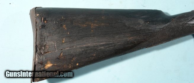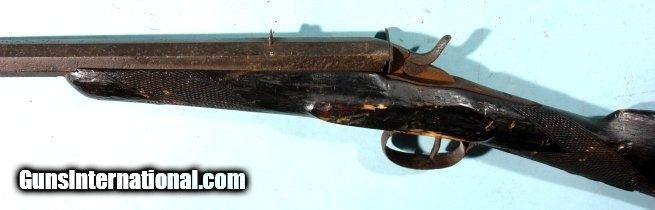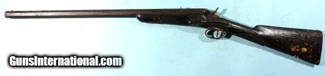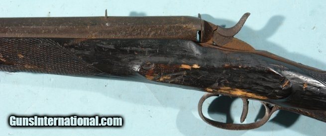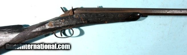 Description: BELGIAN FLOBERT ROLLING BLOCK 5MM RIMFIRE SINGLE SHOT RIFLE CA. 1880’S. 24” octagon barrel. Old dark patinated and pitted metal and stock weathered and heavily worn. Original sights and lock in working order. Dark bore. Colorful wall hanger. SOLD Antique: Yes |
