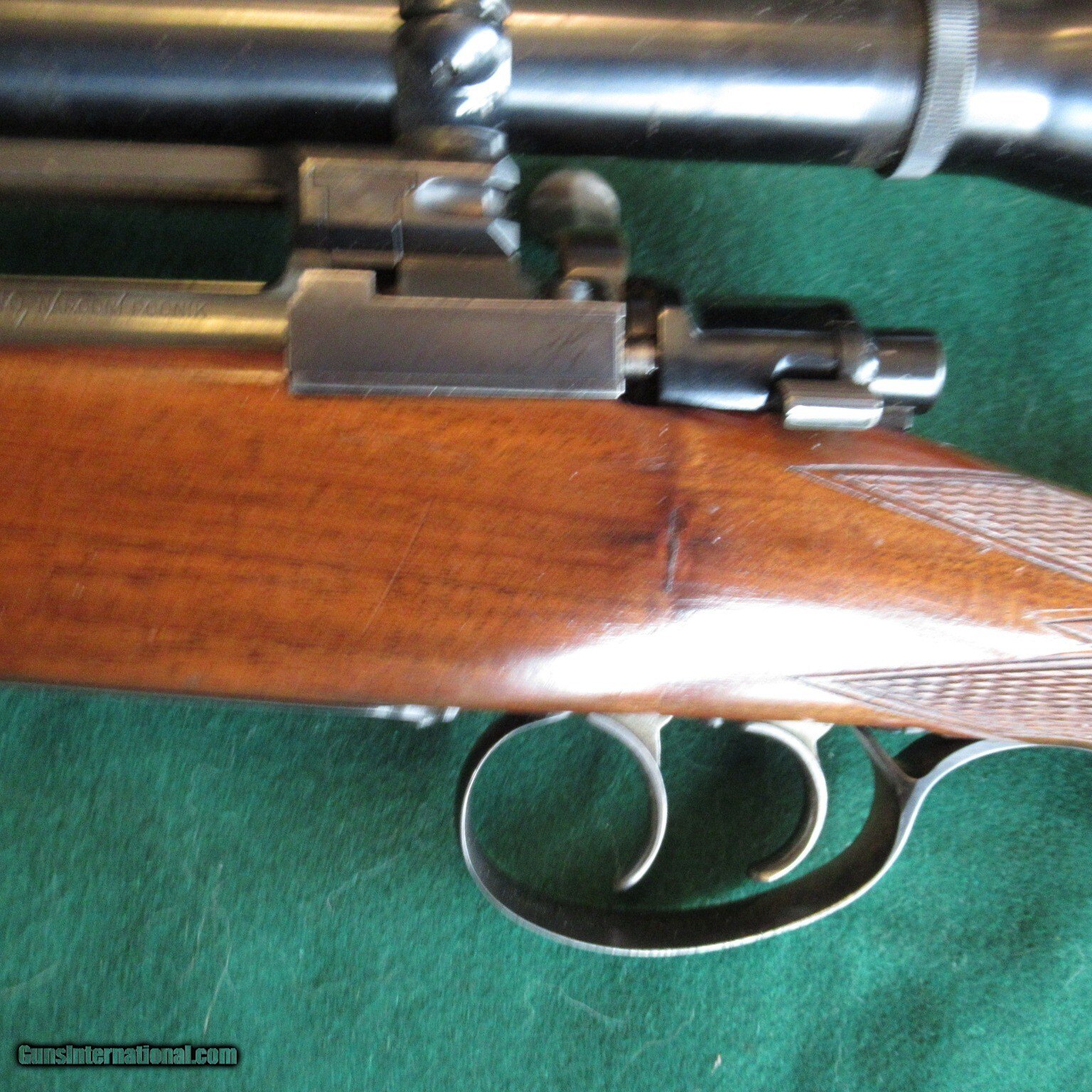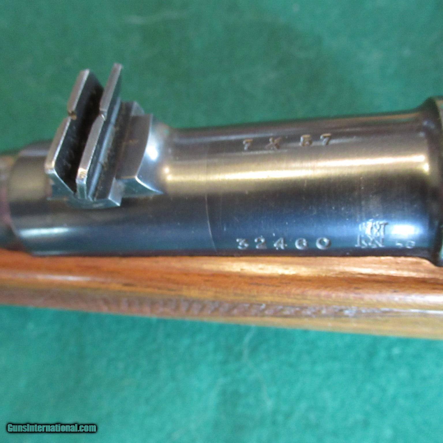 Description: BRNO Model 21, built in 1950 in 7mm Mauser. Small ring Mauser action with 23.5" barrel. 98% blue with some wear on spoon bolt handle and floorplate. Double square bridge with 20mm dovetail scope mounts. The scope is a steel tube Weaver K3 in excellent shape. Post and crosshair reticle similar to a German #1. Sharp, clear glass. All the metal is in excellent shape with a very smooth action. European Walnut stock with sharp checkering on the grip and forend. Please call Raff at 760 497 7836 if you have any questions and Thank you for looking SALE PENDING. THANK YOU Curio/Relic: Yes Manufacturer: BRNO Model: Model 21 Serial Number: 32460 Barrel Length: 23.5 Condition: Excellent Metal Condition: Excellent Wood Condition: Excellent Bore Condition: Excellent Weight: 8.0 lb. Sights: 1 Standing, 1 Folding Manufacture Date: 1950 Item Location: AZ Optic: Weaver K3 Price: $1,875.00 Contact Seller |