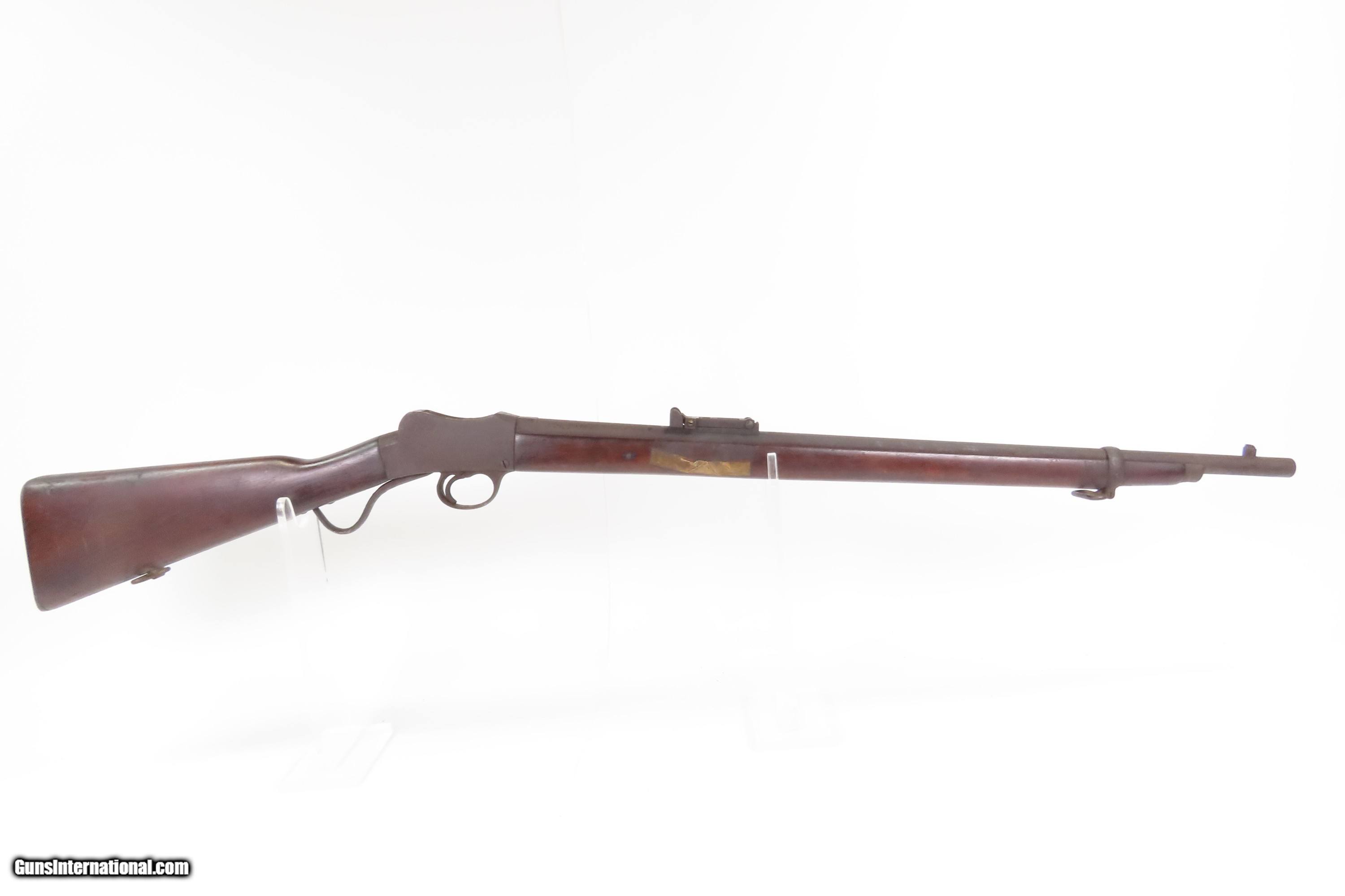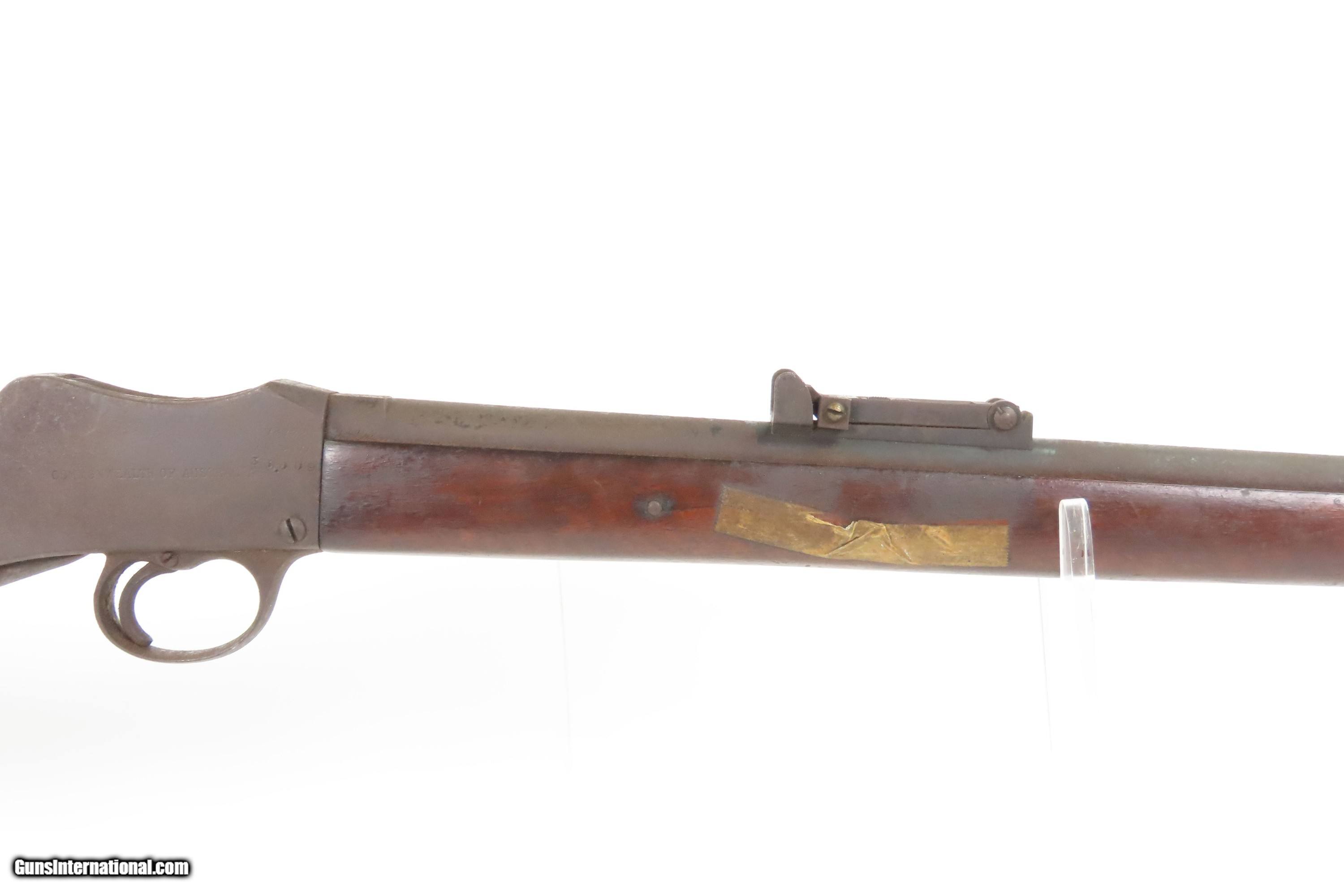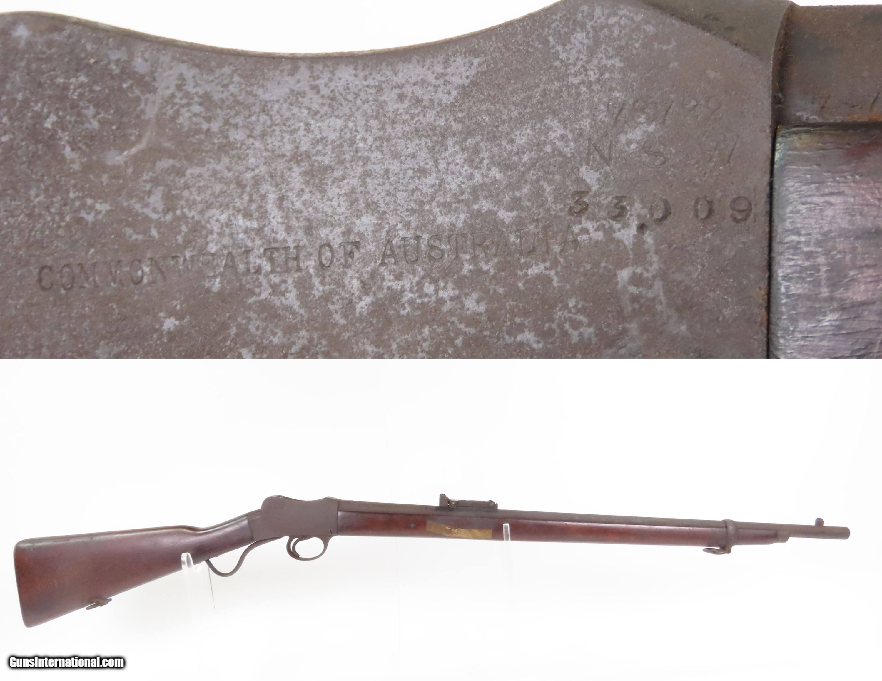 Description: BSA AUSTRALIAN Issue MARTINI Single Shot Falling Block .310 CADET Rifle C&R Made for the COMMONWEALTH of AUSTRALIA Here Ancestry Guns present a C&R Birmingham Small Arms, more commonly referred to as B.S.A., Martini Cadet Rifle manufactured circa 1909 in Birmingham, England. This Martini Cadet rifle is a single-shot centerfire Falling Block produced in the United Kingdom by Birmingham Small Arms and W.W. Greener to be used by Australian military Cadets. Although considered a miniature version of the Martini–Henry, the internal mechanism was redesigned by Auguste Francotte to permit removal from the receiver as a single unit. Chambered for the .310 Cadet cartridge (also referred to as the .310 Greener), it was used from 1891 to 1955. After being sold by the Australian government many were converted to sporting or target rifles, often re-barreled to other calibers. The Martini-Henry Single Shot Falling Block Rifle, which this cadet rifle was patterned after, was made with a production run between 1871 and 1889 with somewhere between 500,000 and 1,000,000 produced. The first iteration of the rifle came about in 1871 and was adopted by the British Army to replace the Enfield Snider Breech Loading Rifles that were being phased out. The action is based on the patent by American and Boston native Henry O. Peabody, which was improved by Swiss inventor Friedrich von Martini. The new polygonal barrel rifling was the design of Scotsman Alexander Henry. This is where the rifle derives its name. Martini–Henry variants were used throughout the British Empire for 47 years. Like other British weapons, the Martini-Henry saw action all over the world, and most famously in the Zulu Wars in Africa. The overall condition is good. The action fully functions. The bore has darkened. Solid stock with average handling wear. Markings are legible. A piece of masking tape is present on the right side of the forend. Own the original! This firearm is classified as a Curio & Relic. Barrel is 25 inches. Caliber: .310 Cadet (.310 Greener) Overall condition as seen in photos. Very Fast. Very Safe. FREE SHIPPING. Will need to be sent to your local FFL or C&R licensee. This firearm is classified as a Curio & Relic. Guaranteed AUTHENTIC & Includes CERTIFICATE OF AUTHENTICITY. $1100 #259720 Curio/Relic: Yes Price: $1,100.00 Buy Now Pay with