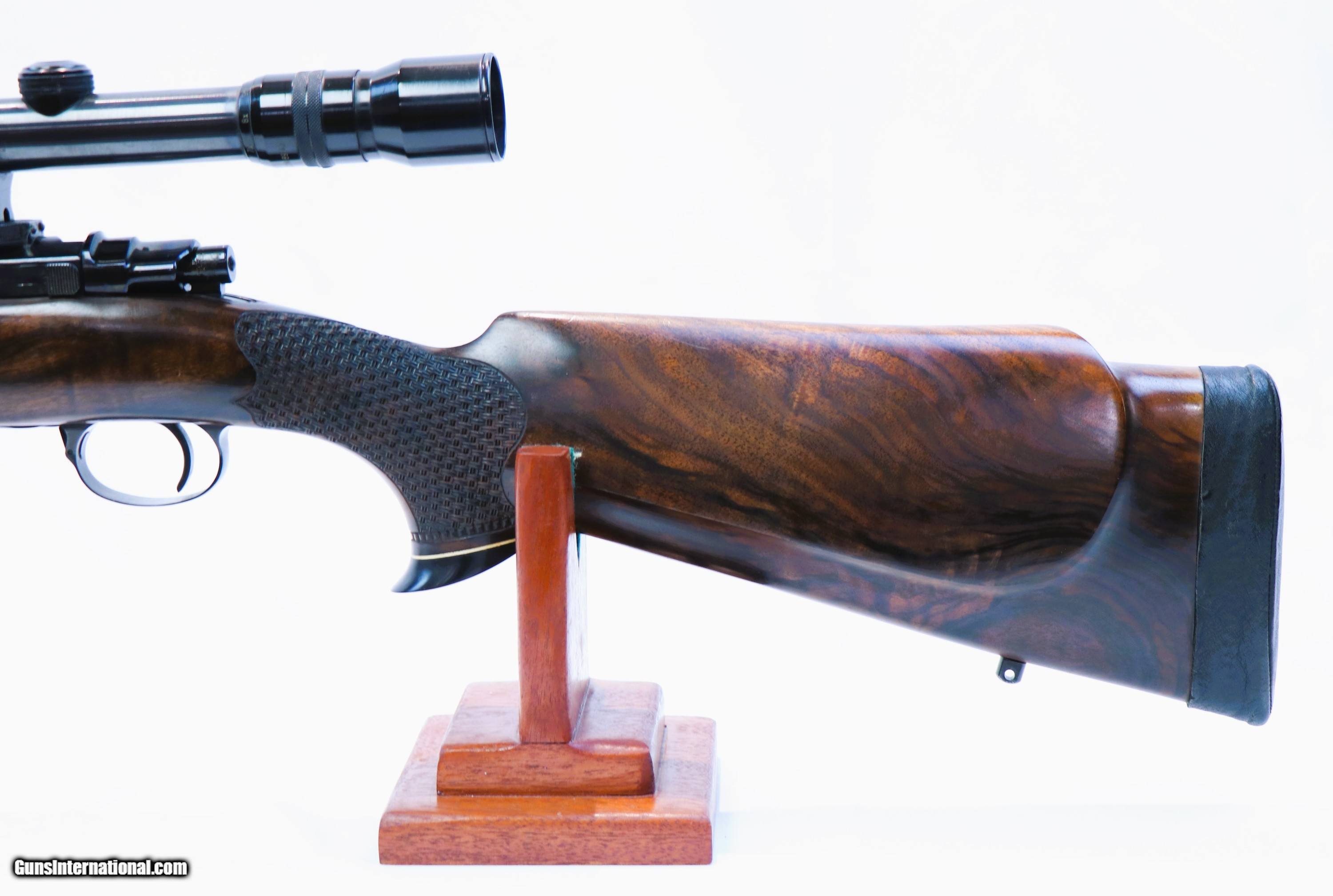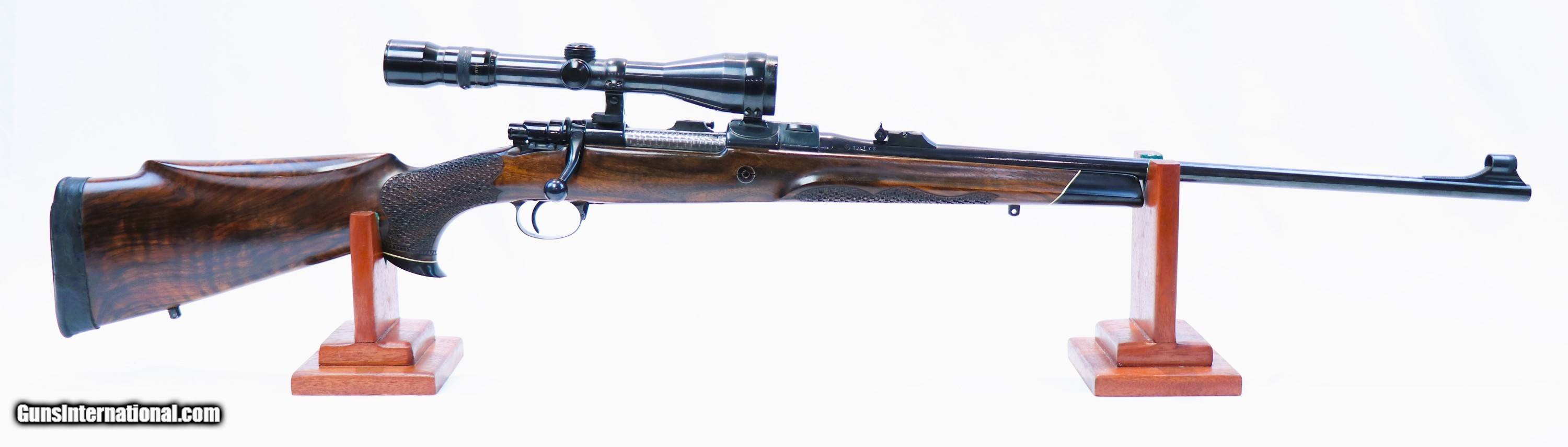Description: Up for sale is this gorgeous Dumoulin Grand Luxe rifle chambered in .300 Winchester Magnum. It is topped off with a Karl KAHLES Wein Helia Super 3-9x42 gloss scope and claw mount. The wood and bluing on this rifle is excellent and the basketweave checkering is really something to behold. The length of pull is a bit long at 15-1/4" but it can always be shortened. Length of pull from the wood of the stock is 14-1/4". Thanks for looking! Rifle Caliber: .300 Winchester Magnum Manufacturer: Dumoulin Henri & Fils Model: Grand Luxe Serial Number: 10172 Barrel Length: 24 Price: $6,899.99 Buy Now Contact Seller |