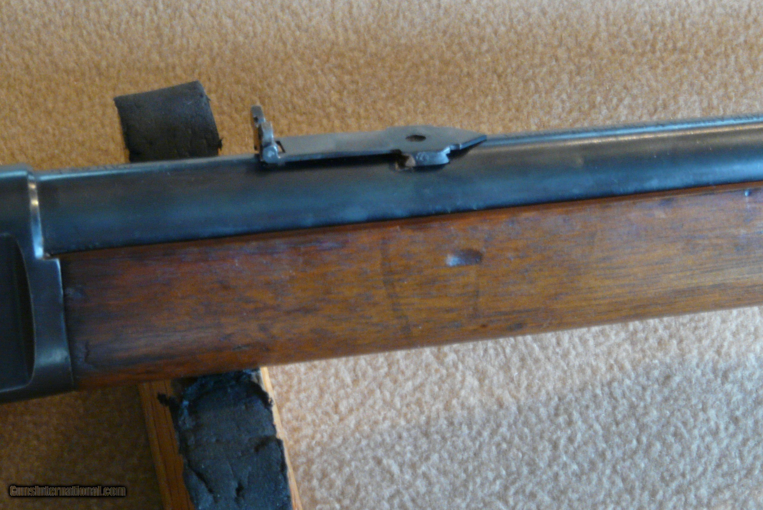 Description: This has orig. 22" Bbl with all original front sight, rear is Flip up leaf sight, in slot provided by factory ! EXC Bore, takes 44-40 . Saddle ring has been cut off, after market rear sight was added, was ugly, now missing and screw holes are filled , Gun functions like new, would be a great gun for action shoots, or hunting, wood is Exc and blue is 90% OA ! ( Price plus shipping $50.00) O.B.O. SOLD |