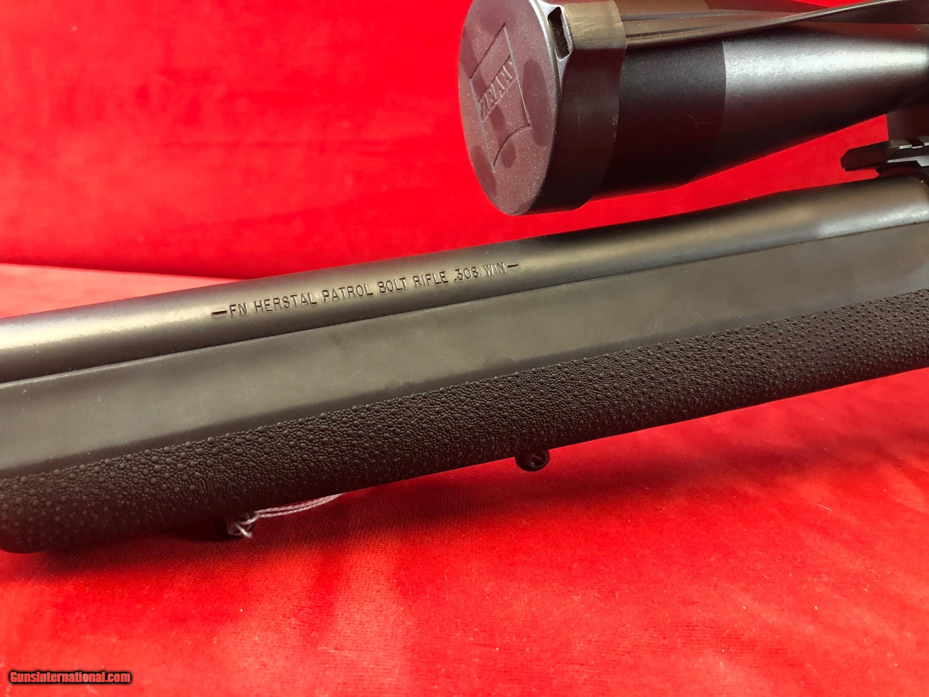 Description: We have a very clean FN Patrol, chambered in .308 Winchester. The rifle features a Zeiss Conquest 6.5-20x50 MC. Buyer pays for shipping. Rifle Caliber: .308 Winchester Manufacturer: FN Model: Patrol Barrel Length: 20 Price: $1,499.00 Contact Seller |