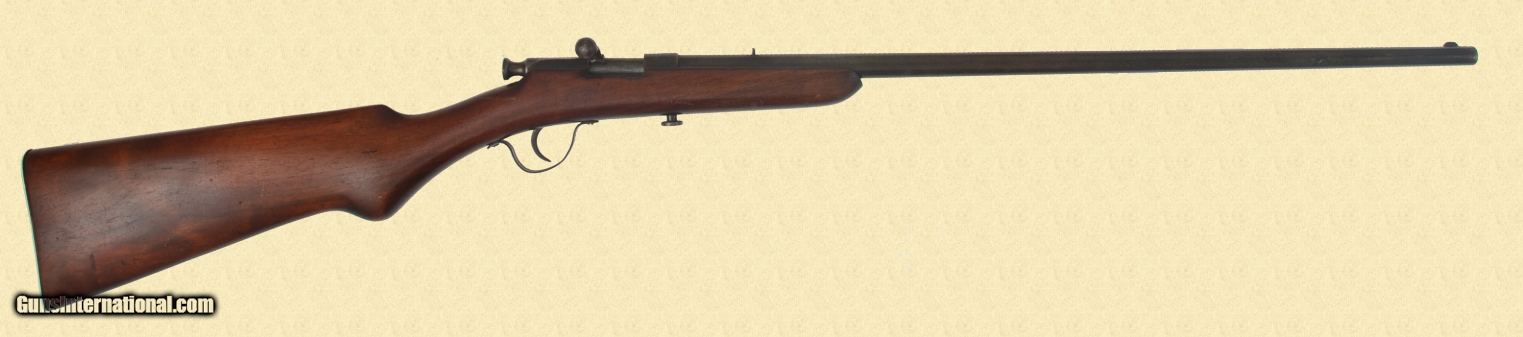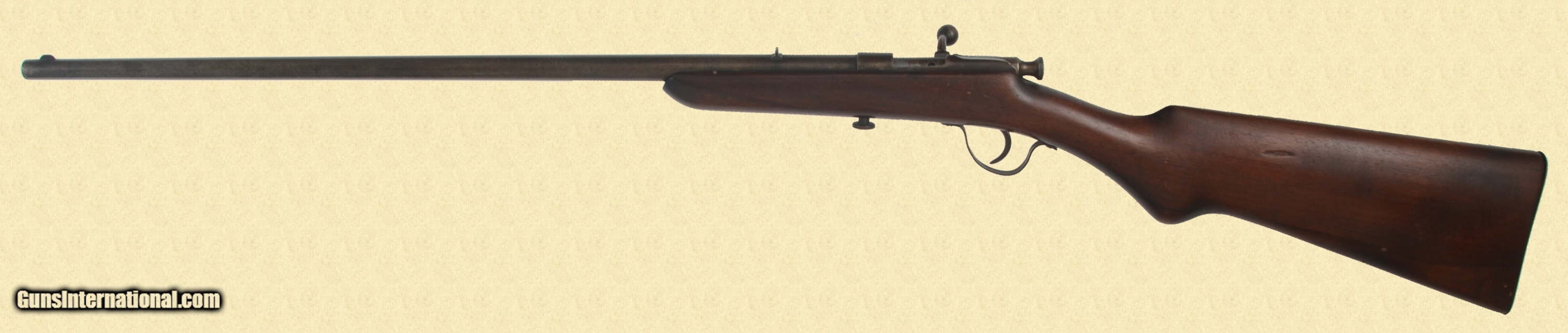 Description: 22 Long Rifle; fair bore, good stock, 22 3/8'' barrel, Pre-WW2 manufacture, single shot bolt action miniature rifle. Round barrel with fixed sights. Patina metal with dark spotting. Plain walnut stock. Missing the extractor. Action functions. Bore is dark, rusty. C&R/FFL Please call (309)342-5800 Tues-Fri, 10 am -6pm (CST), or Sat 1pm-6pm (CST), to speak with our sales team for further information, or to purchase firearms. FEDERAL FIREARMS LICENSE (FFL): is required on all shipments of modern guns. We must wait for a copy from your dealer before we can ship to them. We will also ship C&R eligible firearms to Curio and Relic (C&R) license holders. We accept your signed, legible FFL and C&R licenses via fax at 309/ 342-5730 (always on), email at FFLsimpsonltd or through the mail at Simpson Ltd; 140 S Seminary St; Galesburg, IL 61401. Pre-1898 firearms and non-firearms items are exempt from licensing requirements. All items shipped to an Illinois address will be charged 8.75% sales tax. NOTE: Because of recent shipping restrictions and charges placed on us by UPS and FedEx (handguns must ship via next day or 2nd day air and they have added a $10 surcharge for parcels over 48”. Our return policy lasts a maximum of 3 days from the time you receive your item. If 3 days have passed since you received your purchase, and we have not been contacted by you, unfortunately, we can’t offer you a refund or exchange. If you are not happy with your purchase, please contact us by phone and/or email to arrange for a return. Items must be shipped back to us to arrive with 7 days of notification of return. SOLD Curio/Relic: Yes Serial Number: DRG416629 |