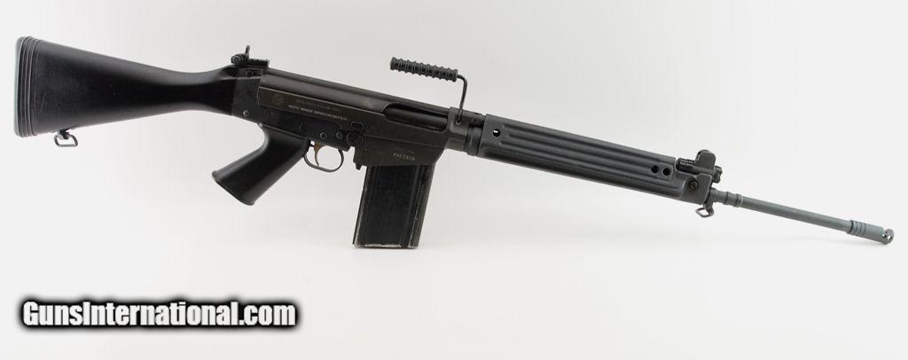Description: IMBEL STG 58 Sporter .308, 20" bbl, good bore, flash hider, black finish, adjustable rear peep sight, post in military wings front sight, synthetic stock - pistol grip, metal forend, sling loops, carrying handle, one 20 round magazine, and black recoil pad. Great addition to your collection. Add 3% for Credit Card Shipping $30.00 SOLD |