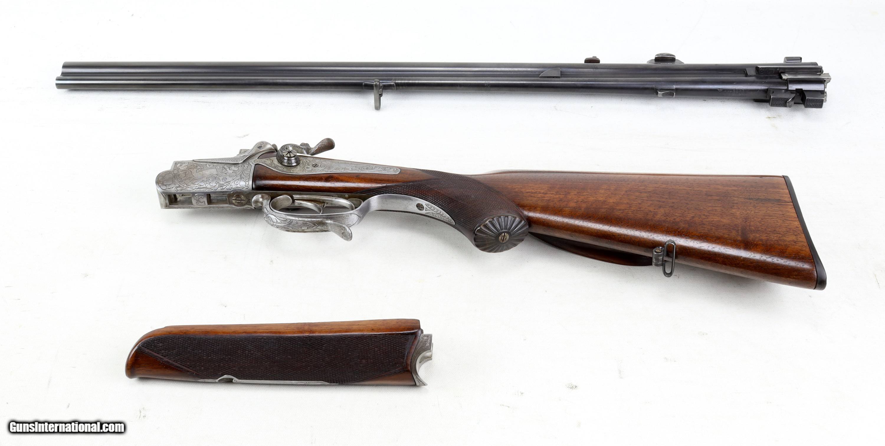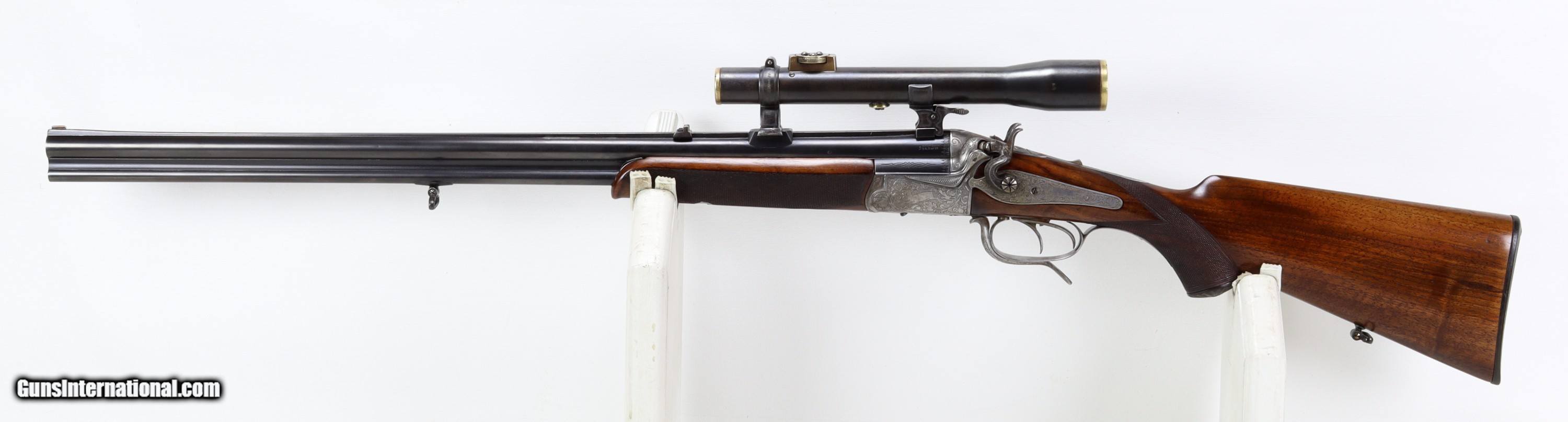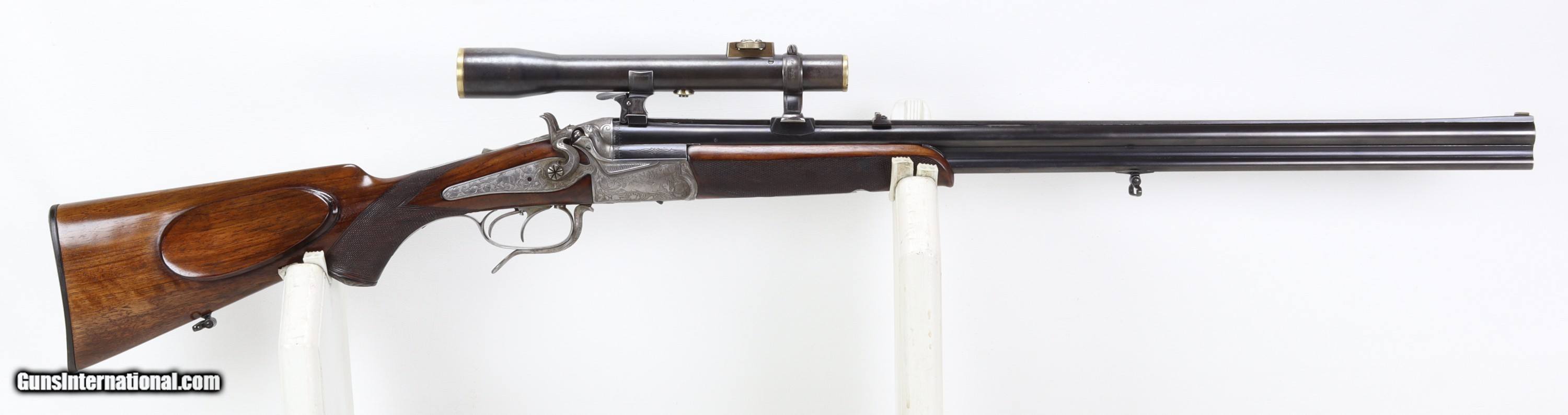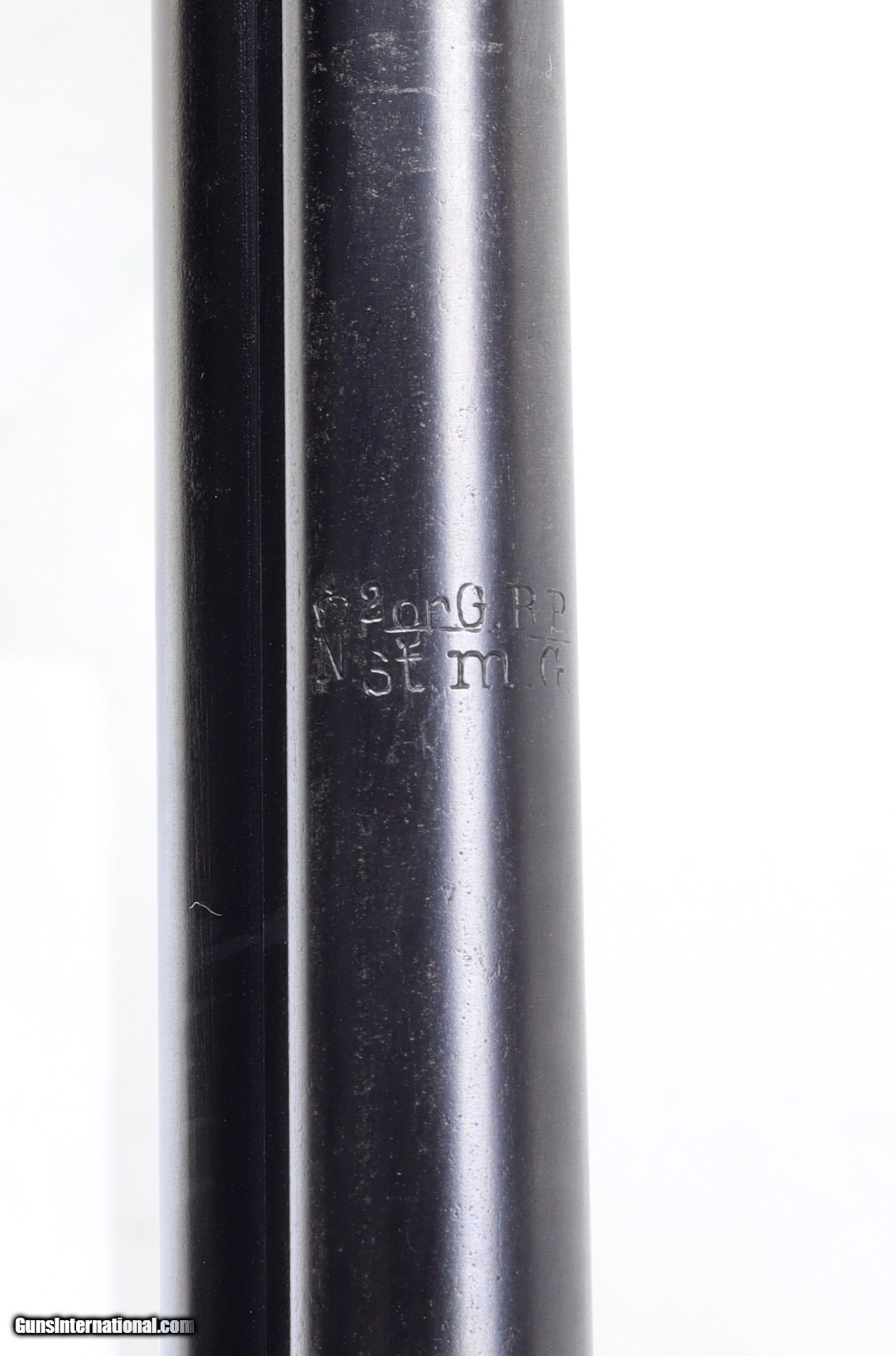 Description: J PETERONGO, COMBO RIFLE /SHOTGUN, No Serial Number, MFG: 1920-30's, "Probably a WWII Bringback". 16GA/ 8MM SAUER, 26" Barrel, 2/3/4" Chamber, Excellent Bore for Both Rifle & Shotgun. LOP: 13 3/8"/12 1/2", DAC: 1 1/4" DAH: 2 1/4". Beautifully Engraved Receiver. Weight: 7lbs, Trigger Pull: Front: 8lbs, Rear: 4 1/4lbs. A Wonderfully Preserved Collectible European by a Renoun Custom AUSTRIAN Custom GunMaker. German Scope, with Quick Disconnect Claw Mounts. VG. Ships to Lower 48, W/Insurance: $60.00 *** Restoration by SHOOTERS EXCHANGE**** SOLD TO TX BUYER PENDING RECEIPT OF FUNDS SOLD Curio/Relic: Yes |