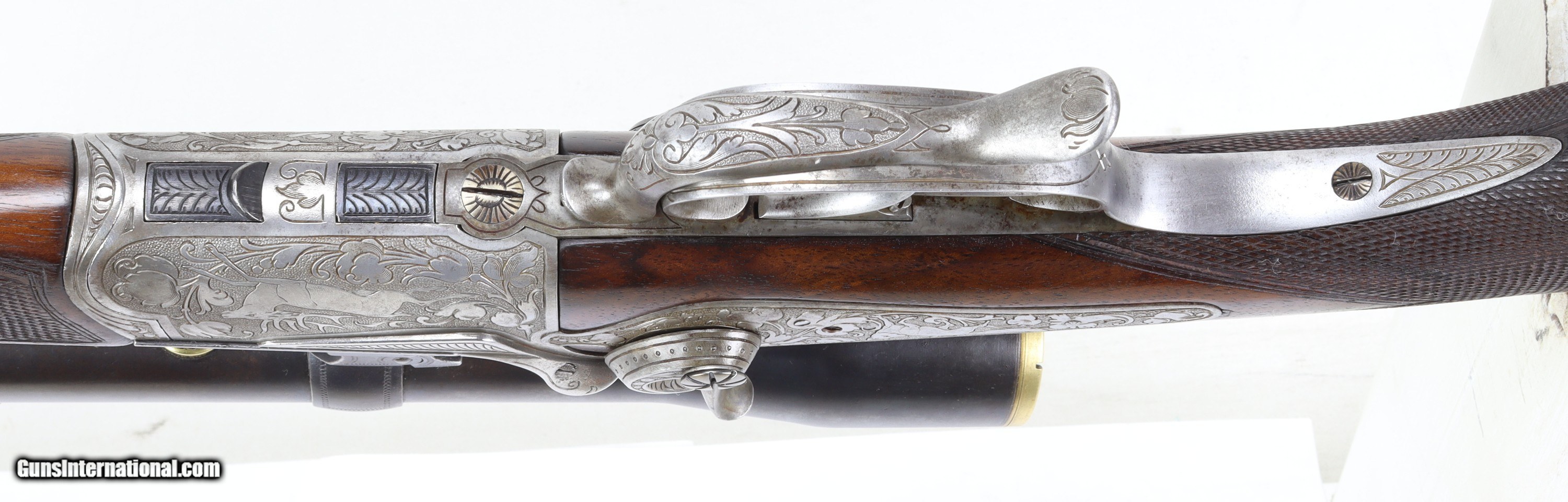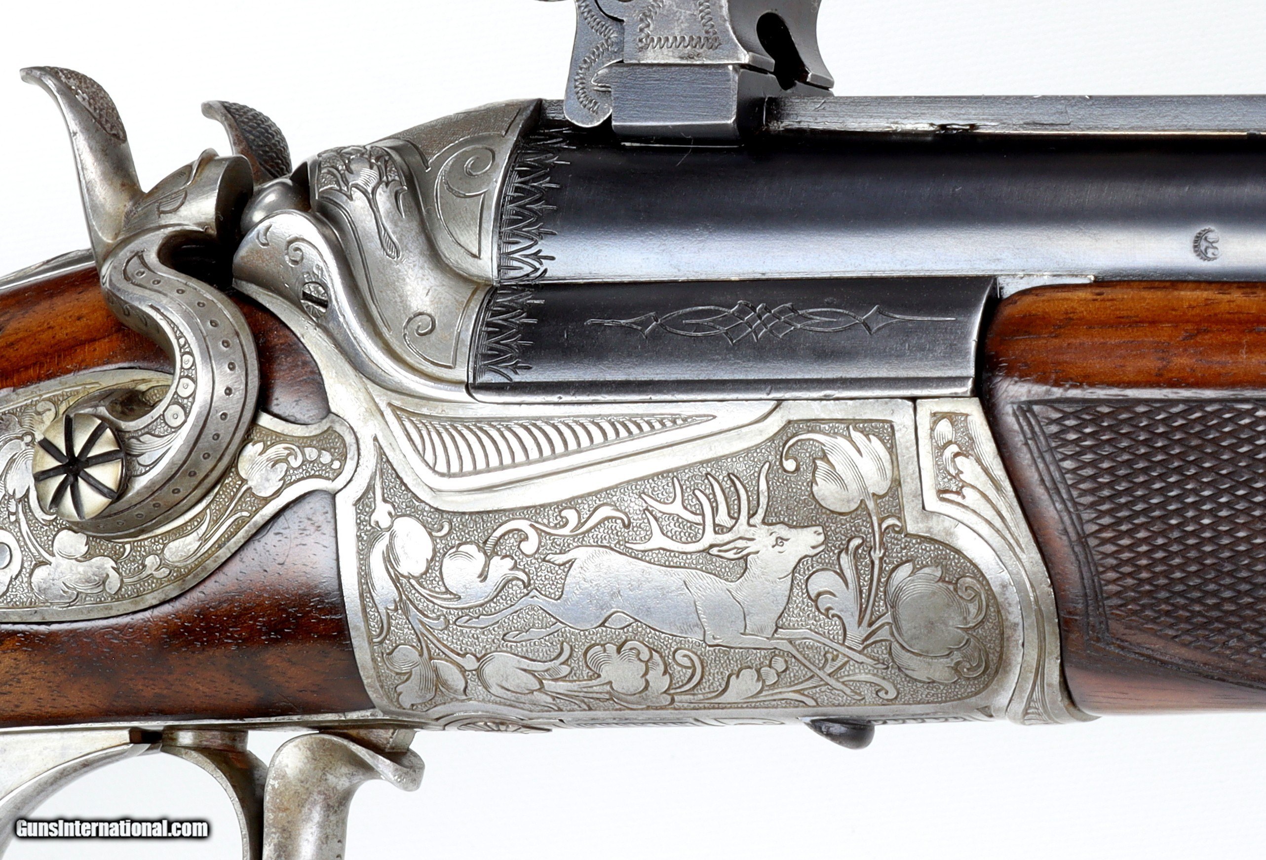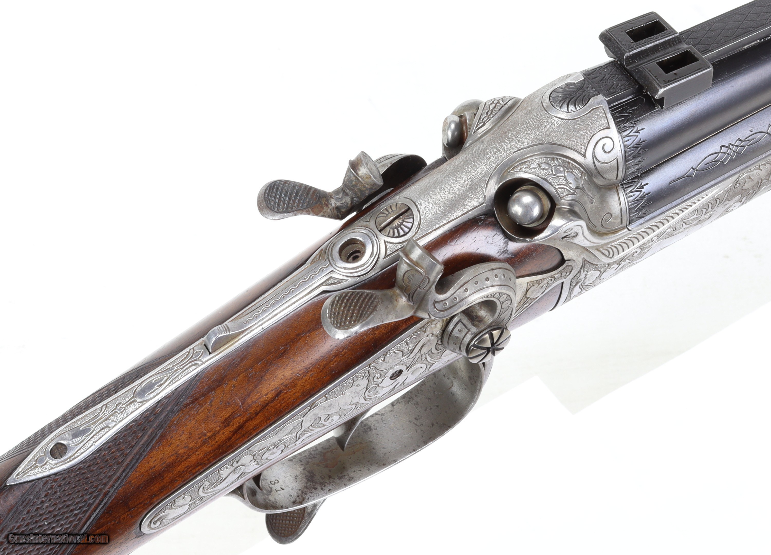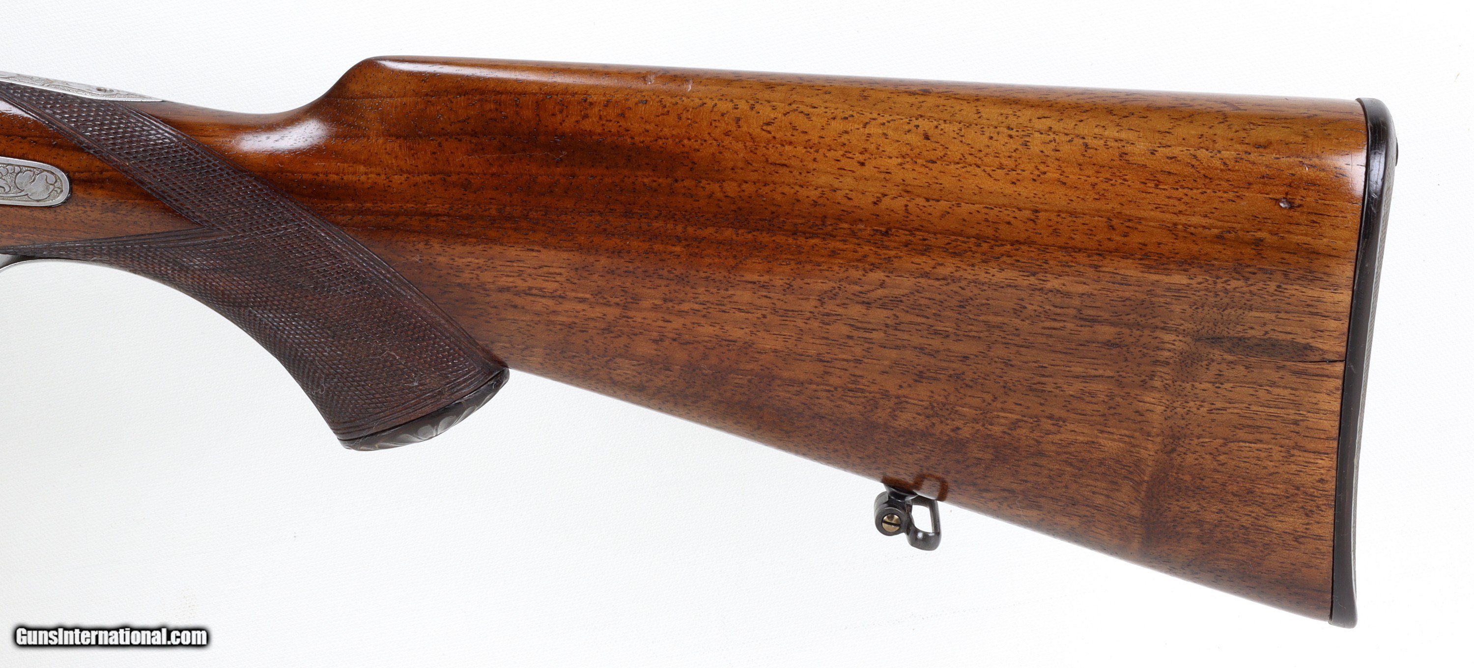 Description: J PETERONGO, COMBO RIFLE /SHOTGUN, No Serial Number, MFG: 1920-30's, "Probably a WWII Bringback". 16GA/ 8MM SAUER, 26" Barrel, 2/3/4" Chamber, Excellent Bore for Both Rifle & Shotgun. LOP: 13 3/8"/12 1/2", DAC: 1 1/4" DAH: 2 1/4". Beautifully Engraved Receiver. Weight: 7lbs, Trigger Pull: Front: 8lbs, Rear: 4 1/4lbs. A Wonderfully Preserved Collectible European by a Renoun Custom AUSTRIAN Custom GunMaker. German Scope, with Quick Disconnect Claw Mounts. VG. Ships to Lower 48, W/Insurance: $60.00 *** Restoration by SHOOTERS EXCHANGE**** SOLD TO TX BUYER PENDING RECEIPT OF FUNDS SOLD Curio/Relic: Yes |