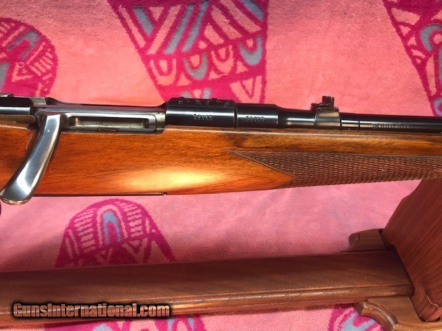 Description: I am offering a Mannlicher Schoenauer Model MCA Deluxe Rifle, Steyr Daimler Bolt Action, Made in Austria. Caliber 30-06. Serial number is 39750. Made in 1961. Mirror as new bore. Double set triggers. 22” barrel. This is a beautiful, new condition high quality Austrian made rifle. High figured beautiful walnut stock. I think the rifle is unfired. The rifle is all original, not refinished. Wood is 99% of new and metal also is 99% of new. Safety warning: All firearms should be checked by qualified Gunsmith before firing. $75.00 shipping fee paid by buyer Payment: Postal Money Order or Bank checks Return Policy: All firearms come with a 3 day non firing, no tinkering with (turning screws, taking apart, removing parts, scoping, firing, cleaning or altering in any way) The firearm may be returned for any reason, buy the buyer must notify the seller within three (3) calendar day inspection period. The buyer must start the return within the next four (4) calendar days to receive a complete refund, less all shipping, transaction fees and FFL charges. On a return, the buyer must not remove the firearm from the FFL premises without approval of the seller. Once the firearm has been received by the seller and inspected, a prompt refund will be issued. Shipping must start within one week of receipt of the item. The return shipping must be of equal shipping level, including insurance. The return item MUST be in the same condition as when shipped to the buyer. This is an inspection period only, a gun is not to be fired or disassembled. Sellers written permission is required to allow the buyer to take down a takedown model during the inspection period. Upon the receipt and inspection of the returned gun, the seller agrees to issue a prompt refund. Shipping- to FFL license holders (no private sales of firearms) Curio/Relic: Yes Rifle Caliber: .30-06 Springfield Manufacturer: Steyr Daimler Model: MCA Serial Number: 39750 Barrel Length: 22 Condition: Excellent Metal Condition: 99% Wood Condition: 99% Bore Condition: Excellent Manufacture Date: 1961 Price: $1,650.00 Shipping: $75.00 Contact Seller |