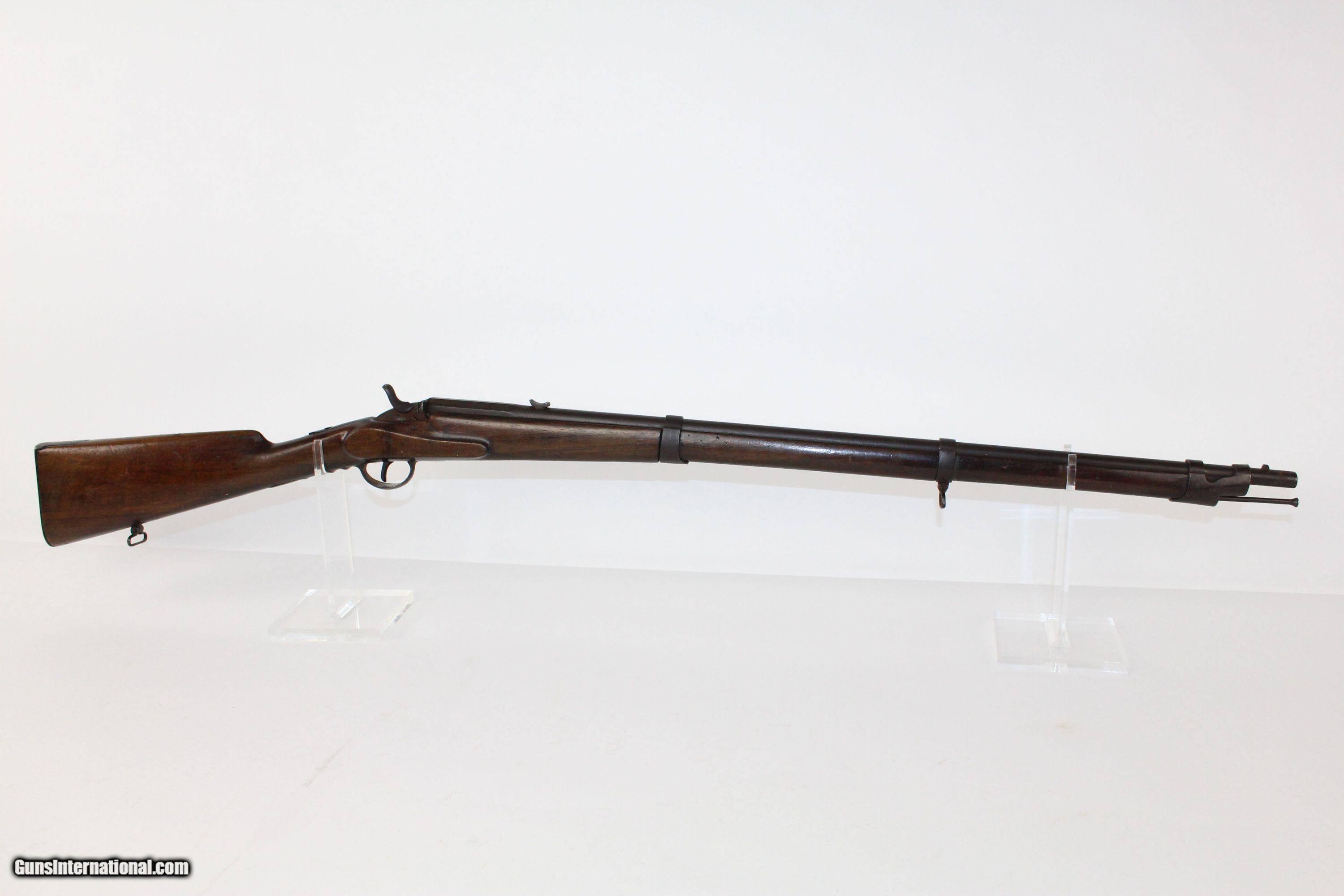 Description: NEAT European Antique FLOBERT Gallery RIFLE MUSKET Boy-Sized 3 Band Musket Here we present an antique Flobert Style Warnant Gallery Rifle “Musket”, made circa the late 19th century in Liege, Belgium. Gallery rifles were very popular in the late 19th and early 20th centuries. These would be set up in drinking establishments, at carnivals and even in people’s houses, as the ammunition used virtually only used the primer as propellant. These were very low velocity firearms and cartridges, making them relatively safe and quiet. The overall condition is very good. The metal surfaces are smooth with a nice dark patina. The markings are legible. The stock is in good shape, showing modest wear. The bore is in very good shape with strong rifling. The action is excellent. Here is a great little gallery “musket”! This firearm is classified as a Curio & Relic. Barrel is 28 inches. Overall length is 43 inches. Caliber: 8mm Flobert Overall condition as seen in photos. Very Fast. Very Safe. FREE SHIPPING. Will need to be sent to your local FFL or C&R licensee. This firearm is classified as a Curio & Relic. Guaranteed AUTHENTIC & Includes CERTIFICATE OF AUTHENTICITY. ancestryguns $650 #6009 SOLD Curio/Relic: Yes |