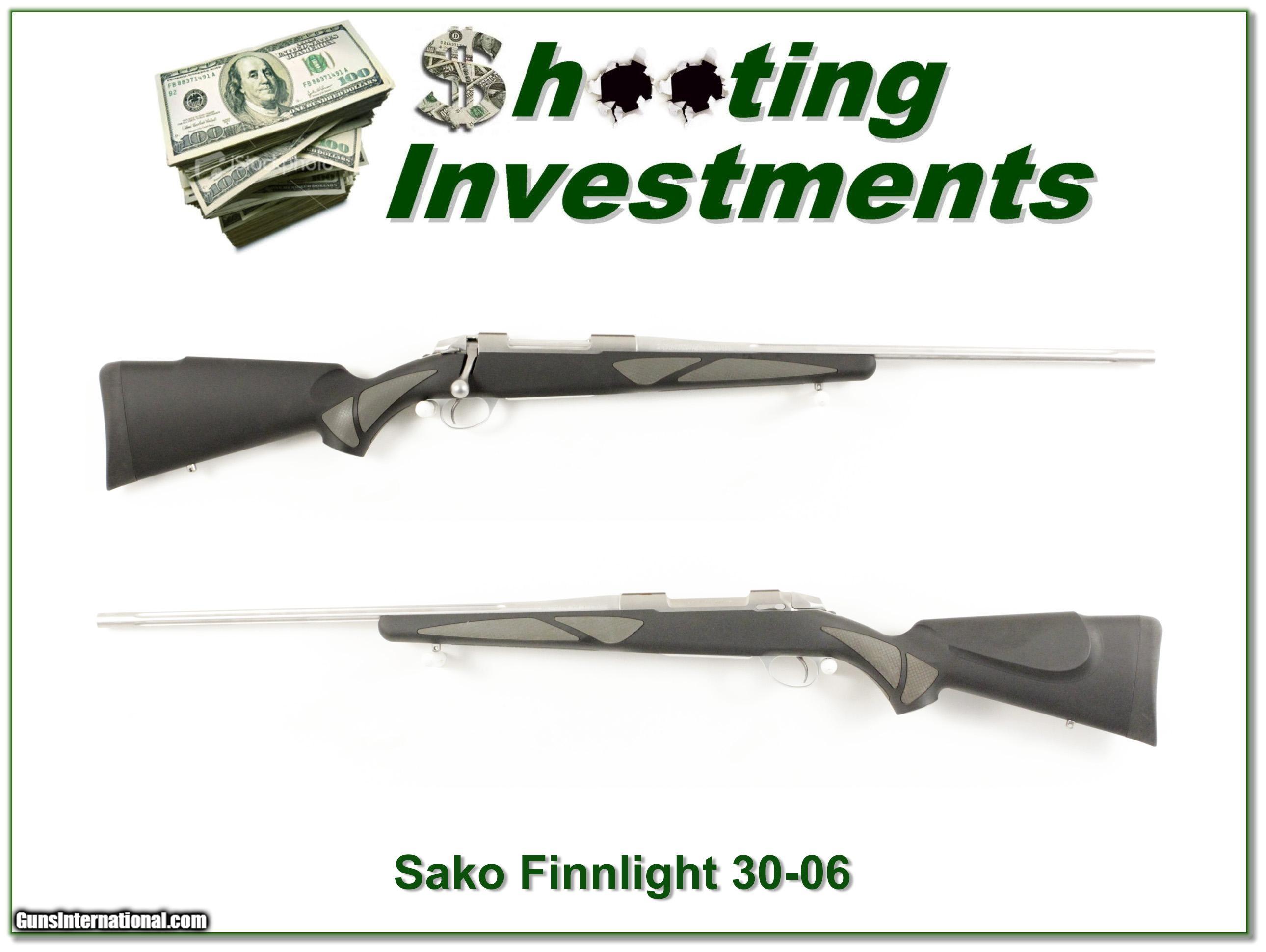 Description: This is a light weigh Sako 85 Finnlight in 3-06. It is stainless with fluted barrel and synthetic stock. I see no marks and I’m sure never fired more than a few rounds. It comes with manual as shown. With the discounted price for a new on over $1600 this is a great buy. It is as good as new. Shipping and insurance is $35 or $15 more if you want it shipped in a new Plano hard case. Please email me with any questions or larger pictures. (Consign your quality firearms with Shooting Investments for only 10%! Let me know if you have any you would like to sell!) 17-0858 Payment: Payment is by Money Order, Cashiers Check or Personal Check. I can now also accept MasterCard and Visa with a 3% convenience fee. PayPal can be used for some items but never firearms. Please let us know if you would like to pay via PayPal. Shipping: The shipping charge will be listed in each description. It is $35 for most guns. Some heavy guns or those insured for over $2000 will be higher. Shipments to Alaska and Hawaii are higher because air shipment is required. Most firearms are shipped within 5 days of receipt of payment. We prefer shipping at the beginning of the week to avoid firearms in transit over weekends. We package all shipments carefully and insure them for the full purchase price, rounded up to the next $100. In the unlikely event that damage occurs, it is important that you save all packaging material for the claims process. Optics are shipped Priority Mail and most other non-firearm shipments are shipped First Class. Returns: Our return policy is simple. If for any reason you are not pleased with your purchase, you may return your item for a refund. The only exception is ammunition, it cannot be returned. It is important to us that you are happy. Guns cannot be fired or dissembled before returning them and must be returned in the same condition as received. Notification of a return must occur with-in 3 days of receipt at your dealer. Shipping, convenience and dealer fees are not refundable and are the responsibility of the buyer. Lay-a-way: If needed, we offer a 60 day lay-a-way option on most firearms. It is 1/3 now, 1/3 in 30 days and 1/3 in 60 days. Lay-a-way firearm sales are final. Consigning your firearms with Shooting Investments: We will help you get top dollar for your firearms. While most local guns shops charge 20% or more, our fee is only 10% with a minimum of $50. At your local gun shop it might take months to sell. Selling on-line provides instant access to thousands of interested buyers. You won’t find any other on-line dealer willing to sell your firearms for only 10% or listing every gun on 4 separate s. Selling through an House typically costs the seller 15% and the buyer an addition 15% (so 30%) and you have to wait several months to sell and longer to receive funds. If properly priced, we will sell your firearms in a week or two. Send us an email or give us a call and we’ll explain how easy it is for you to get top dollar. Trading: We collect guns and usually just trade for guns we want to add to our collections. We often sell guns for others wanting to purchase one of ours. We find this the most fair to both of us. Our Commission is only 10% and we hold the gun you want until yours sells. Please contact us if you want to sell one of yours to buy one of ours. Help for California Buyers: We are happy to ship to California. It is the buyer’s responsibility to make sure any item you buy is legal in your state. We are also happy to help with your purchase of a firearm from someone other than us. If you see a gun you would like to buy but the seller can’t or won’t ship to California we can help. You buy the gun and have it shipped to us. We’ll then ship it to your California dealer. The cost for this service is only $30 + shipping. Let me know if we can help! SOLD |
