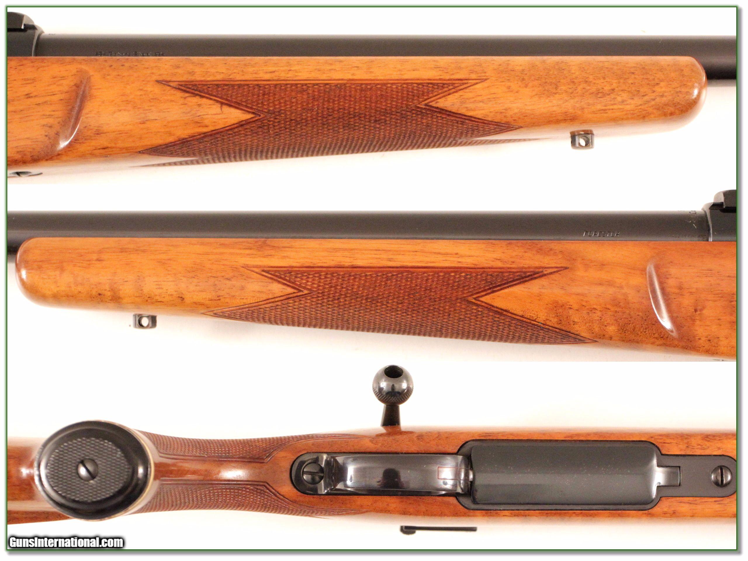 Description: Collectors and shooters, this is beautiful and rare L57 243 Heavy Barrel. These early guns have the fames Bofers Steel barrel. This is a collector gun. The blue and wood are excellent with only a couple minor marks on the wood! This will make a very nice addition to your collection! It is a Shooting Investment. I am selling this one on consignment and as such, lay-a-way can’t be used. It does of course have the standard 3-day inspection. Shipping and insurance is $39 or $19 more if you want it shipped in a new Plano hard case. Please email me with any questions or larger pictures. (Consign your quality firearms with Shooting Investments for only 10%! Let me know if you have any you would like to sell!) 16-0989 Payment: Payment is by Money Order, Cashiers Check or Personal Check. I can now also accept MasterCard and Visa with a 3% convenience fee. PayPal can be used for some items but never firearms. Please let us know if you would like to pay via PayPal. Shipping: The shipping charge will be listed in each description. It is $39 for most long guns and $29 for most handguns. Some heavy guns or those insured for over $2000 will be higher. Shipments to Alaska and Hawaii are higher because air shipment is required. Most firearms are shipped on Tuesday and Thursday and usually in 5 days of receipt of payment. We package all shipments carefully and insure them. For long guns you can purchase a new Plano case for $19. They now cost us $22 when buying 100 at a time. Optics are shipped Priority Mail and most other non-firearm shipments are shipped First Class. Returns: Our return policy is simple. If for any reason you are not pleased with your purchase, you may return your item for a full refund of purchase price. Ammunition cannot be returned. It is important to us that you are happy. Guns cannot be fired or dissembled before returning them and they must be returned in the same condition as received. Notification of a return must occur with-in 3 days of receipt at your dealer. Shipping, convenience and dealer fees are not refundable and are the responsibility of the buyer. Lay-a-way: If needed, we offer a 60 day lay-a-way option on most firearms. It is 1/3 now, 1/3 in 30 days and 1/3 in 60 days. Lay-a-way firearm sales are final and if not completed the first payment cannot be returned. Consigning your firearms with Shooting Investments: We will help you get top dollar for your firearms. While most local guns shops charge 20% or more, our fee is only 10% with a minimum of $75. At your local gun shop it might take months to sell. Selling on-line provides instant access to thousands of interested buyers. You won’t find any other on-line dealer willing to sell your firearms for only 10% or listing every gun on 3 separate s. Selling through an House typically costs the seller 15% and the buyer an addition 15% (so 30%) and you have to wait several months to sell and longer to receive funds. If properly priced, we will sell your firearms in a few weeks. Send us an email or give us a call and we’ll explain how easy it is for you to get top dollar. Trading: Trading for use is really just buying your gun to re-sell. If you have a gun you want to trade, please email a picture and we will let you know what we can give or it. You will always get more if we sell it for you on consignment. Help for California Buyers: We are happy to ship to California. It is the buyer’s responsibility to make sure any item you buy is legal in your state. We are also happy to help with your purchase of a firearm from someone other than us. If you see a gun you would like to buy but the seller can’t or won’t ship to California they can ship to use and we’ll then ship it to your California dealer. The cost for this service is only $30 + shipping. Let us know if we can help! SOLD |