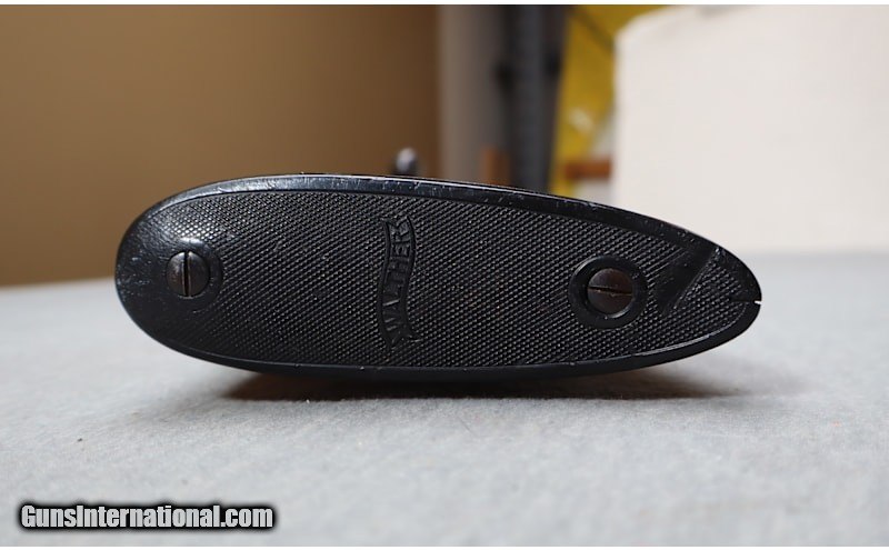 Description: The Walther Sportmodell V is a pre-World War II .22 caliber single-shot bolt-action rifle, known for its quality craftsmanship and historical significance. The Walther Sportmodell V was manufactured in the early 1930s until the onset of World War II. It is recognized as a robust and well-made rifle, often regarded as Walther's bread and butter in the .22 caliber single-shot category. Many of these rifles were brought back to the United States as souvenirs by GIs after the war, making them relatively common in the U.S. compared to Germany. This example is in nice shape and topped off with a Leupold scope. Barrel shows some spotting and finish wear which is to be expected with age. .22 Long Rifle Metal Condition: good Wood Condition: good Bore Condition: bright Barrels: 25.5" barrel Stock Dimensions: 14.5 Fore End: smooth wood Butt Pad: plastic Weight: 8 lb - 10 oz. with scope Sights: "factory sights, Leupold Vari-X IIc 3-9 scope Item Location: La Vista, NE Price: $899.99 Contact Seller |