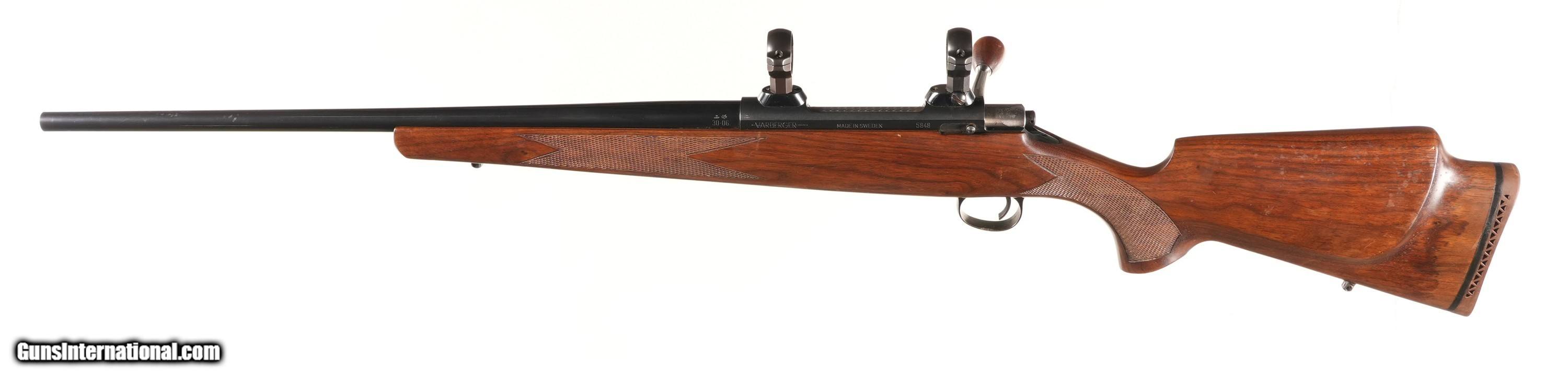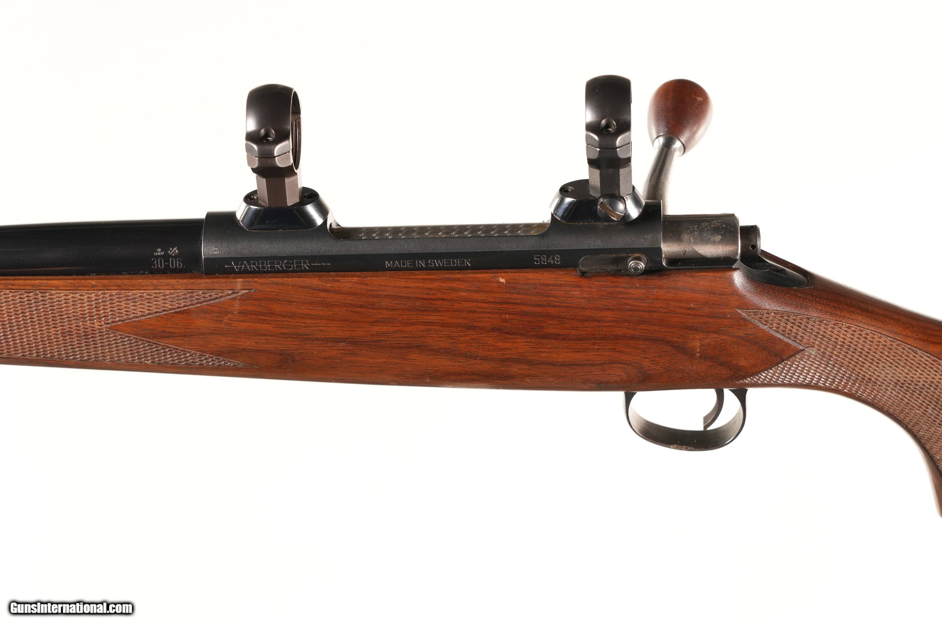 Description: .30-06 Serial # 5848 Monte Carlo-style checkered walnut stock with right-hand palm swell. Receiver marked “Made in Sweden,” includes 30mm scope rings. Metal surfaces excellent; light handling marks to wood. Barrel 22 Modern • Free Shipping, No Credit Card Fees. • Lay-a-way available for this firearm. • 1/3 Down, a 1/3 in 30 Days 1/3 in 60 Days. Manufacturer: Varberger Model: 717 Serial Number: 5848 Barrel Length: 22 Price: $995.00 Buy Now Contact Seller |