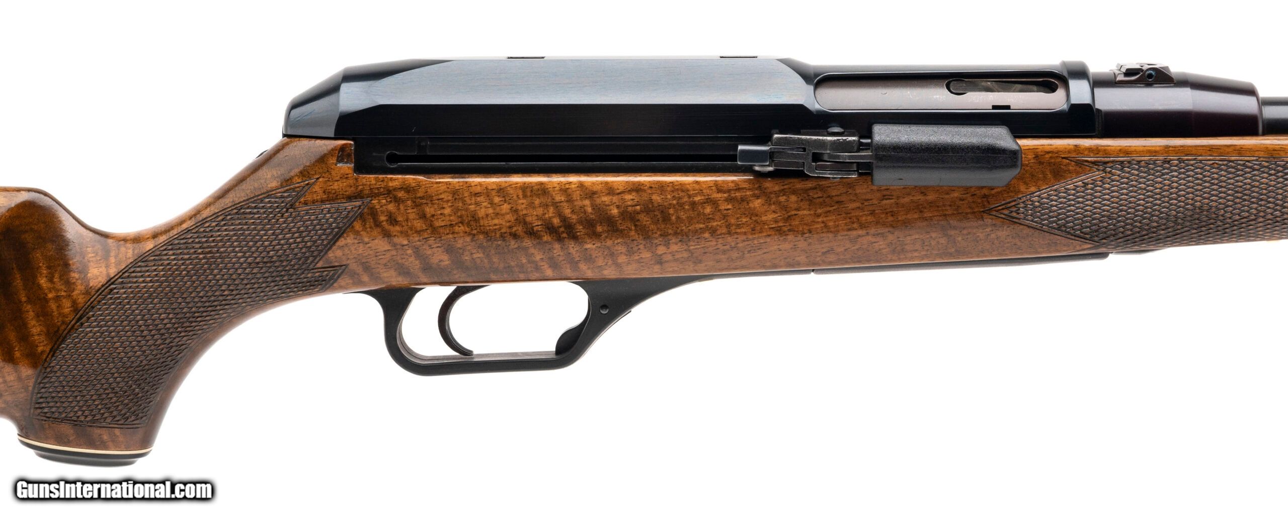 Description: "SN: 01156 made in Germany circa 1982. Rare semi-automatic hunting rifle chambered in 30-06 with a 24" round barrel with factory muzzle brake, flip up rear sight, slotted receiver for a quick detach scope mount and detachable 3 round magazine in a nicely figured oil finish checkered walnut stock. Some light handling marks but overall in very good condition with an excellent bore. Consignment. Price: $2,695.00 Contact Seller |