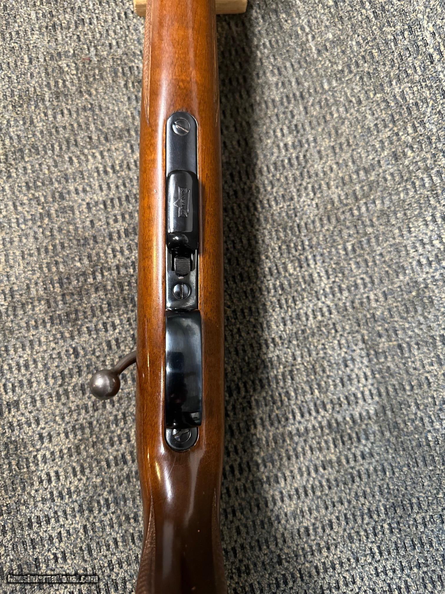 Description: *VERY NICE* 1973 mfg. West Germany. Savage/Anschutz 164M Sporter in 22 magnum. 24" barrel with Excellent bore. Factory hooded front sight and fold-down rear sight. Grooved receiver. 5-shot magazine. Excellent trigger. Overall condition is excellent. Blue-99%. Wood- 98% showing only a few light handling marks. Renouned Anschutz Quality and Accuracy. $50.00 Shipping and Insurance to your FFL in the lower 47. NO CA Sales. Thanks for looking. Price: $850.00 Contact Seller |