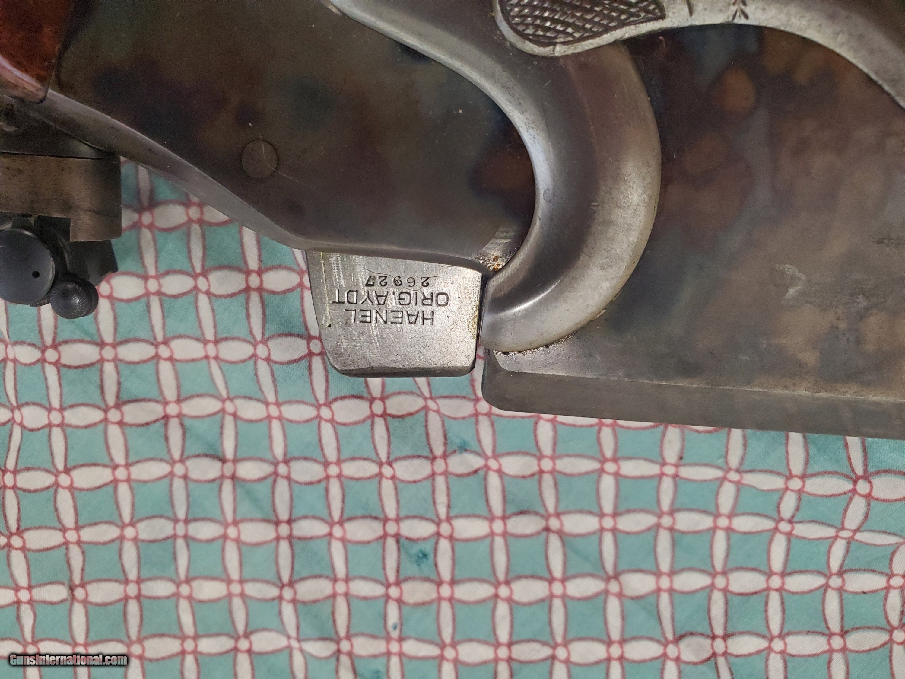 Description: C.G. HAENEL ORIGINAL SCHUETZEN RIFLE, 8:15 X 46, SN 269XX, 31 1/2” oct. bbl., in excellent condition with 100% blue & casehardening I am not a FFL, I am a private seller. Questions e-mail: timtimbillington NO TRADES PAYMENT: Cashier Check, Wire Transfer, No Personal Checks. We accept all major credit cards, please add 3% to the cash discount price. SHIPPING: Cost of shipping will be determined prior to sell and included in final price. Guns will be shipped to your local FFL, FFL costs paid by buyer. SAFTY NOTICE- Buyer is solely responsible for determining that a used gun is safe to shoot. The firearms offered have not been test fired but have been given a visual inspection only. It is a requirement that every used firearm is inspected by a qualified gunsmith before firing. The buyer agrees to hold seller harmless against damages, injury, or death caused by defective merchandise. U.S. sales only, no exports, this includes antiques. I will ship to third party for exporting. All offers considered. SOLD Rifle Caliber: 8.15x46mmR Manufacturer: C.G Haenel Condition: Excellent Metal Condition: Excellent Wood Condition: Very Good |