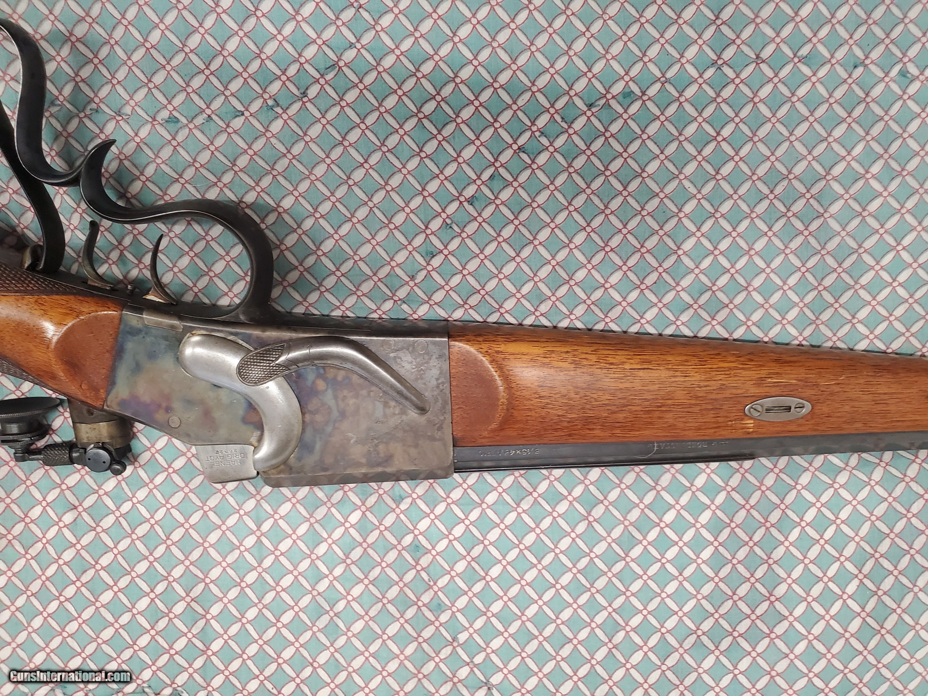 C.G. HAENEL ORIGINAL SCHUETZEN RIFLE, 8:15 X 46, SN 269XX, 31 1/2” oct. bbl., in excellent condition with 100% blue & casehardening
