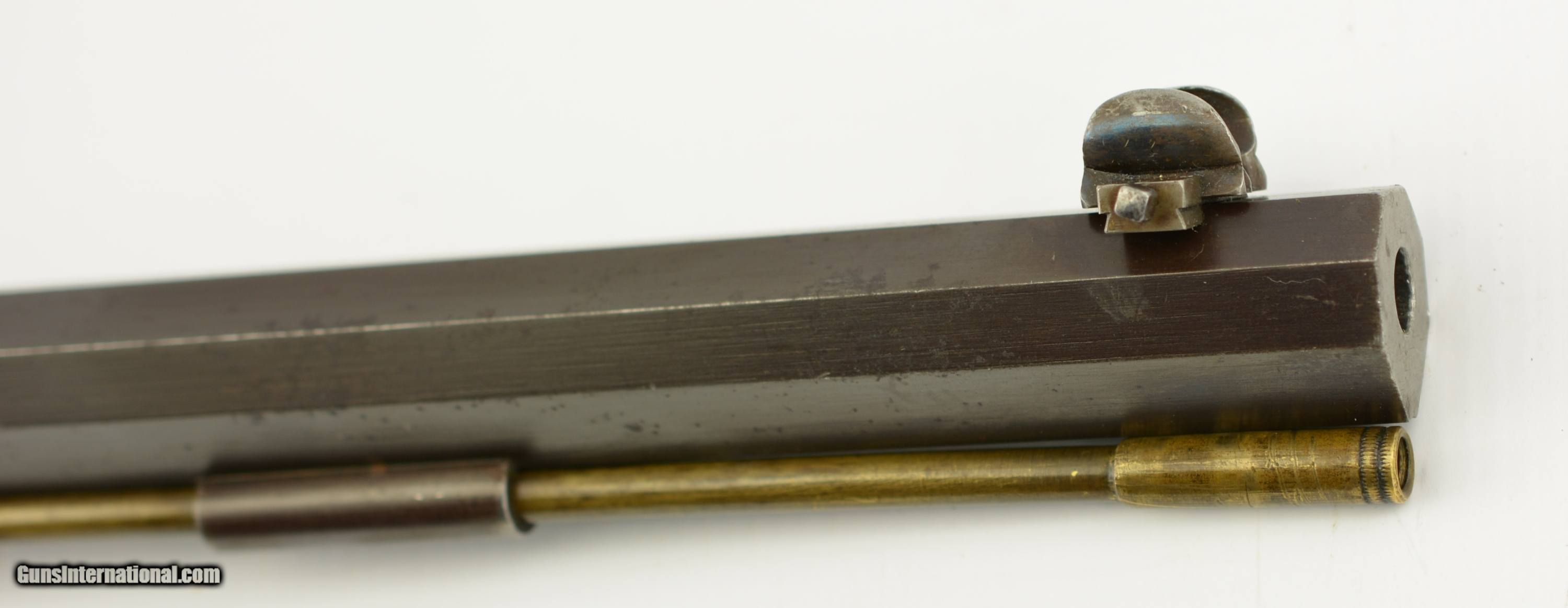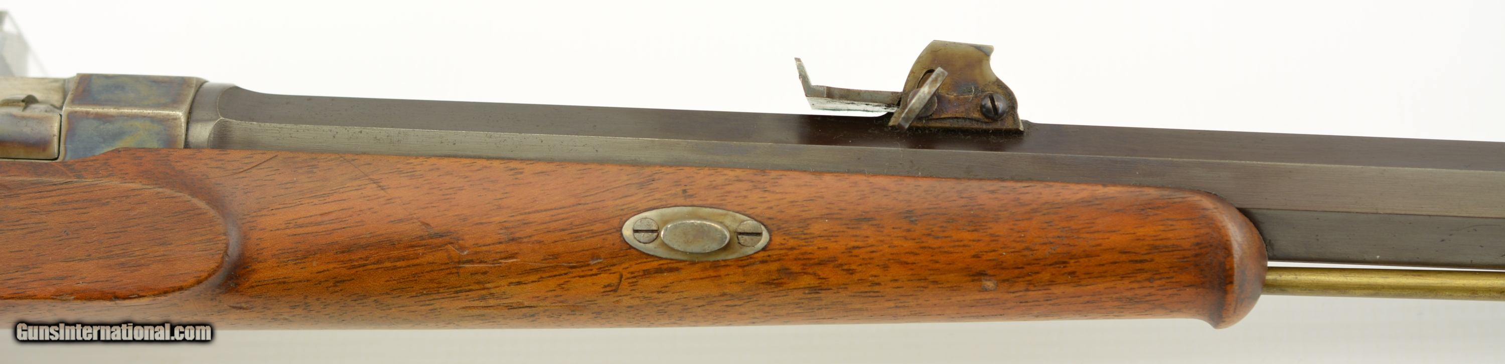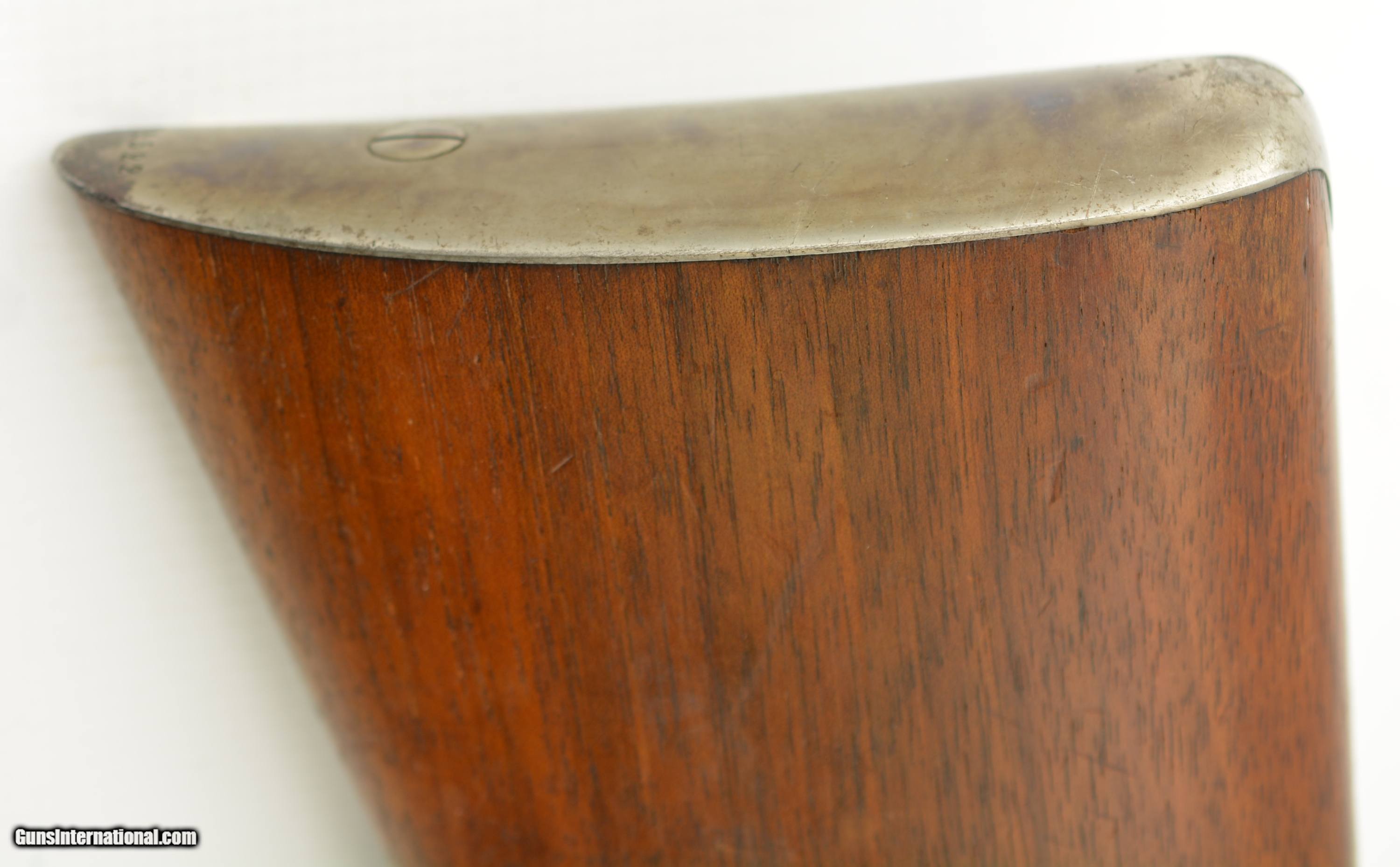 Description: NSN, 8x36Rmm CF, 25 3/4" octagon barrel with an excellent, bright bore. This is a simply splendid rifle (made for a Swedish retailer: Mauritz Widforss in Stockholm) that retains 97-98% of the original blue finish on the barrel, and a commensurate amount of original color case-hardening on the receiver and bolt. Some thin silvering is present along some of the high edges and projections, but this is minor, and the color case-hardening is vibrant and bright. The wedge-fastened walnut stock has a checkered pistol grip and swooping continental cheek-piece, with scattered minor handling marks and minor blemishes in the original oil finish. There is a small sliver crack at the wrist and a barely noticeable hairline crack is present at the ramrod opening on the schnabel tip. The original barrel sights, and rear schuetzen aperture sight are still present, and both the original sight adjustment key, and brass ramrod as well as a dummy round made up by a former owner are also included. This is a truly handsome miniature Mauser target rifle, in excellent condition, and would make a splendid addition to any collection. FFL or C&R SOLD Curio/Relic: Yes Manufacturer: Haenel Model: Mauser Caliber Info: 8mm Gauge Info: 8mm |
