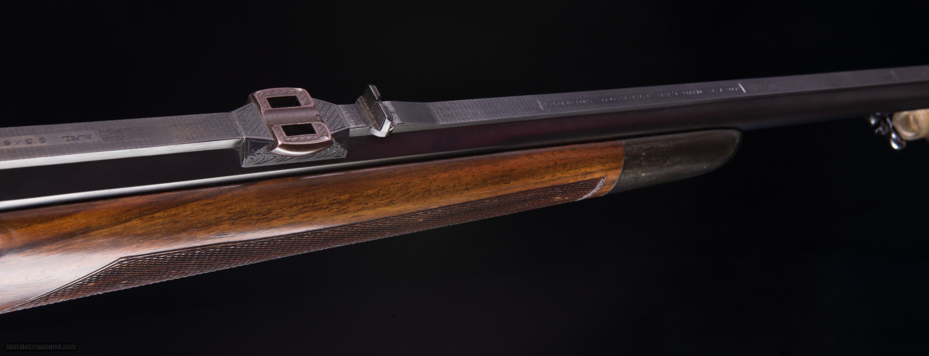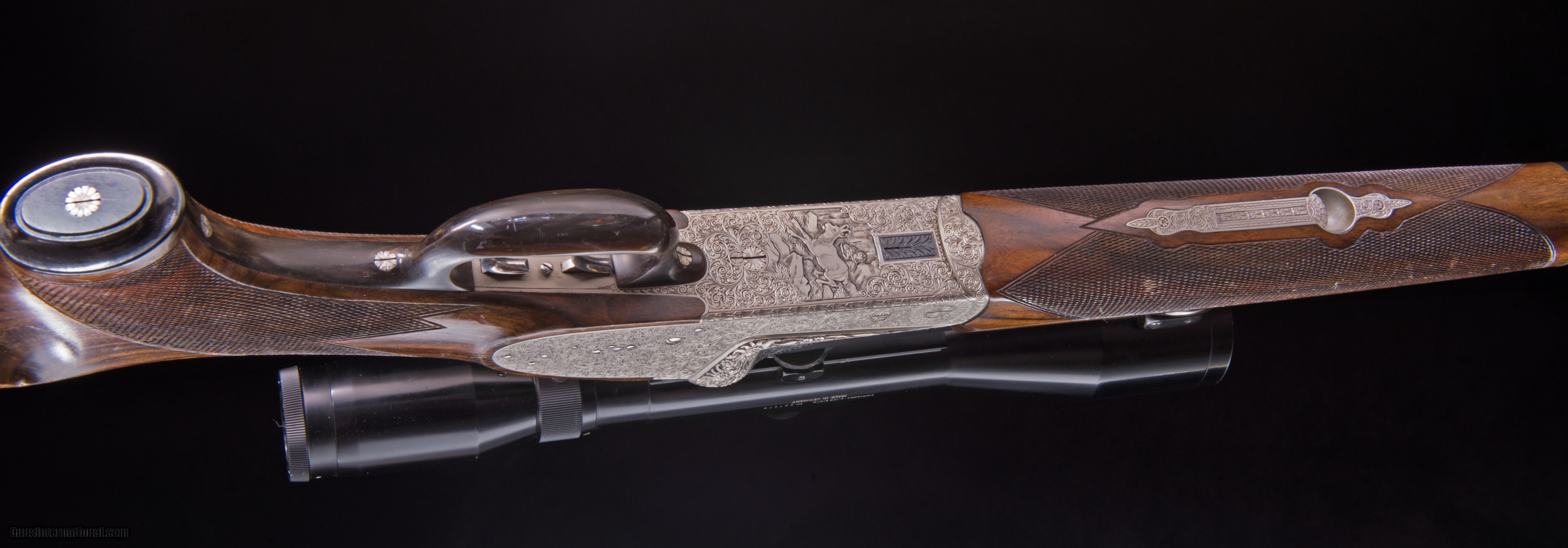 Description: Drillings, Double Rifles, and Rifles - Built in 1971 in Ferlach Austria this wonderful rifle is in wonderful condition and has very high end craftsmanship and features. Scope is a very clear "B. Nickel" ( A very respected German maker) 4-10 variable E/D/S. The lock on this gun is hand detachable! We have dies coming for this gun. The caliber is very similar to our 264 Winchester Magnum. I am told it is the most powerful of the 6.5mm European cartridges. Note we have the makers case but the scope does not fit withing the case.