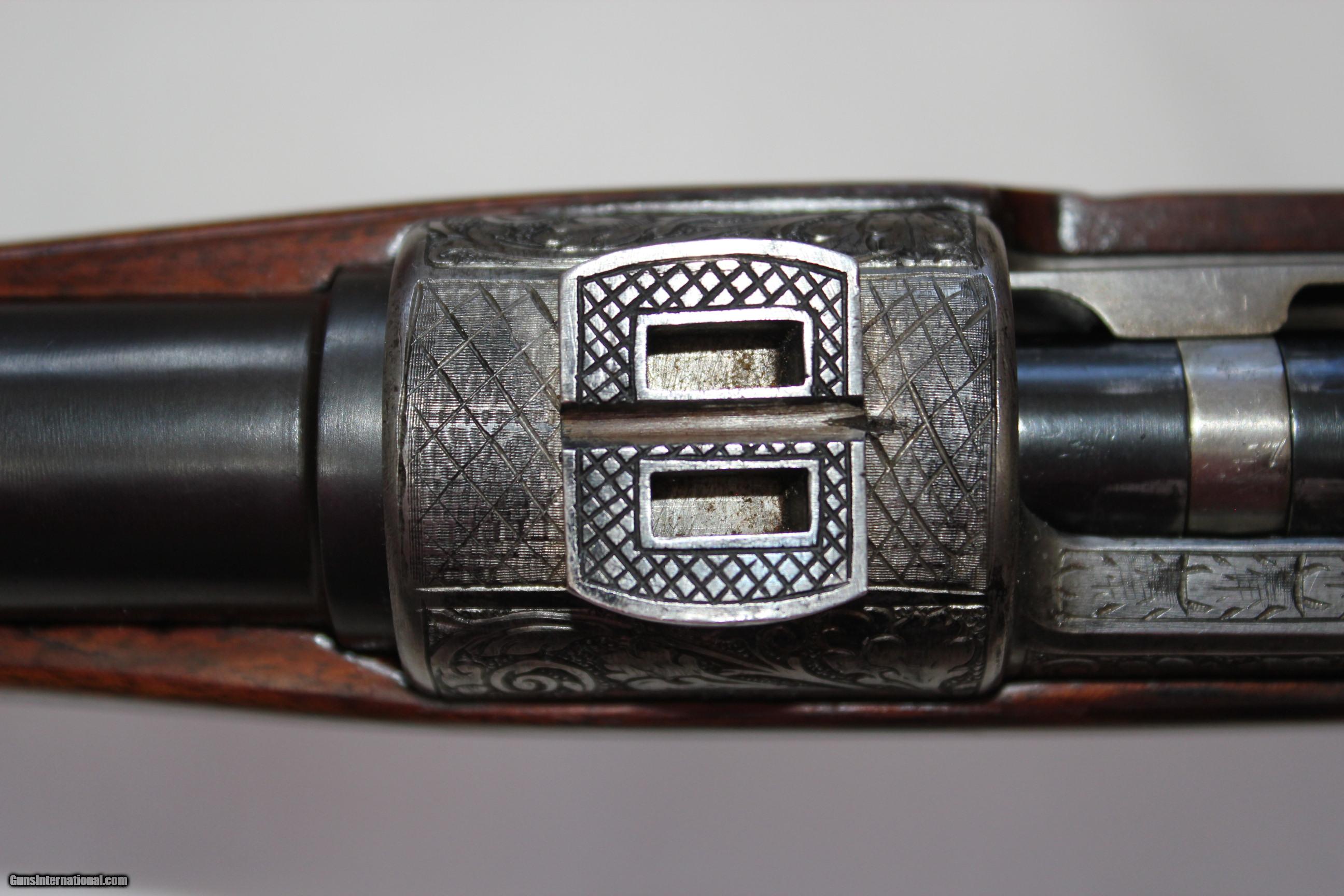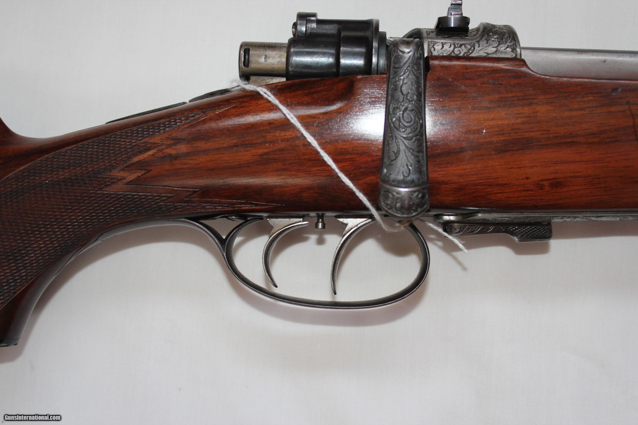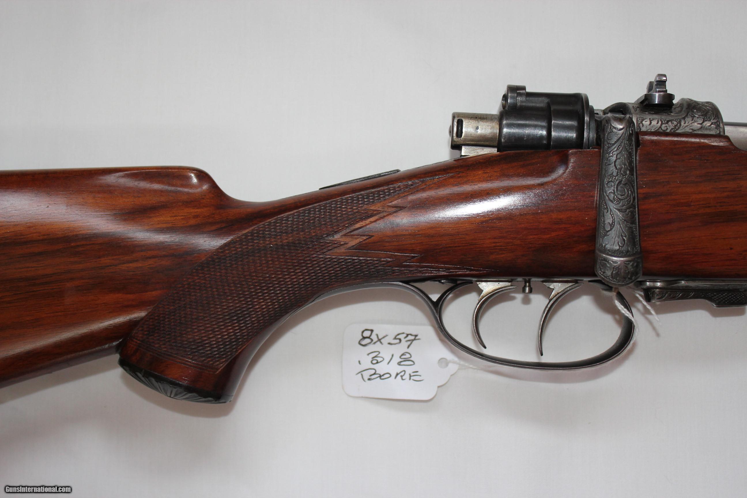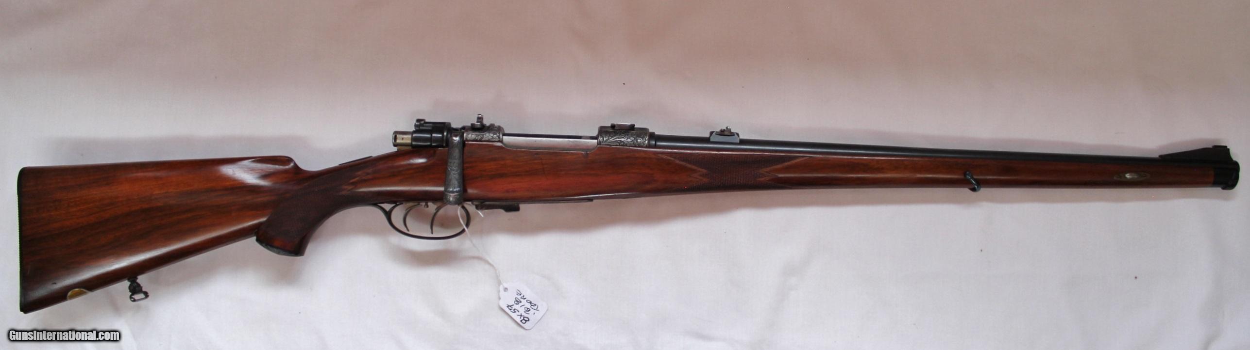 Description: NEAT LITTLE SPORTING RIFLE BY M AMRUSCH EXCELLENT OVERALL CONDITION WITH GOOD BORE 8x57 CAL. 318 BORE DOUBLE SET TRIGGER WITH TANG SAFETY 22 INCH BARREL WEIGHS JUST 6# 14 OZ 14" LOP TO FRON TRIGGER SOLD Curio/Relic: Yes |